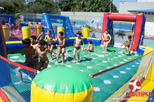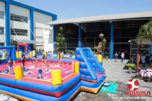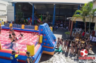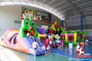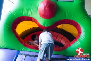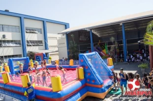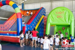 Hoje (14/10) foi a vez dos alunos brincarem com diversos brinquedos infláveis como: tobogã, centopeia, play parque fazendinha, guerra de cotonete, chute a gol, futebol de sabão, carrinho bate-bate e bolão na piscina.