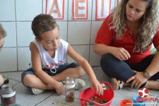 Para encerrar o projeto “Formando Leitores” os alunos do Jardim I BV, sob a orientação da professora Danúbia fizeram o “Terráreo” e um lindo ímã em formato de botão de rosa inspirados no livro adotado: “Rosa Morena”. A proposta foi criar uma lembrança que as crianças pudessem interagir e associar ao incentivo à leitura. Por isso, a professora orientou que ao levar para casa seu “terráreo”, cada criança cuidasse dele e observasse seu crescimento.