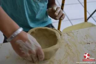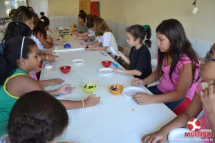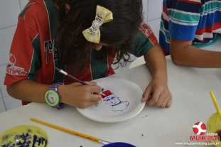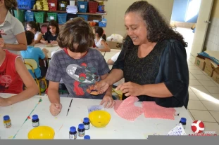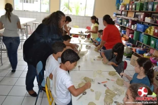 A artista plástica Catarina Zambe explicou técnicas de pintura e manuseio com a argila, o que foi de grande valia para nossos pequenos artistas.