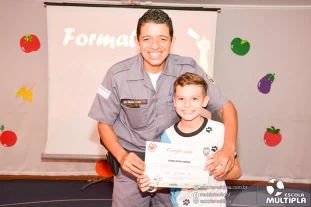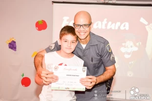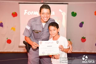 É com muita alegria que hoje (14/07), nossos alunos do 5º BV e 5º CV receberam pessoalmente do Soldado Miguel e do Sargento Hélington os certificados da Solenidade de Formatura do PROERD.