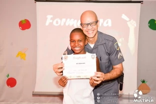 Após a entrega dos certificados, o Soldado Miguel e o Sargento Hélington foram surpreendidos com uma festinha surpresa organizada pelos alunos como forma de agradecimento por todo carinho e dedicação durante as aulas do programa.