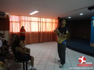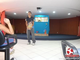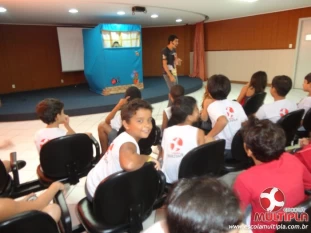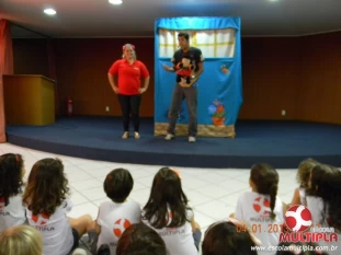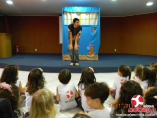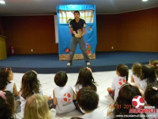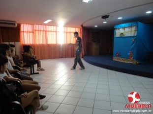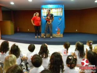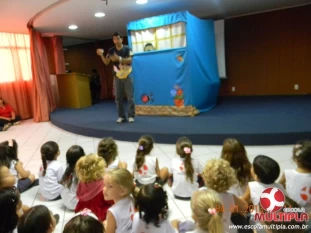No dia 18 de abril, os alunos tiveram a oportunidade de assistirem as apresentações do Tio Diu, que além de contar histórias, também interagiu com os alunos através das brincadeiras dirigidas.