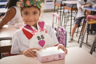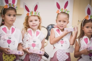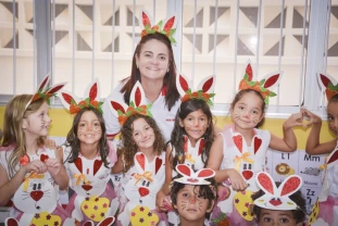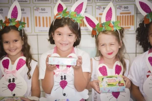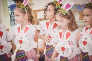 Com o objetivo de despertar a fantasia e a imaginação, entregamos um figurino de coelhinho para as crianças da Ed. Infantil aos 2º ANOS se divertirem.