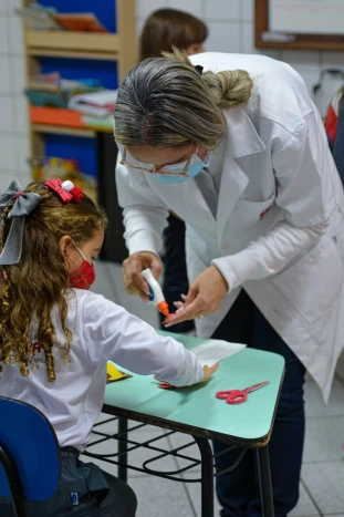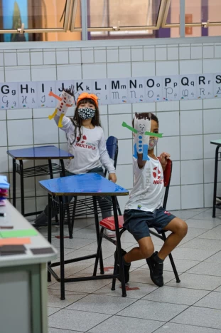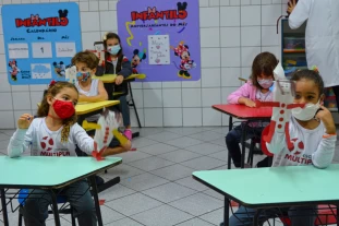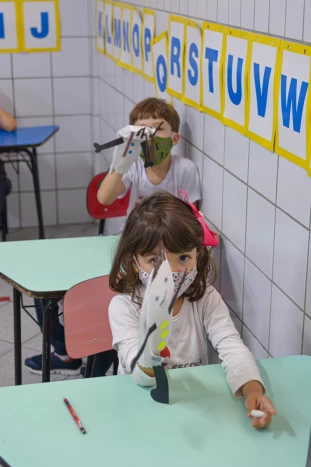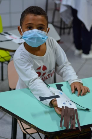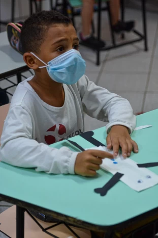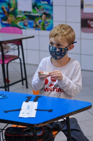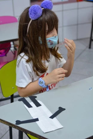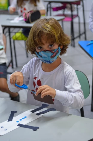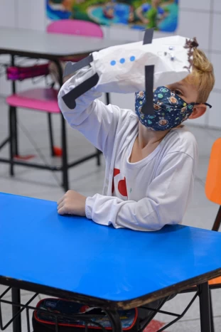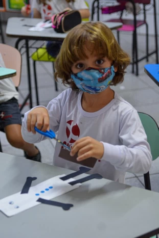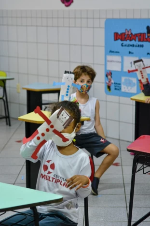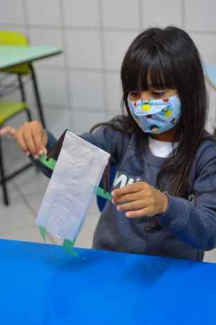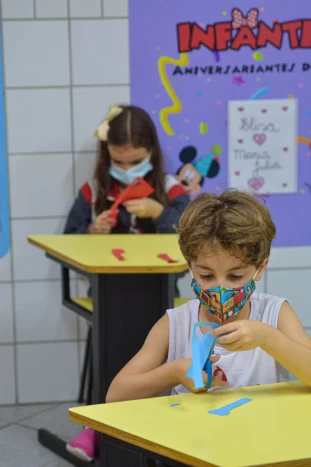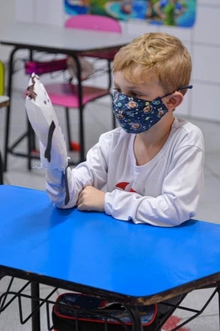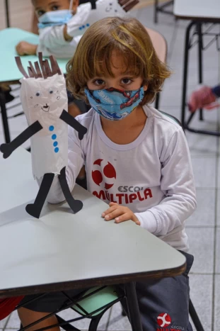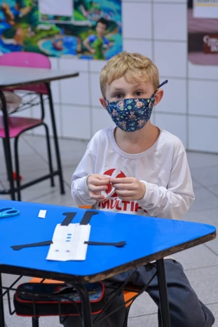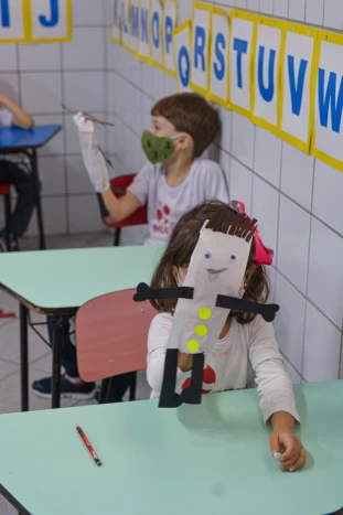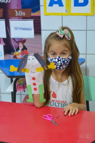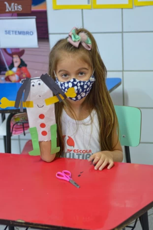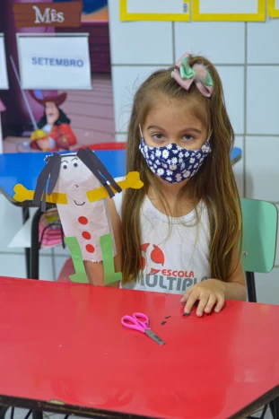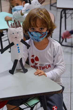 Contemplando o livro Explorar e Descobrir, os alunos do Infantil 5 realizaram a confecção de um divertido fantoche com saquinho de pipoca, papel colorido, canetinha preta, cola, tesoura e muita criatividade!