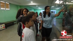 No museu, os alunos tiveram a oportunidade de ouvir explicações acerca da interferência dos fatores abióticos (luminosidade, temperatura, etc) nos diferentes ecossistemas, enquanto presenciaram diversos aquários e exposições de animais.