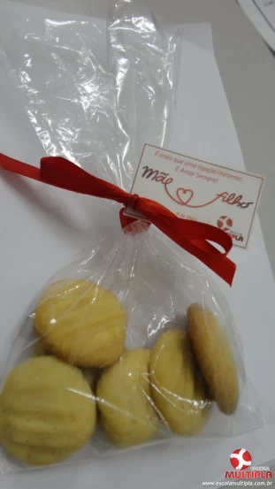 Hoje (09/05), os biscoitos foram embrulhados para que os alunos levassem para casa, junto com a receita anexada na agenda.