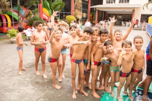 Depois de um ano de estudo, nossos alunos merecem interagir com os amigos e brincar em vários brinquedos infláveis.