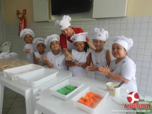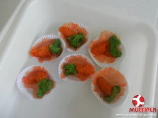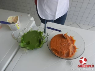 A aula foi muito divertida! Os alunos aprenderam o processo de elaboração da receita e iniciaram a aula prática, colocando as mãos nas massas. Dessa vez os docinhos tiveram o formato de cenourinhas.