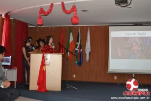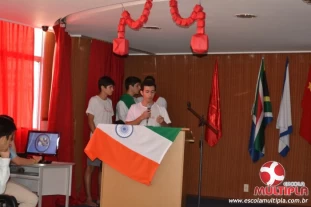 Os alunos apresentaram a história, cultura e valores de diversos países como: China, Israel, África do Sul, Vietnã e Índia, usando figurinos característicos de cada país. A proposta deste trabalho é através da criatividade, explorar conhecimentos que são temas relevantes do Enem 2014.