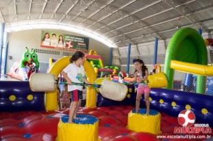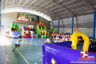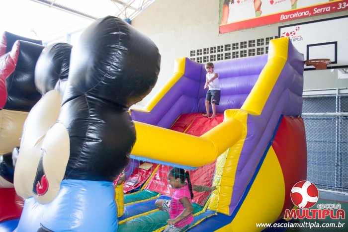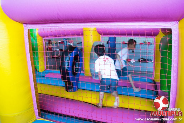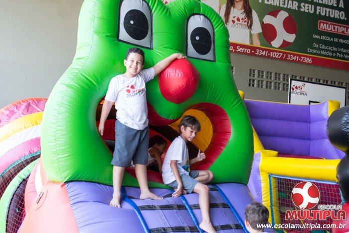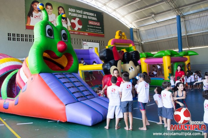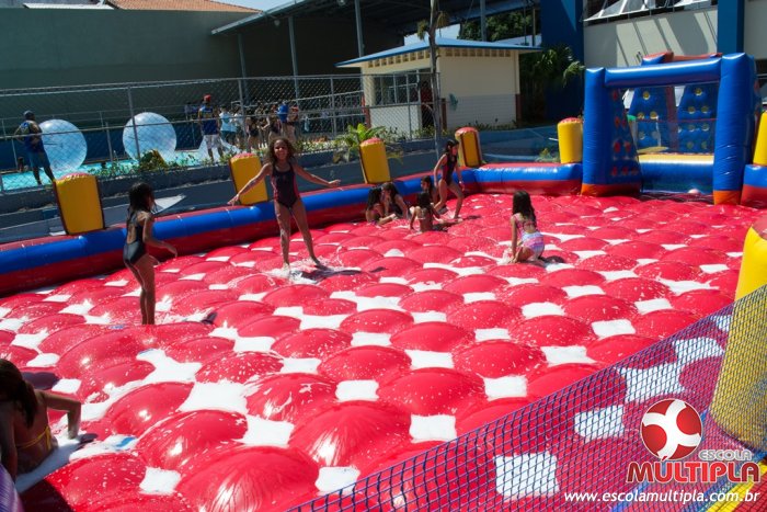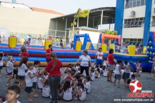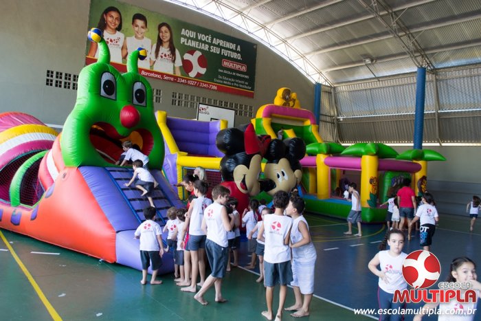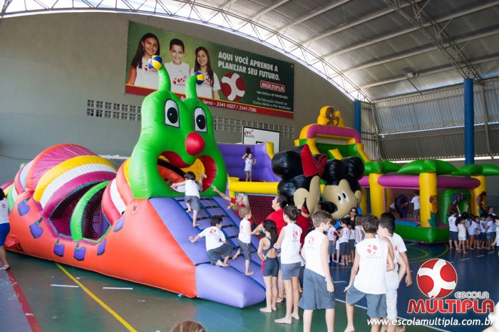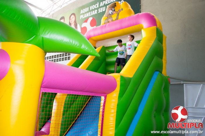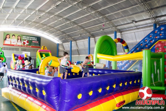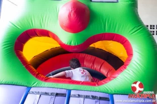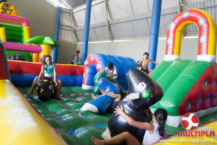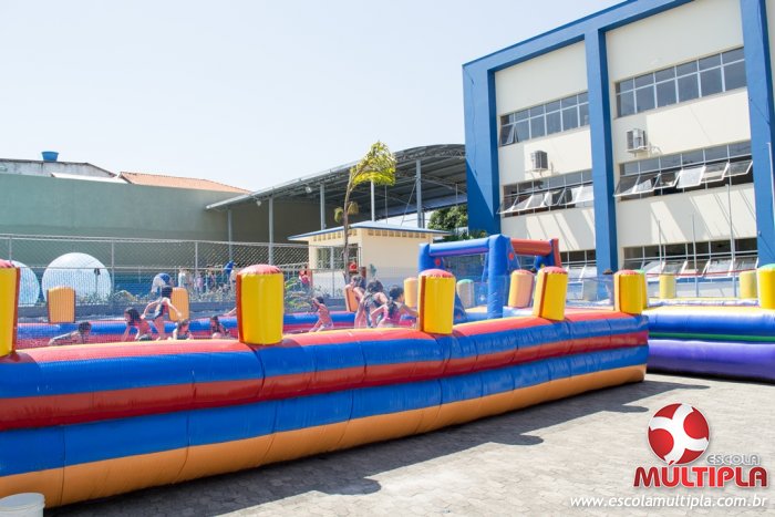Hoje (14/10) foi a vez dos alunos brincarem com diversos brinquedos infláveis como: tobogã, centopeia, play parque fazendinha, guerra de cotonete, chute a gol, futebol de sabão, carrinho bate-bate e bolão na piscina.