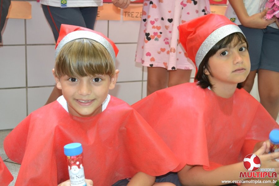 Para encerrar o ano letivo em clima de natal, as professoras da Educação Infantil e 1º ANOS presentearam seus alunos com lindos gorrinhos de Papai Noel.