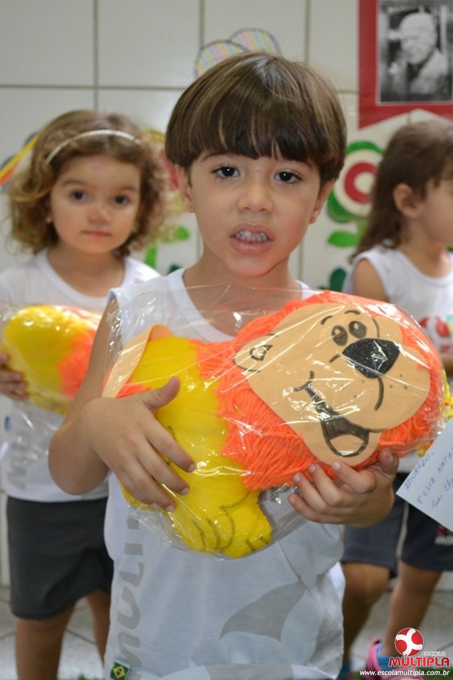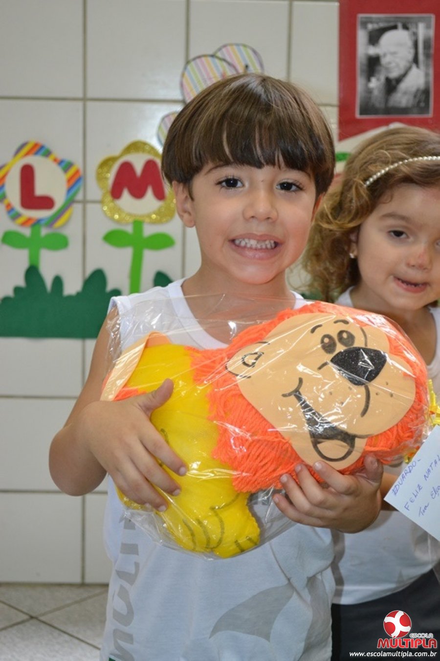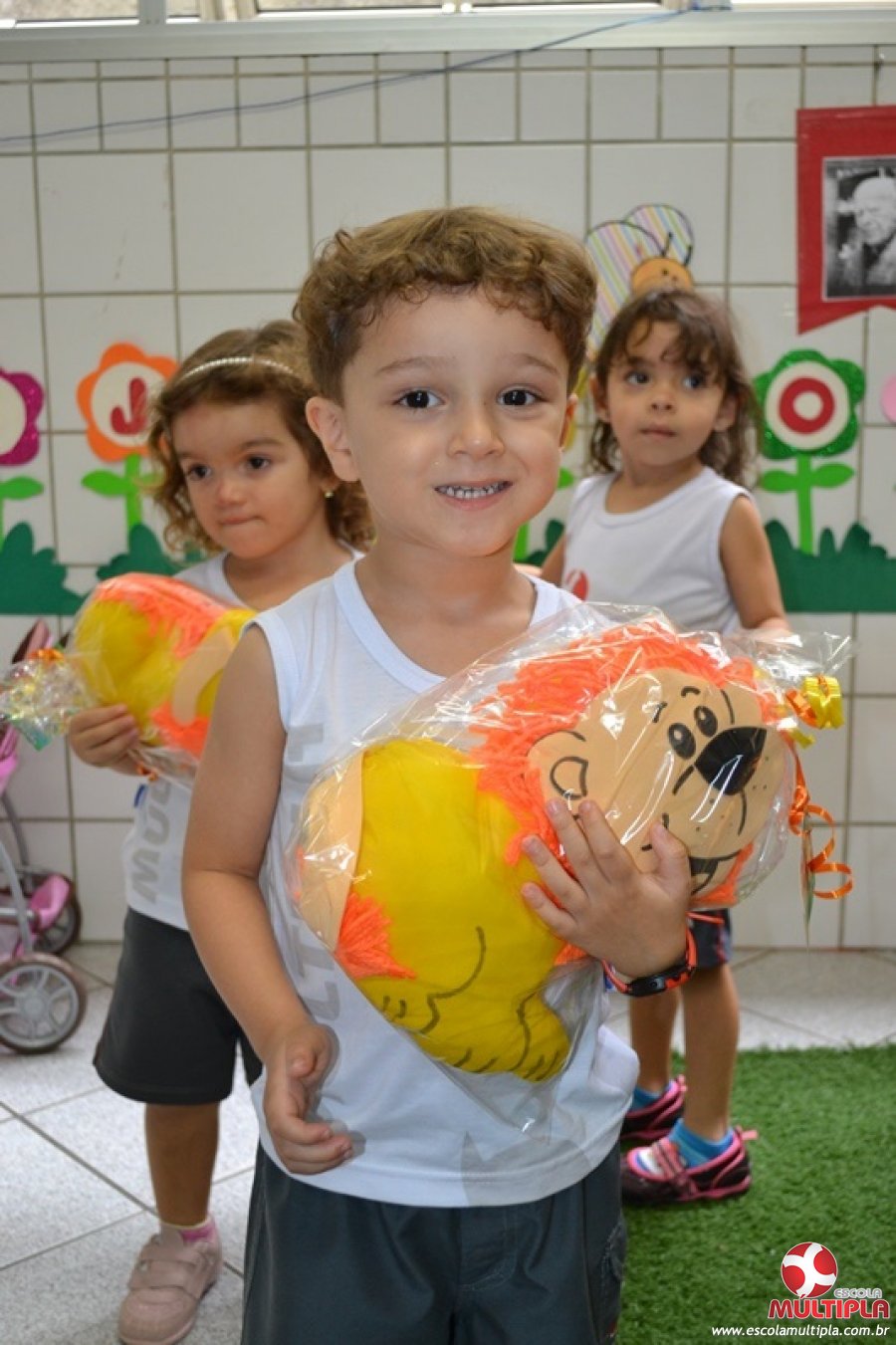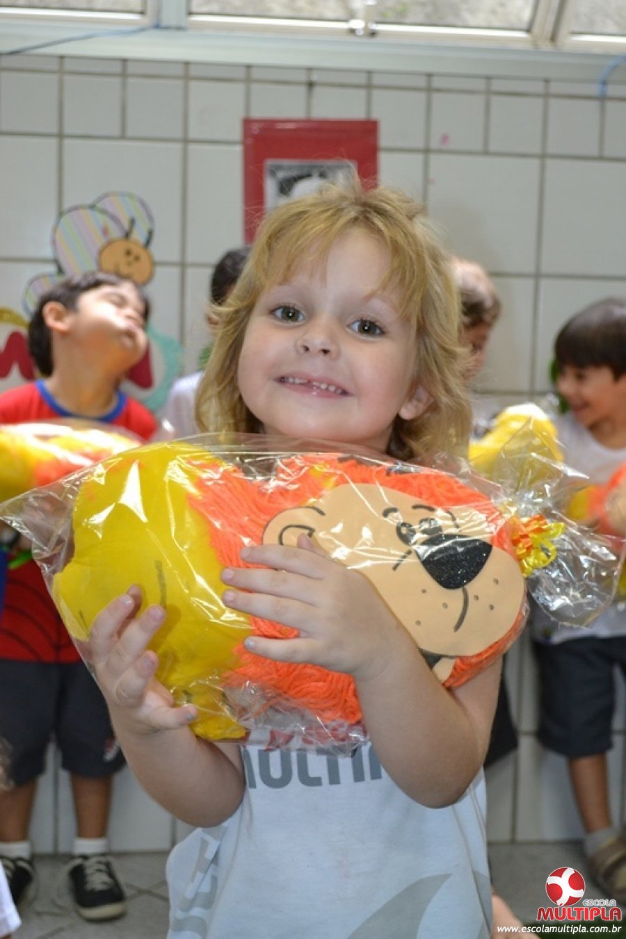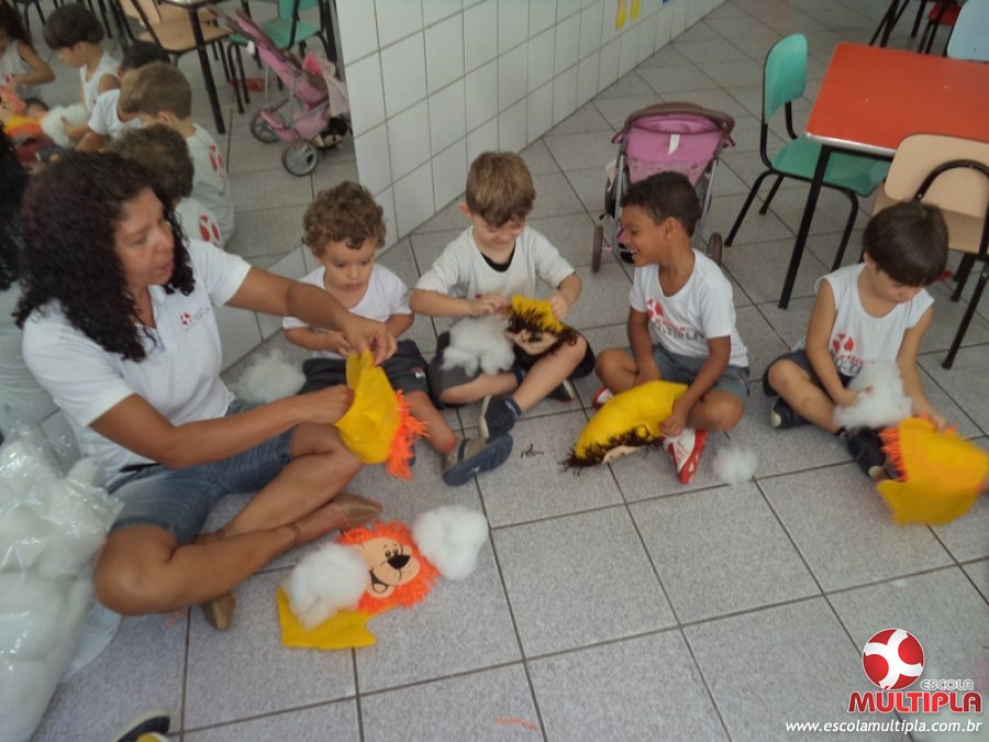 Para encerrar o projeto “Formando Leitores” os alunos do Maternal A, sob a orientação das professoras Elça e Eliane confeccionaram almofadinhas com formato de leão, representando um dos animais abordados no livro adotado: “Animais na selva”. A proposta foi criar uma linda lembrança que as crianças pudessem interagir e associar ao incentivo à leitura.