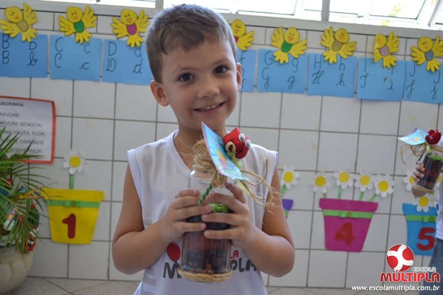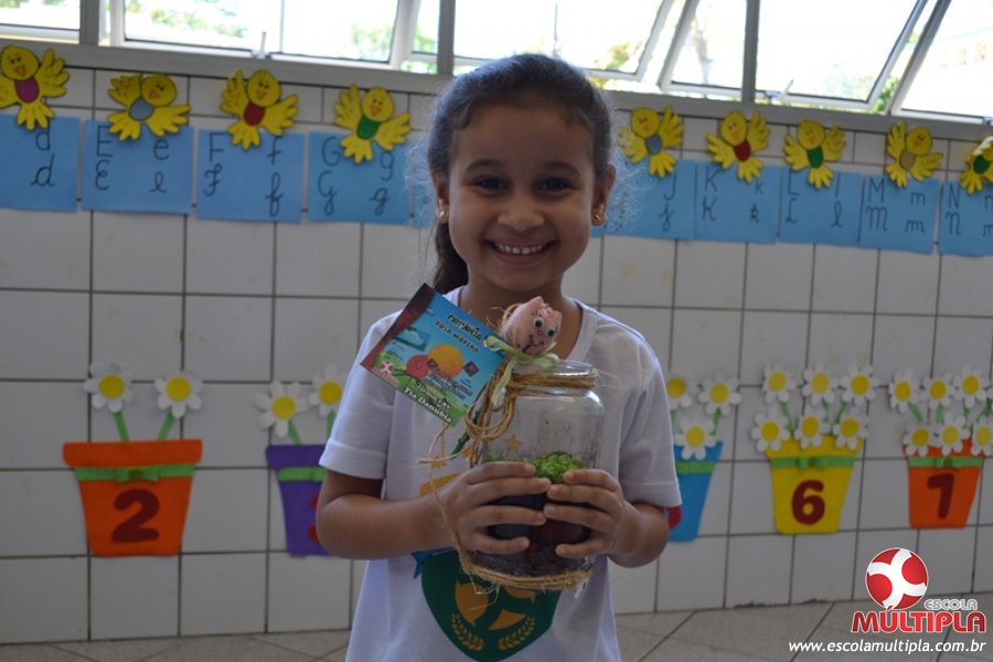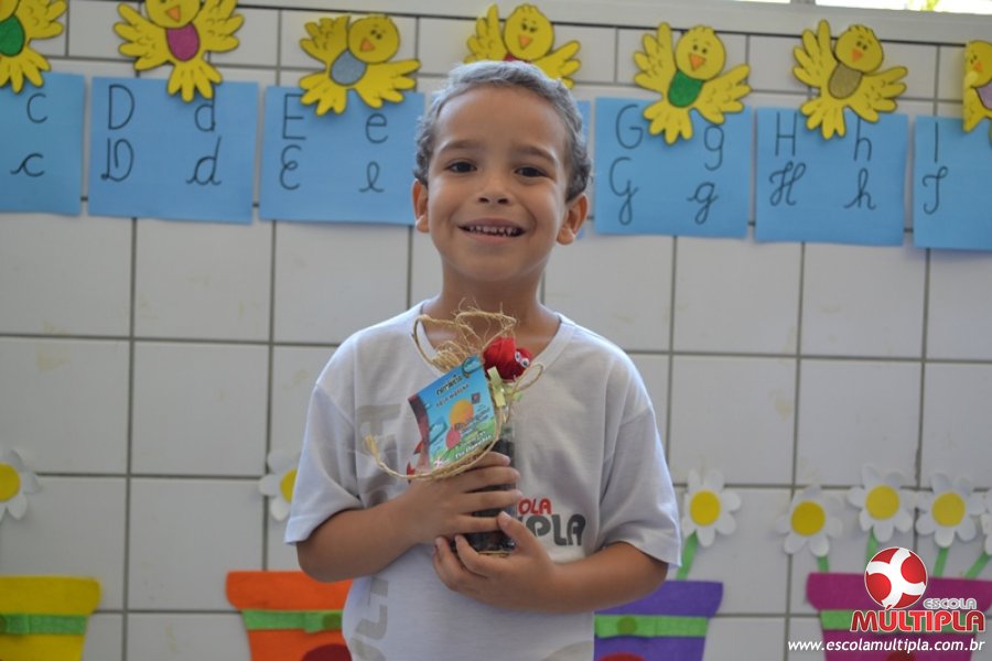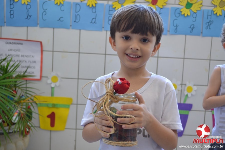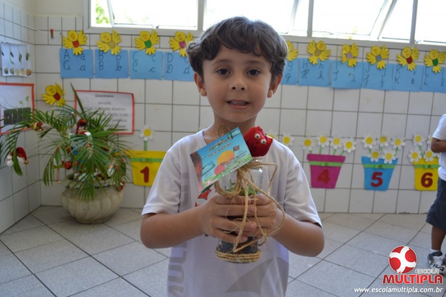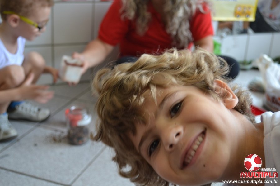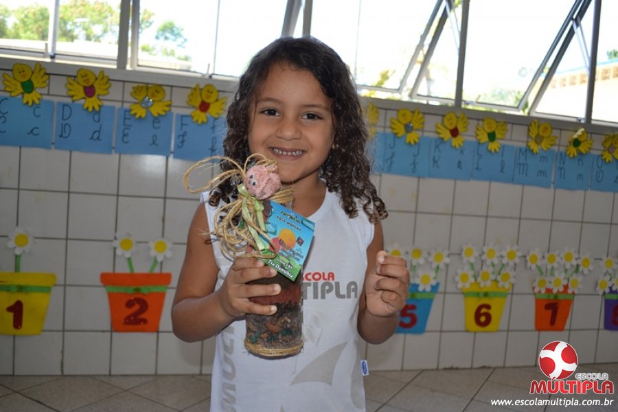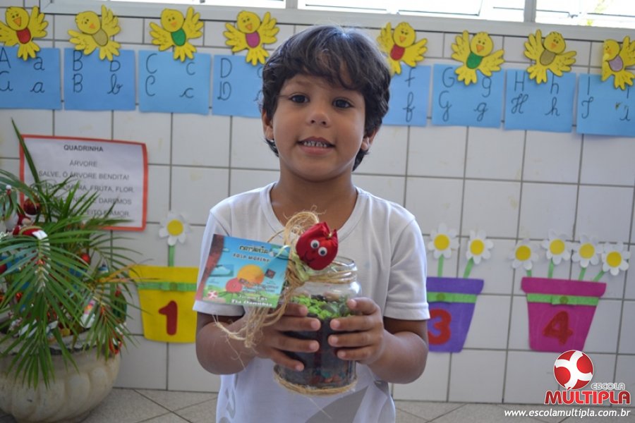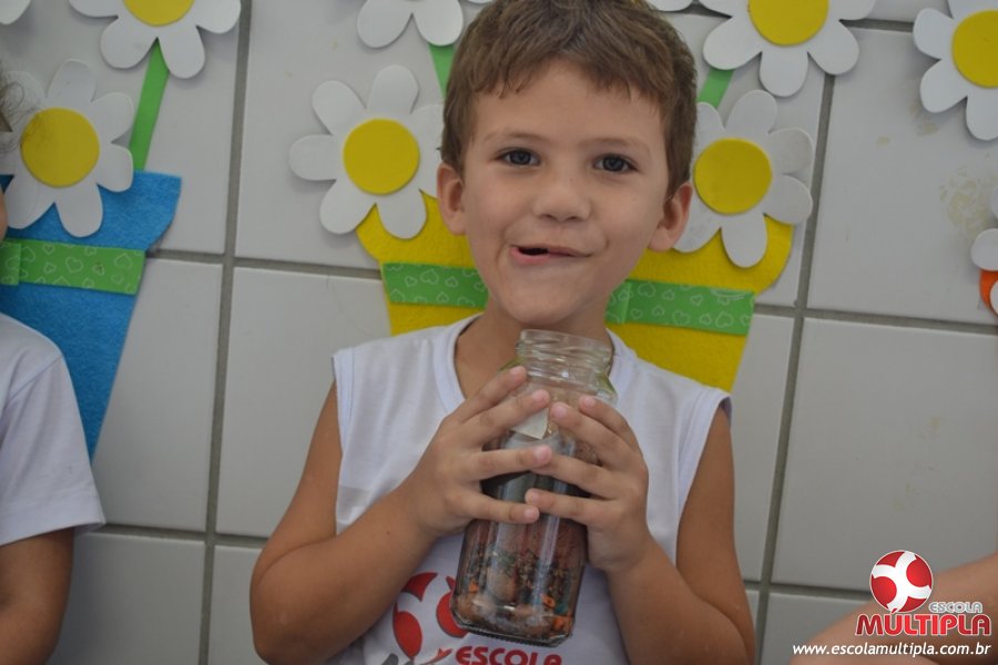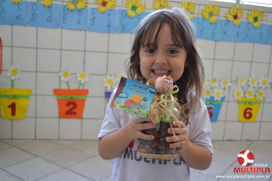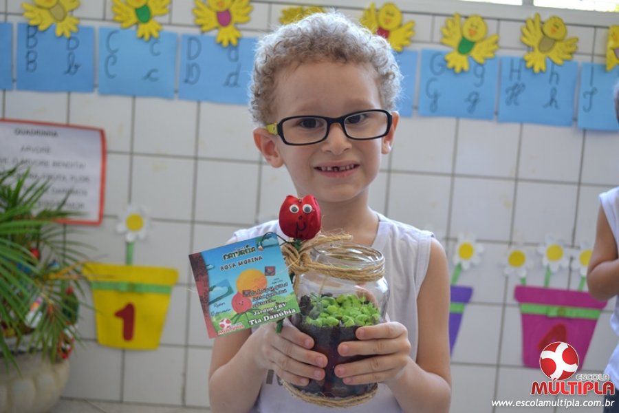 Para encerrar o projeto “Formando Leitores” os alunos do Jardim I BV, sob a orientação da professora Danúbia fizeram o “Terráreo” e um lindo ímã em formato de botão de rosa inspirados no livro adotado: “Rosa Morena”. A proposta foi criar uma lembrança que as crianças pudessem interagir e associar ao incentivo à leitura. Por isso, a professora orientou que ao levar para casa seu “terráreo”, cada criança cuidasse dele e observasse seu crescimento.