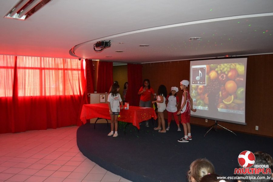 Hoje (09/12) os alunos dos 4º ANOS B e C vespertino encerraram o projeto “Alimentação Saudável” com um desfile e apresentações de pratos coloridos, representando os grupos de alimentos construtores, reguladores e energéticos, conteúdo estudado na disciplina de Ciências.
