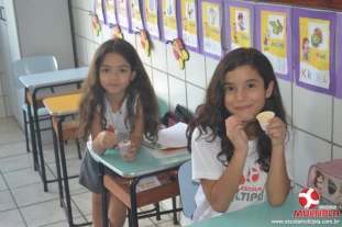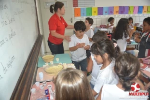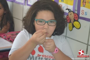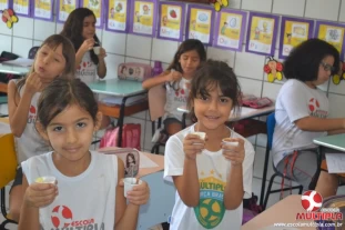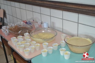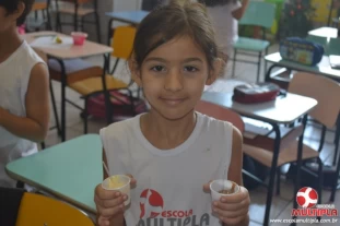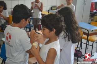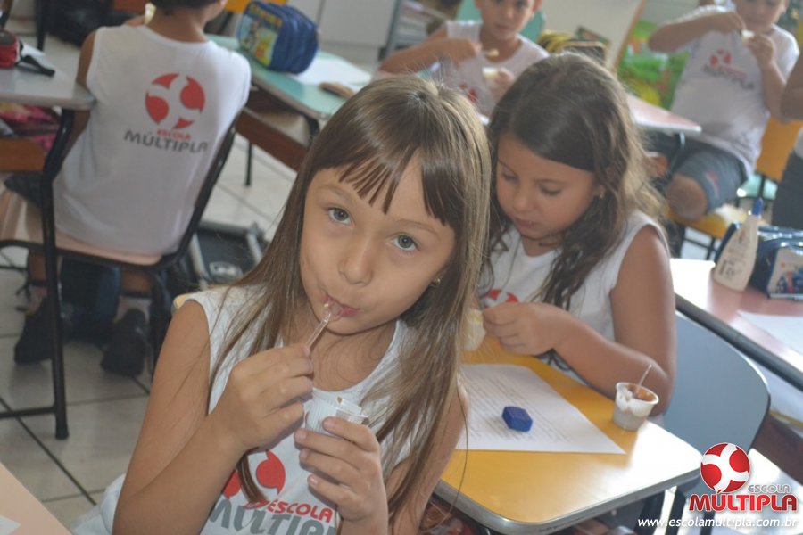 Após fazerem as receitas, os alunos degustaram cada uma e puderam identificar a diferença da mistura homogênea e da mistura heterogênea, conteúdo que estão estudando na Apostila 7, na disciplina de ciências.