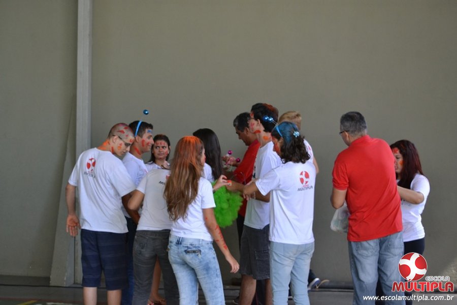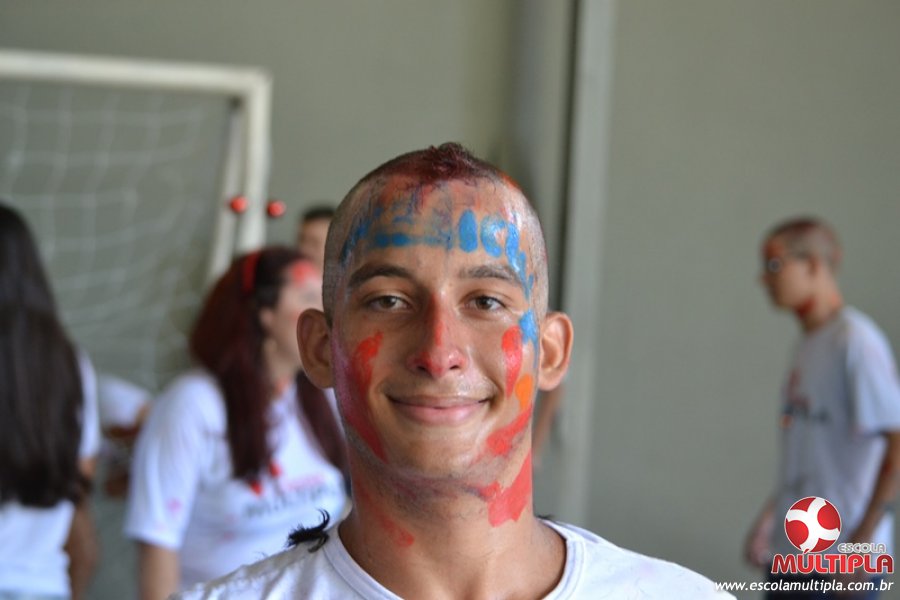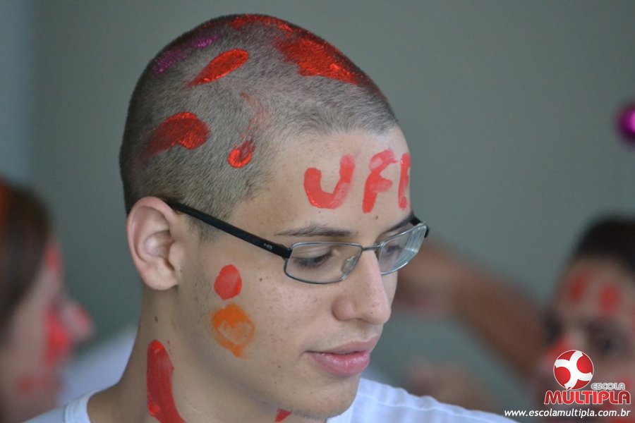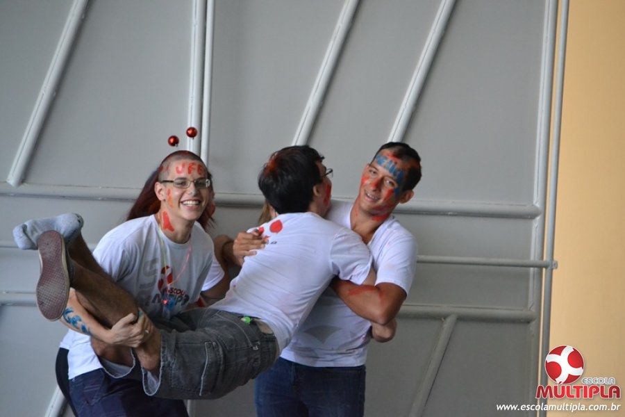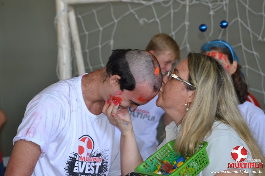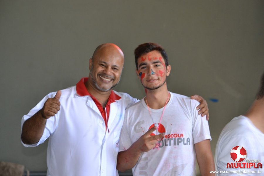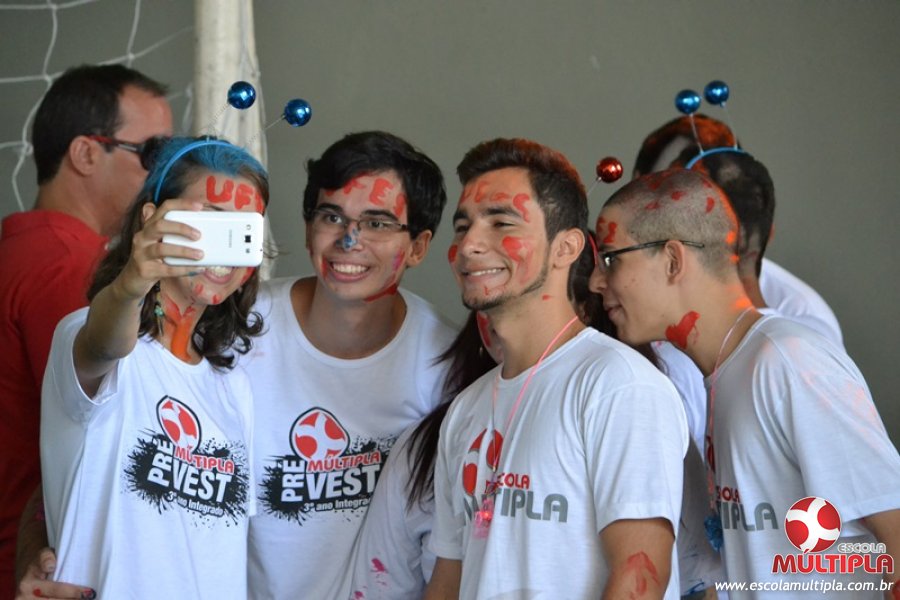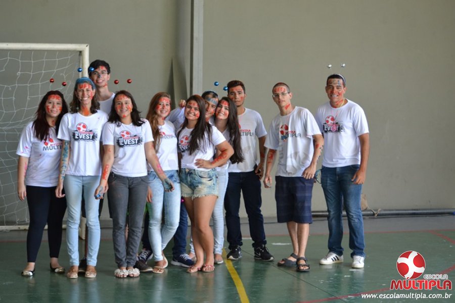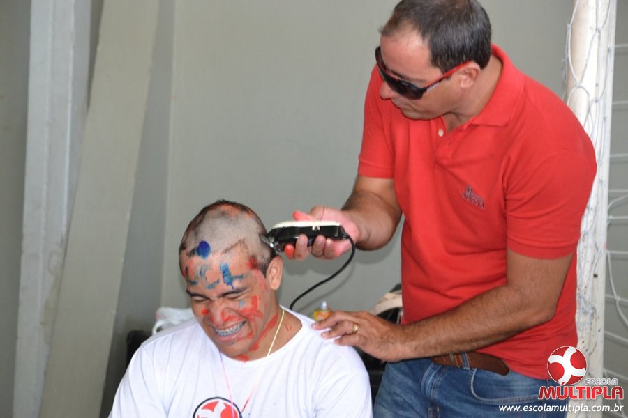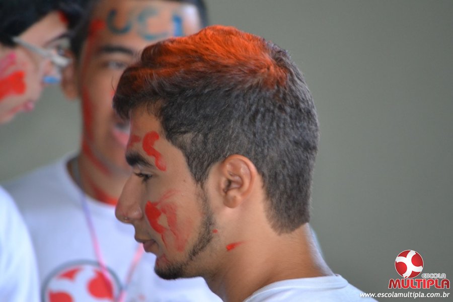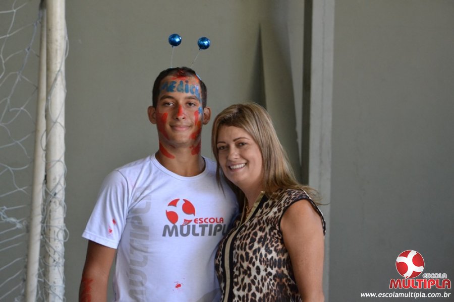 Para abrilhantar ainda mais o primeiro dia de aula, convidamos os alunos aprovados no Vest/2015 para falarem da experiência de conquistar o ingresso no Ensino Superior. Os coordenadores e professores aproveitaram para pregarem um “trote”, momento que rasparam o cabelo de alguns alunos e pintarem o rosto com tinta.