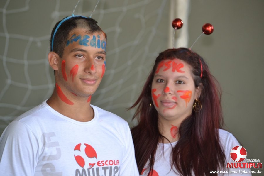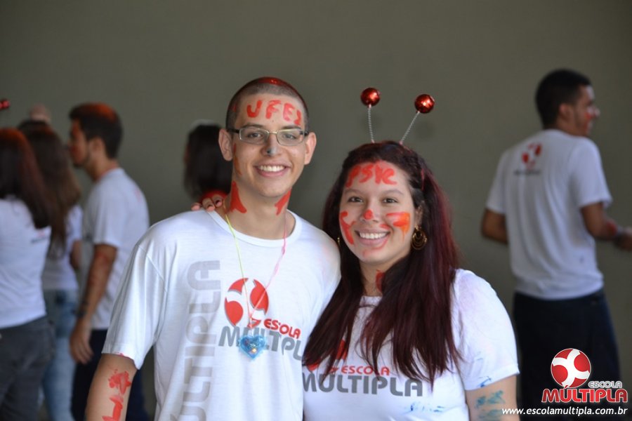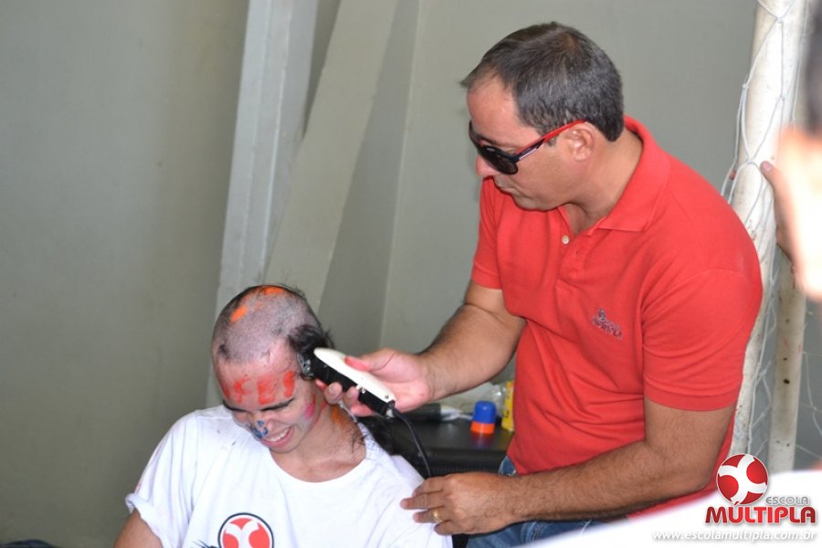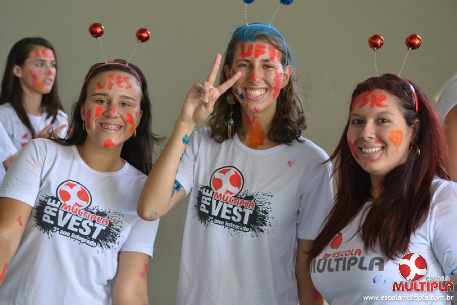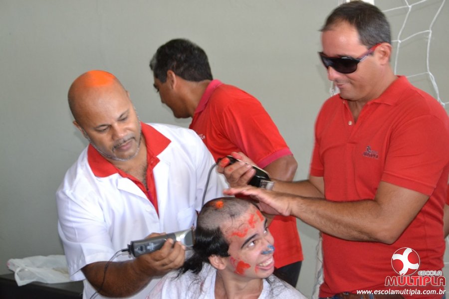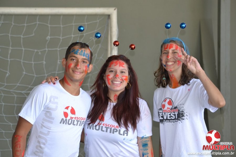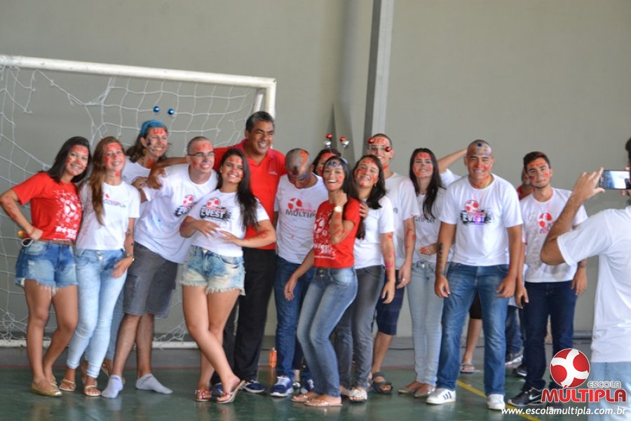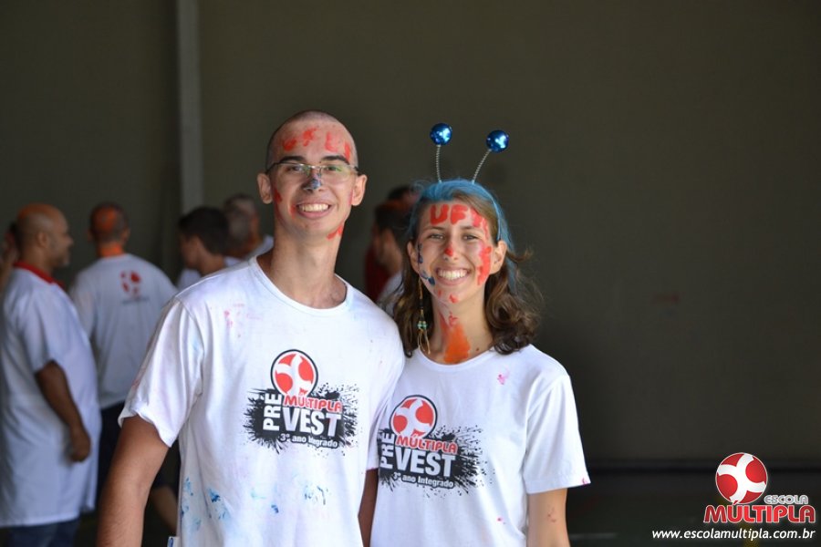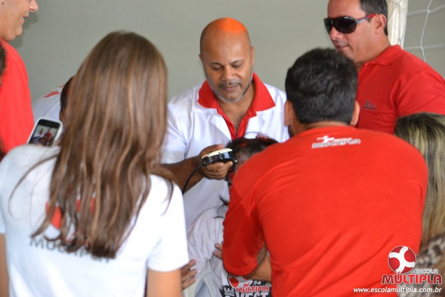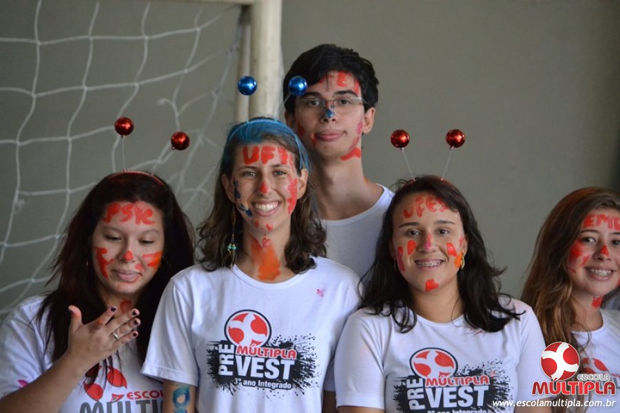 Para abrilhantar ainda mais o primeiro dia de aula, convidamos os alunos aprovados no Vest/2015 para falarem da experiência de conquistar o ingresso no Ensino Superior. Os coordenadores e professores aproveitaram para pregarem um “trote”, momento que rasparam o cabelo de alguns alunos e pintarem o rosto com tinta.