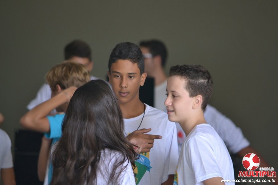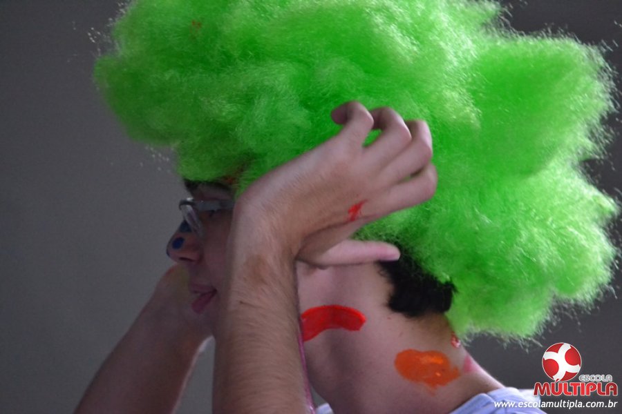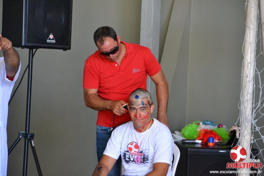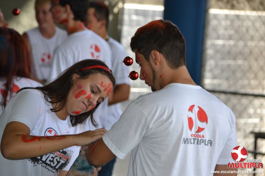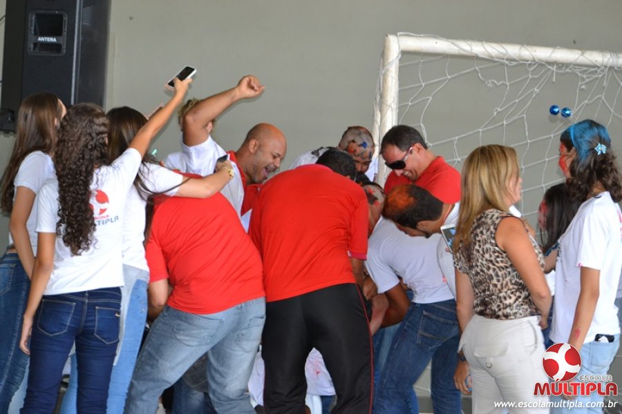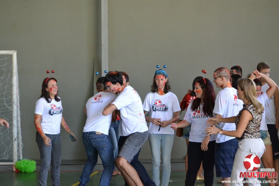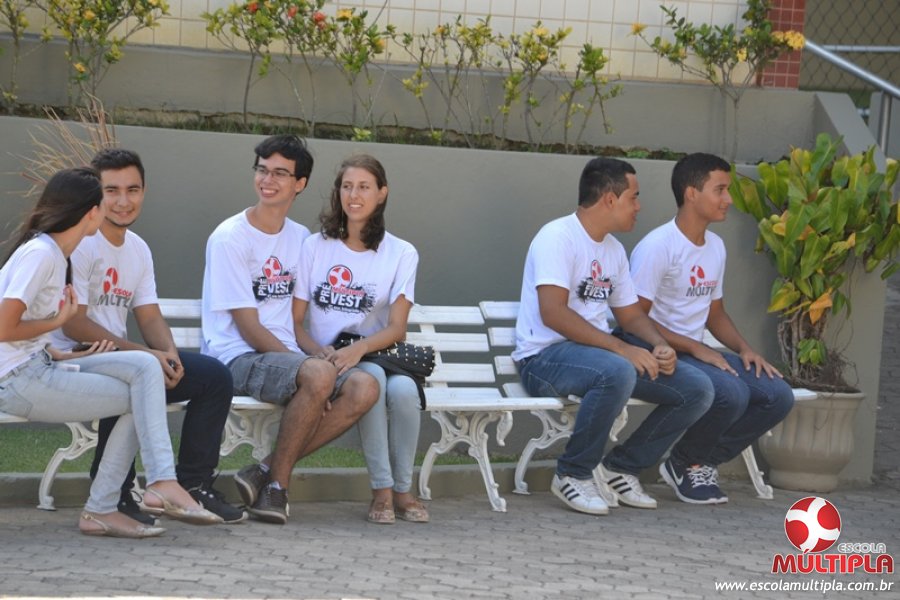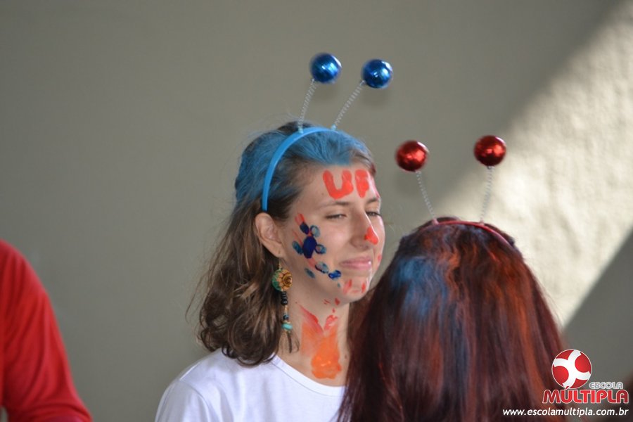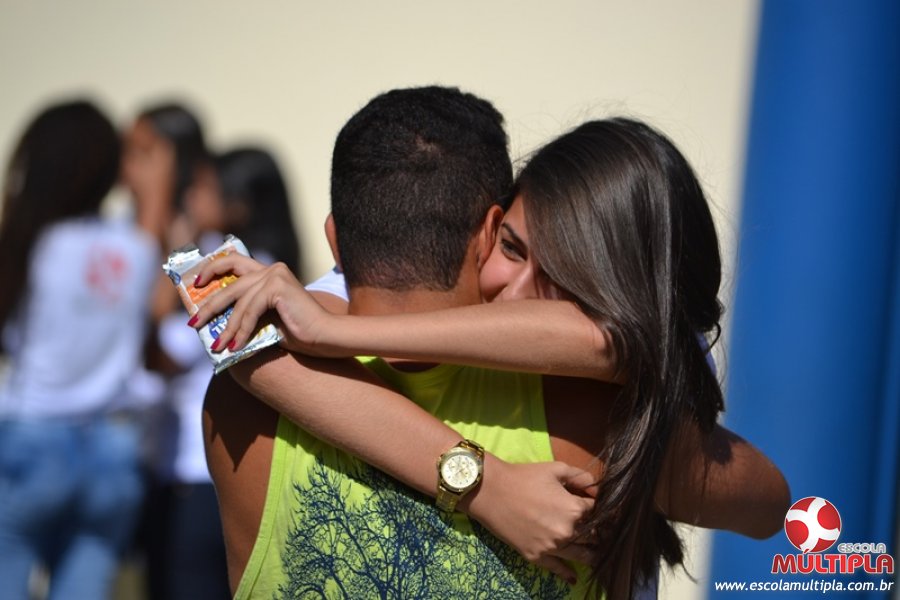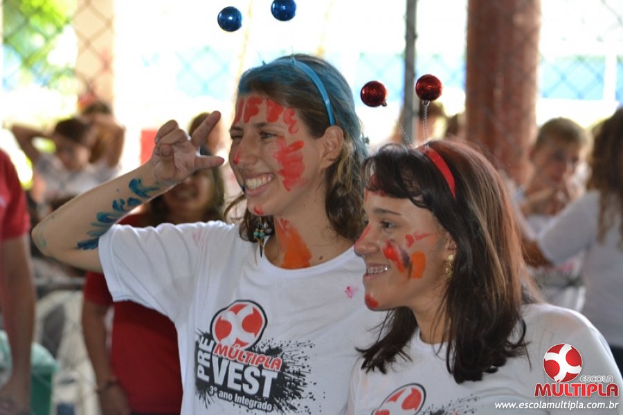 Para abrilhantar ainda mais o primeiro dia de aula, convidamos os alunos aprovados no Vest/2015 para falarem da experiência de conquistar o ingresso no Ensino Superior. Os coordenadores e professores aproveitaram para pregarem um “trote”, momento que rasparam o cabelo de alguns alunos e pintarem o rosto com tinta.