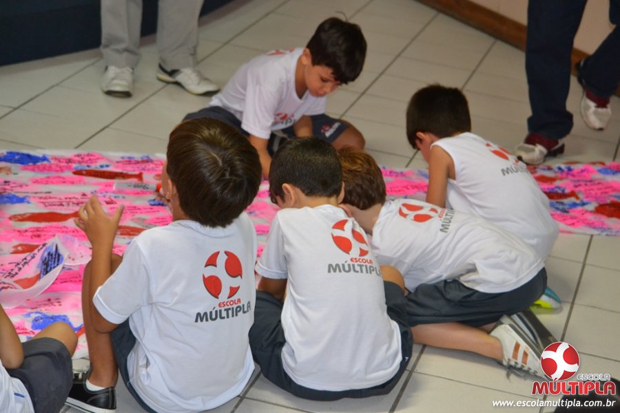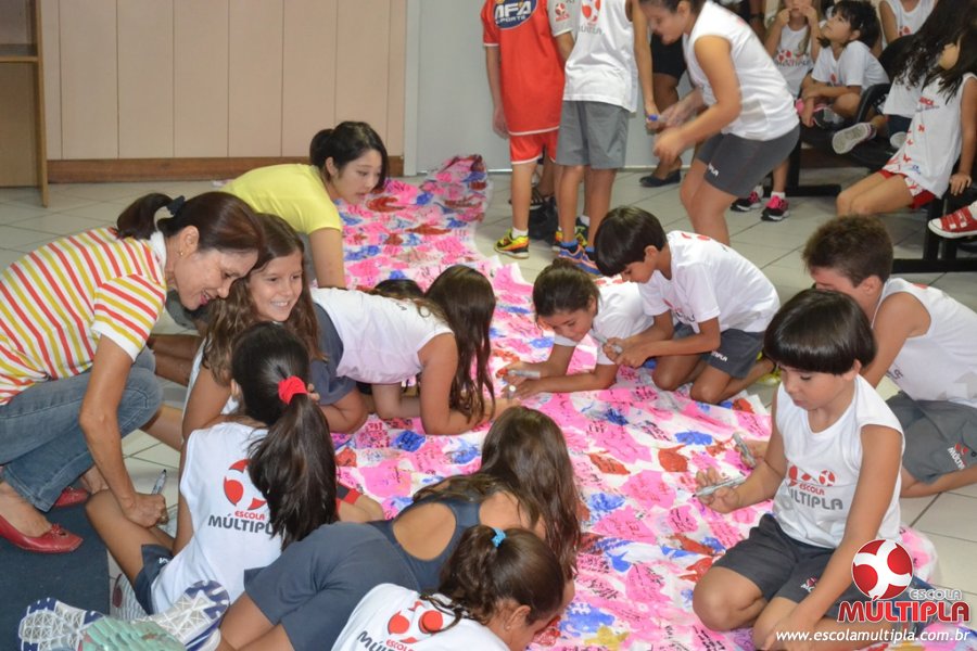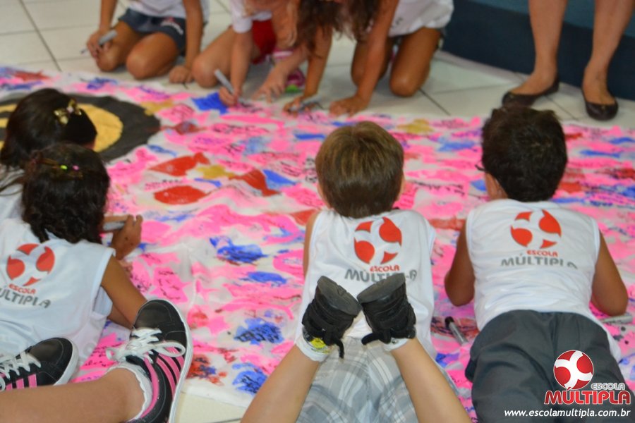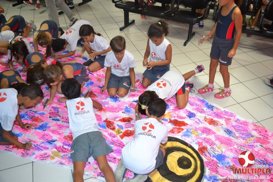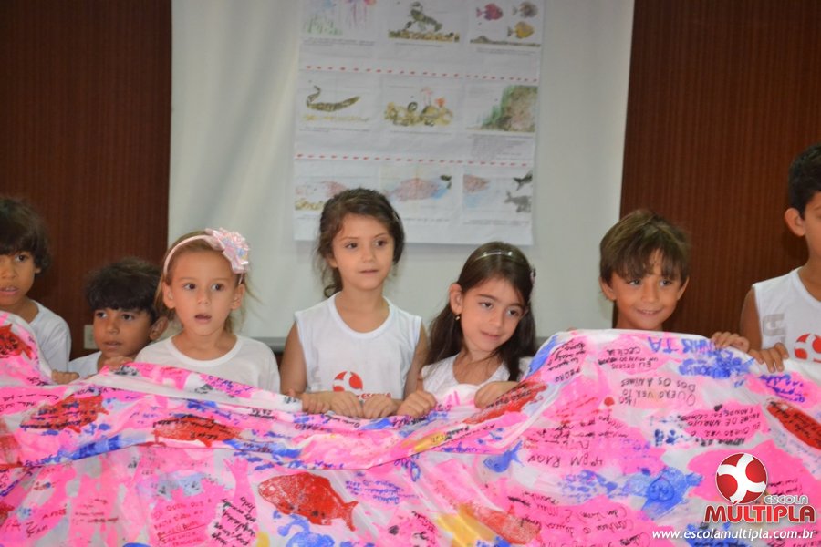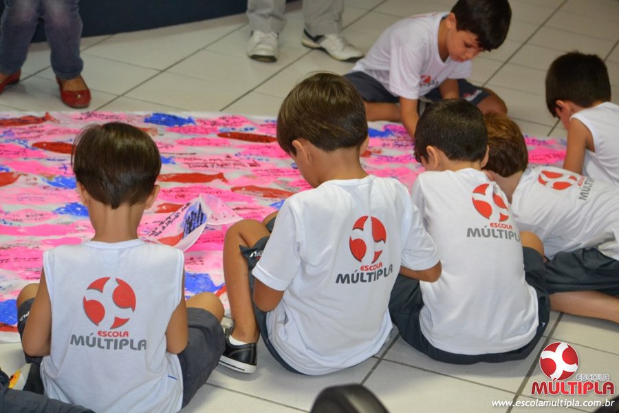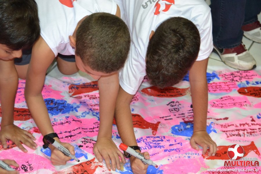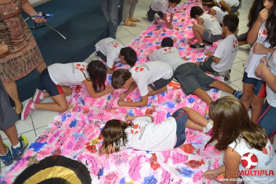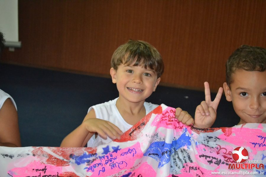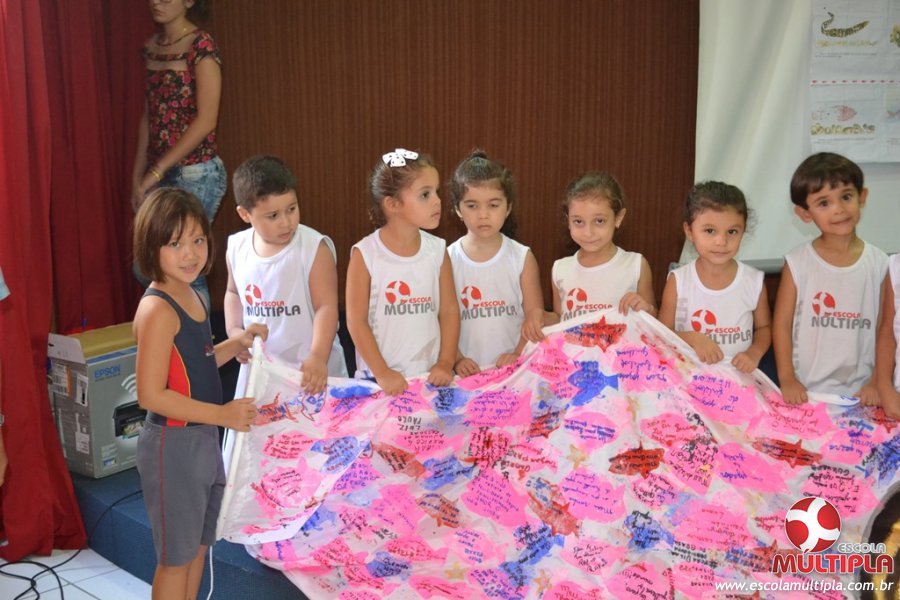 Após ouvirem a apresentação desta cultura japonesa e a história do Swimmy, os alunos da ED. Infantil e 1º anos fizeram seus pedidos e os alunos dos 2º aos 5º ANOS deixaram suas mensagens no peixe feito de mais de 10 metros de tecido.