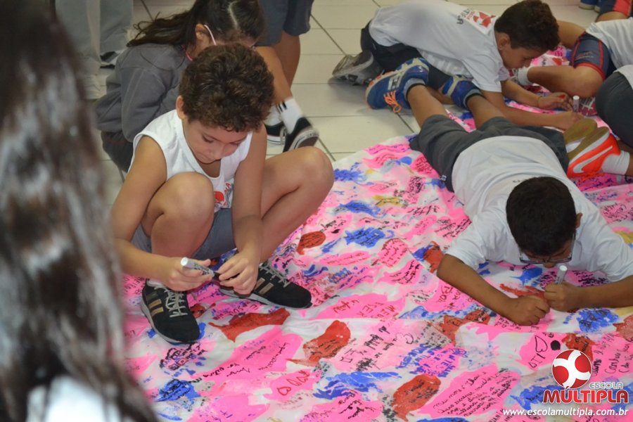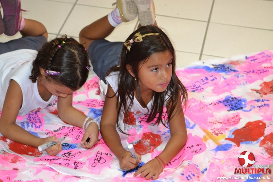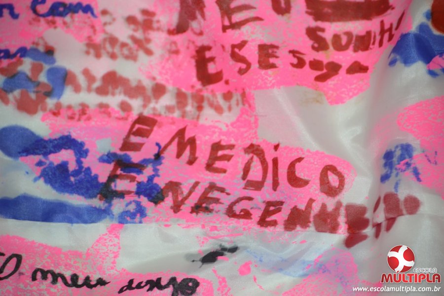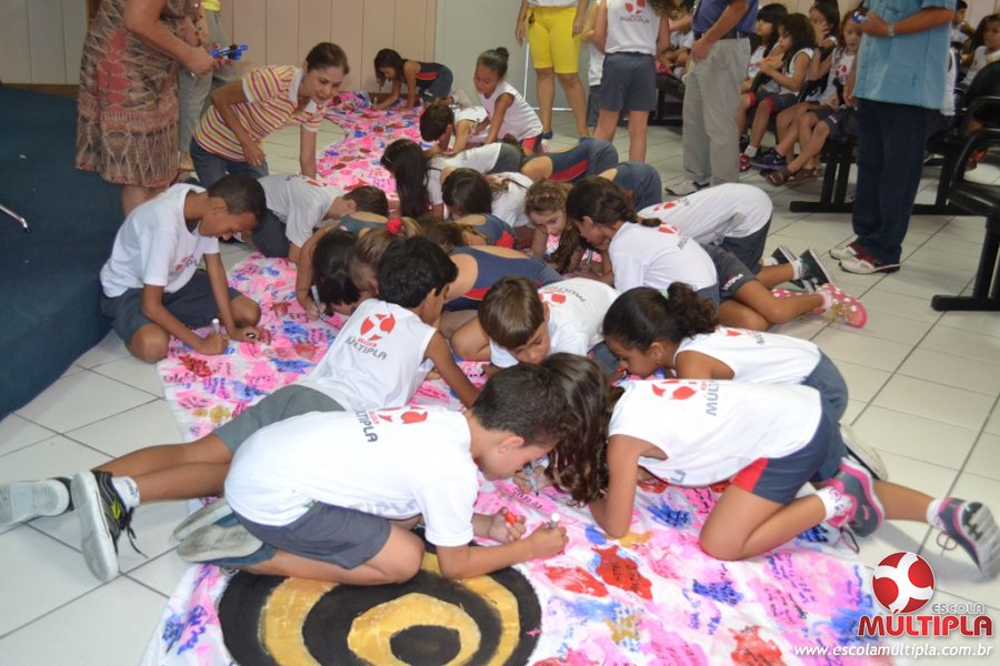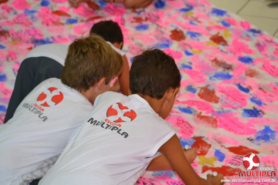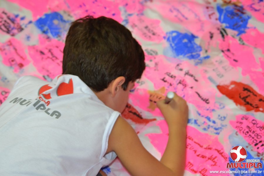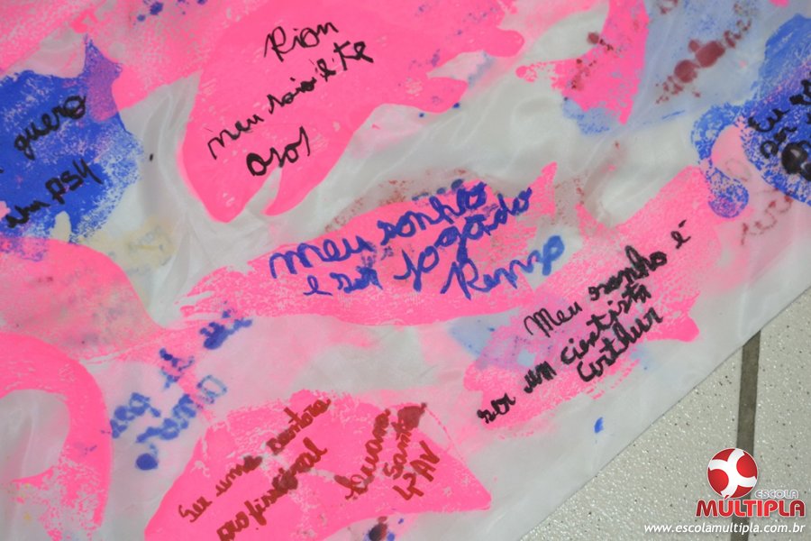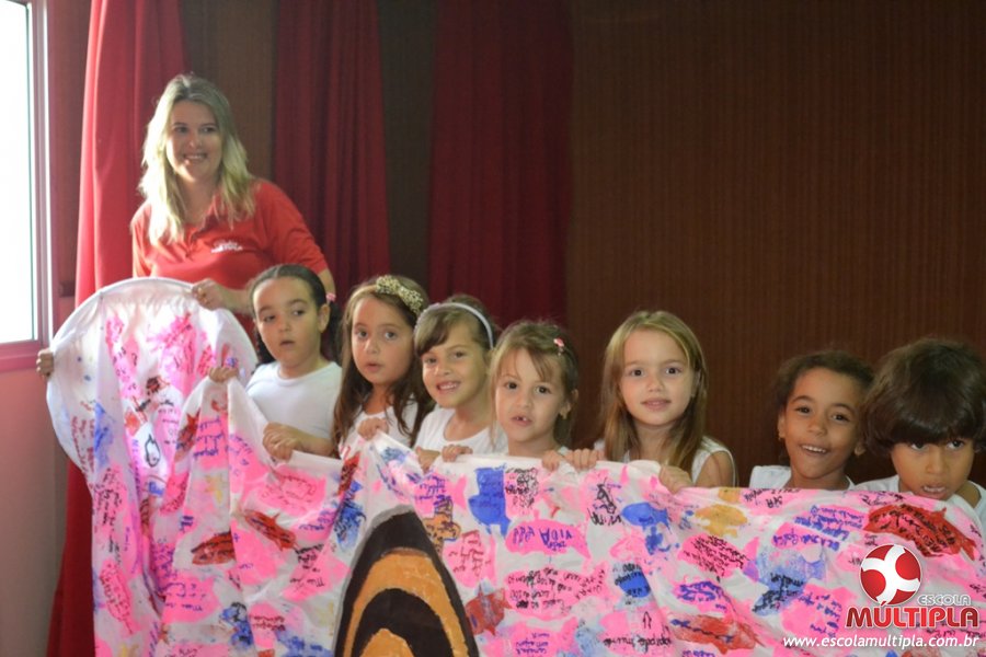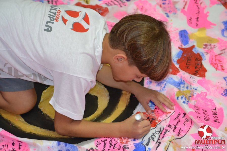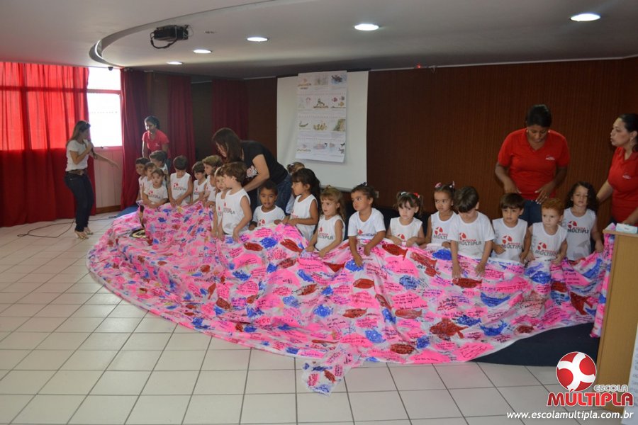 Após ouvirem a apresentação desta cultura japonesa e a história do Swimmy, os alunos da ED. Infantil e 1º anos fizeram seus pedidos e os alunos dos 2º aos 5º ANOS deixaram suas mensagens no peixe feito de mais de 10 metros de tecido.