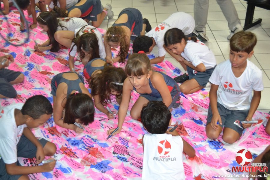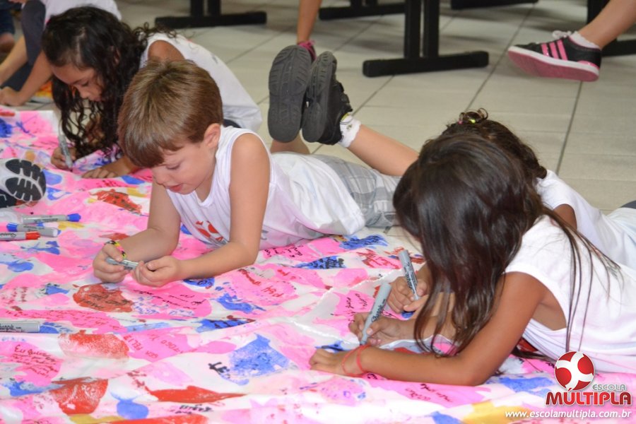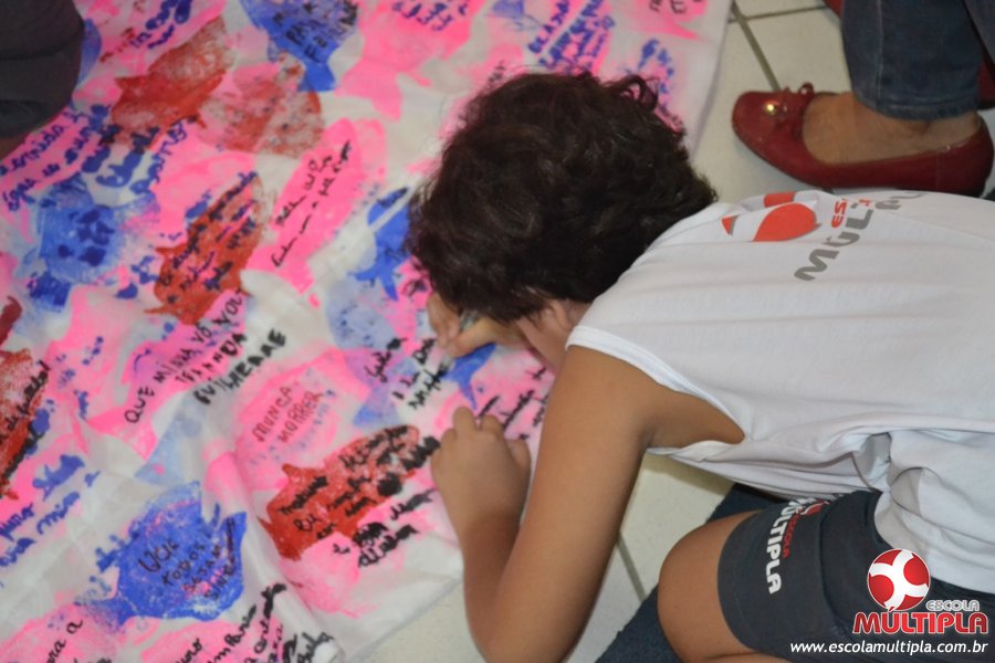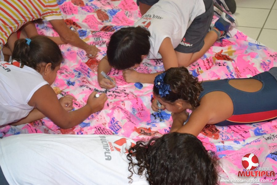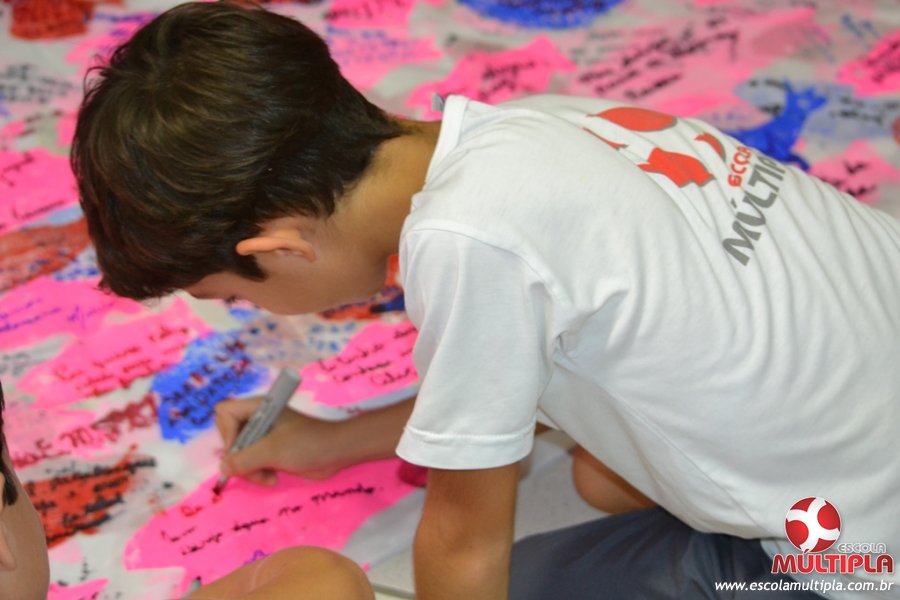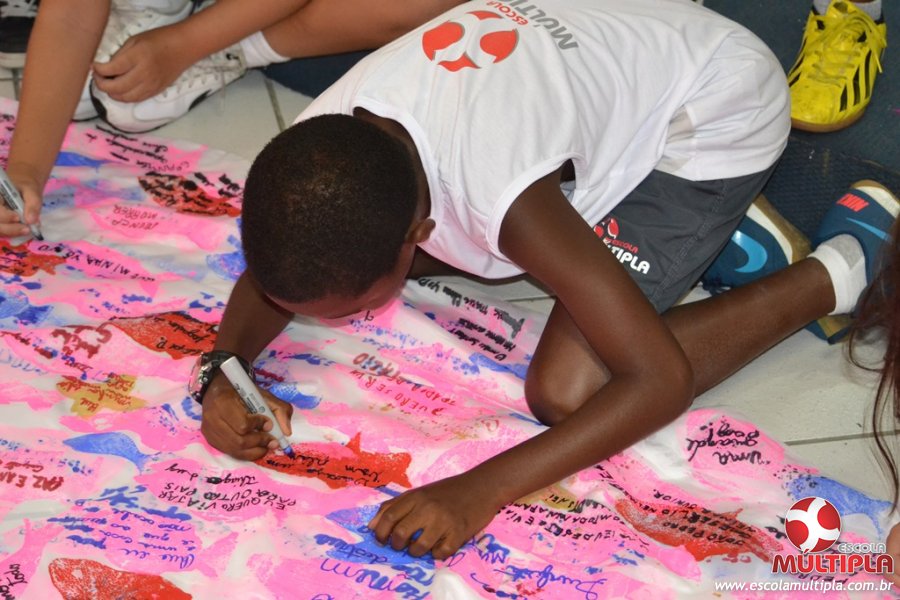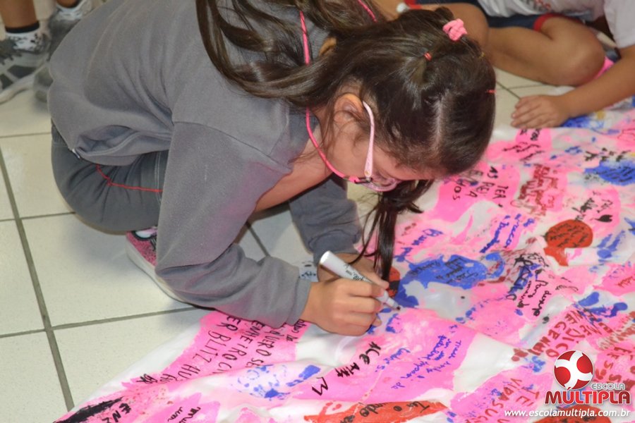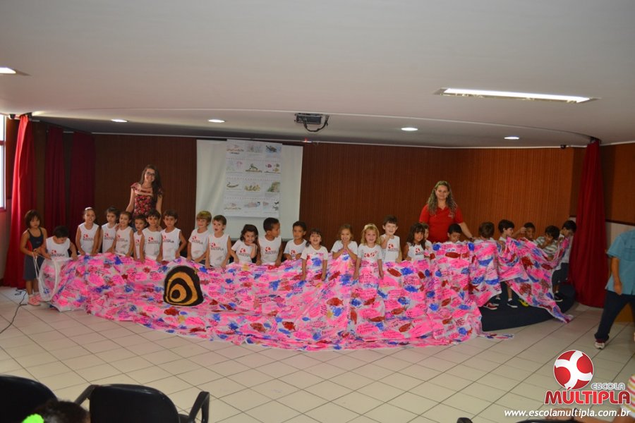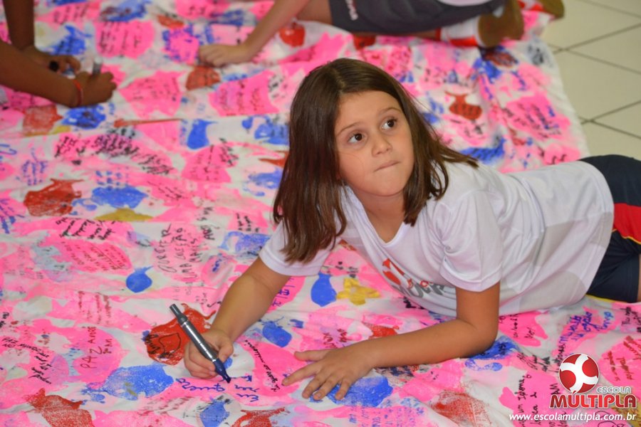 Após ouvirem a apresentação desta cultura japonesa e a história do Swimmy, os alunos da ED. Infantil e 1º anos fizeram seus pedidos e os alunos dos 2º aos 5º ANOS deixaram suas mensagens no peixe feito de mais de 10 metros de tecido.