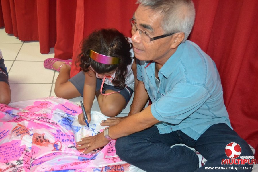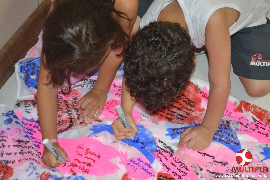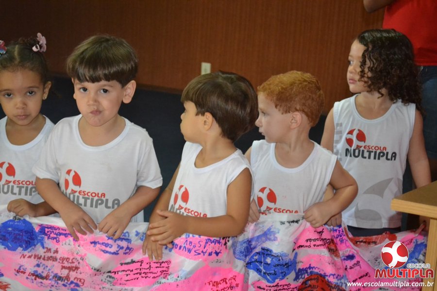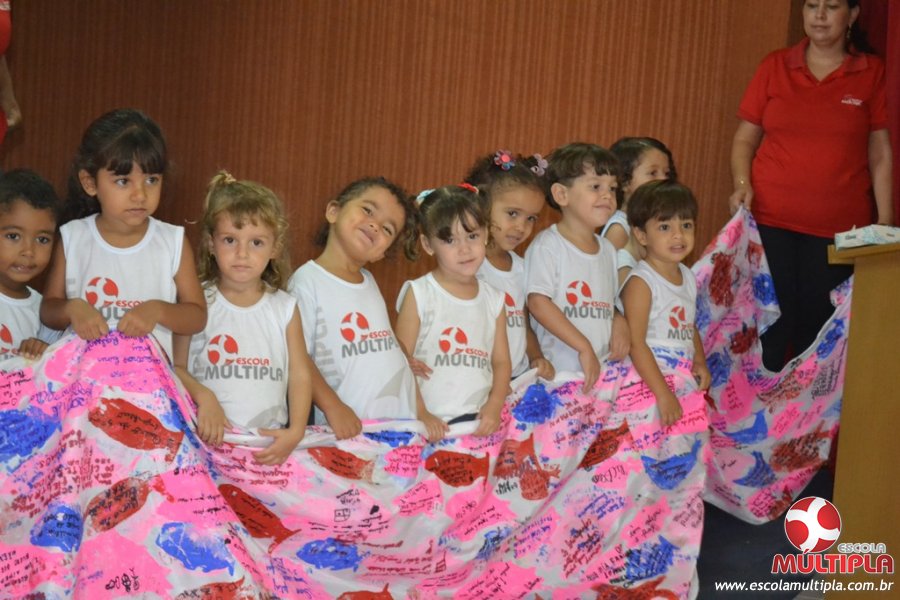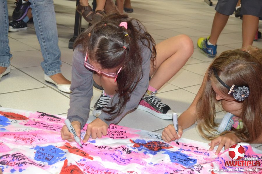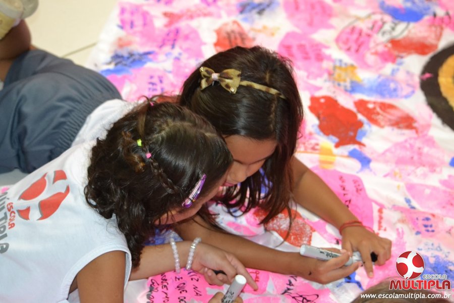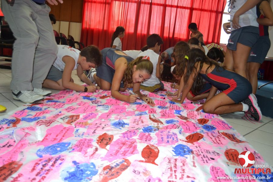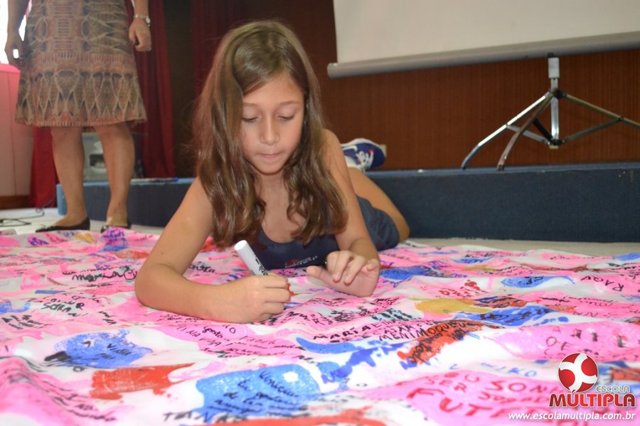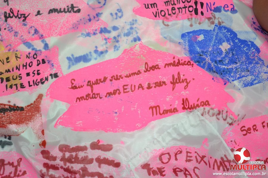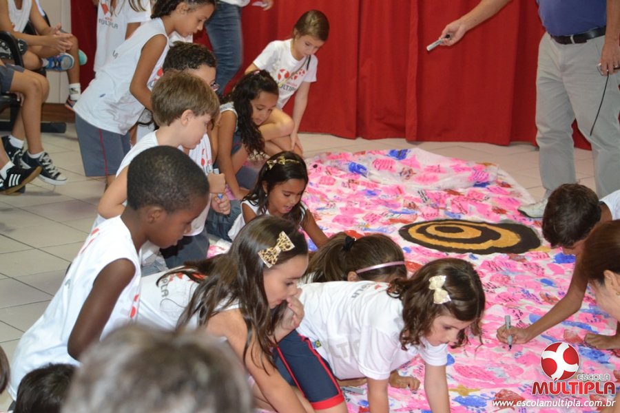 Após ouvirem a apresentação desta cultura japonesa e a história do Swimmy, os alunos da ED. Infantil e 1º anos fizeram seus pedidos e os alunos dos 2º aos 5º ANOS deixaram suas mensagens no peixe feito de mais de 10 metros de tecido.