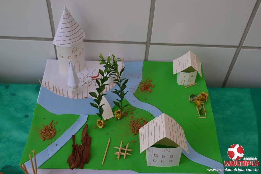 Os alunos pesquisaram o assunto e fizeram maquetes com a ajuda dos familiares. Todo o material produzido foi exposto para alunos e professores da escola.