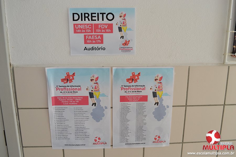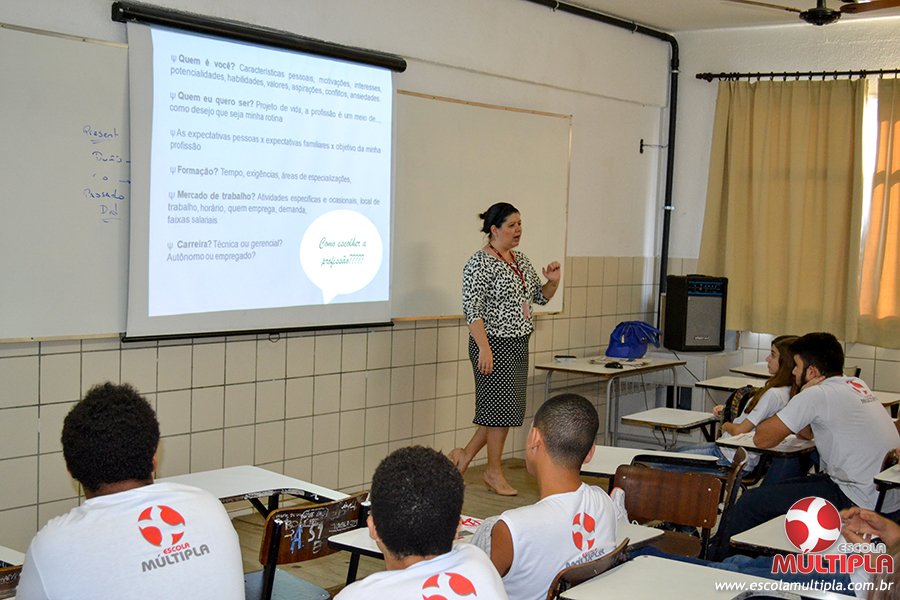 Acompanhando essas dificuldades, a Escola Múltipla promoveu nos dias 26, 27 e 28 de maio, a 5ª Semana de Informação Profissional, por meio de palestras sobre profissões, com a presença de profissionais atuantes no mercado de trabalho, com abordagens em diferentes áreas de atuação.