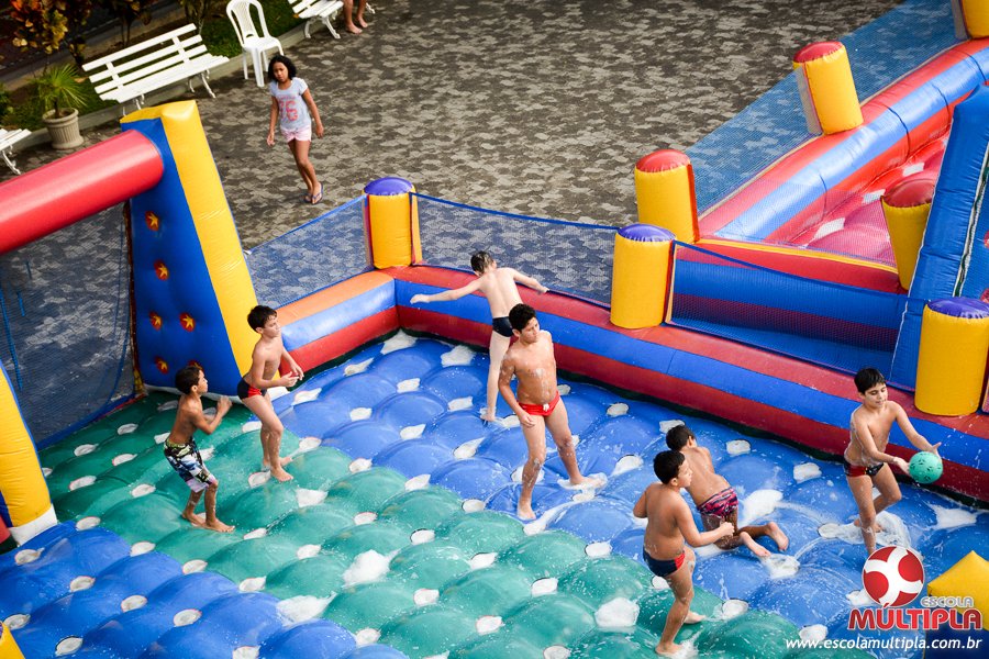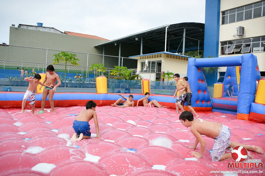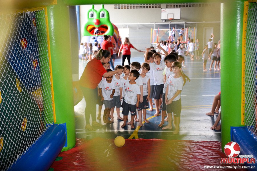Durante os dois dias de evento, os alunos brincaram quatro horas em todos os brinquedos como: futebol de sabão, play park fazendinha, centopeia, chute a gol e guerra de cotonetes.