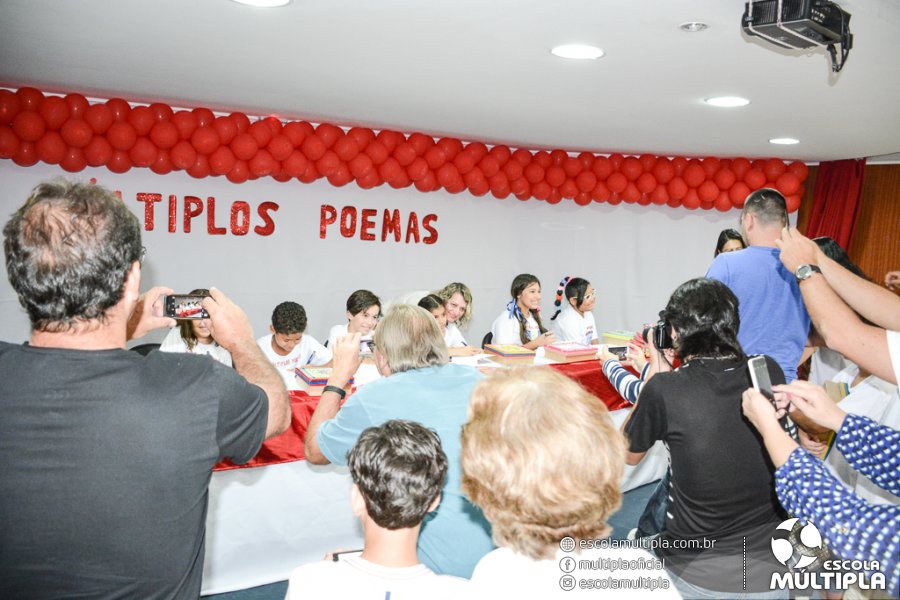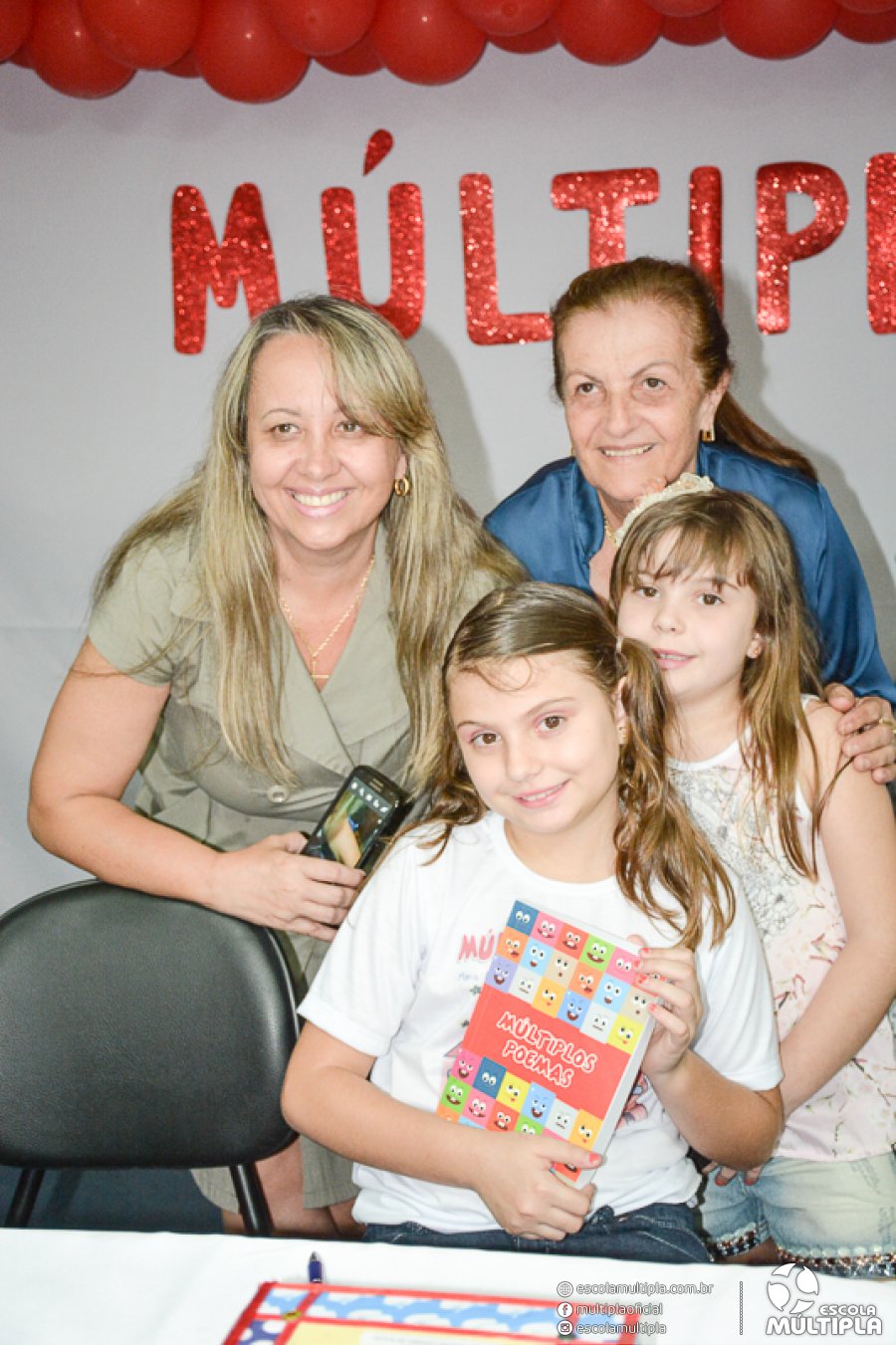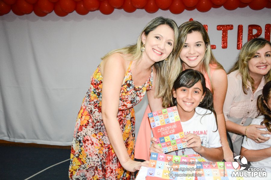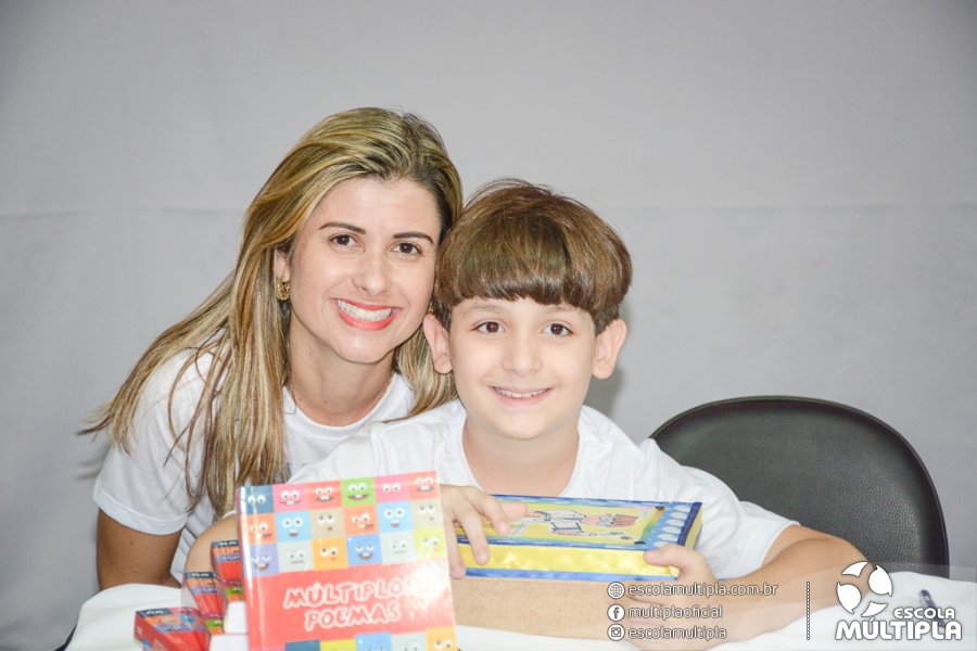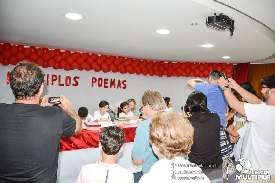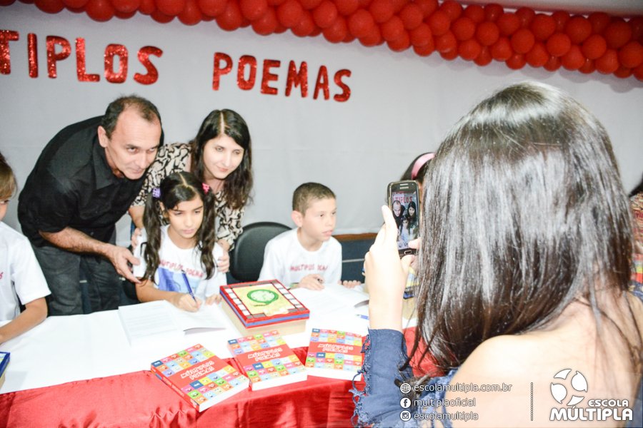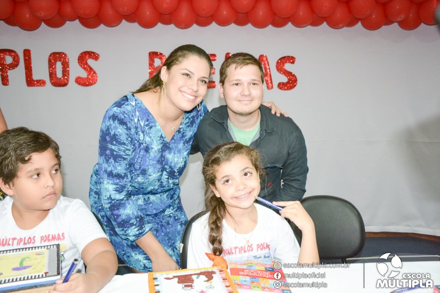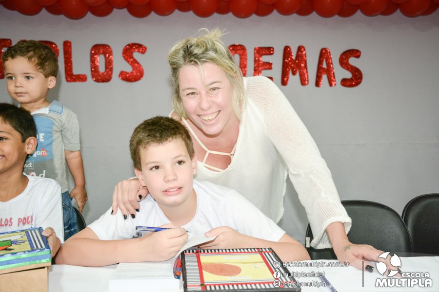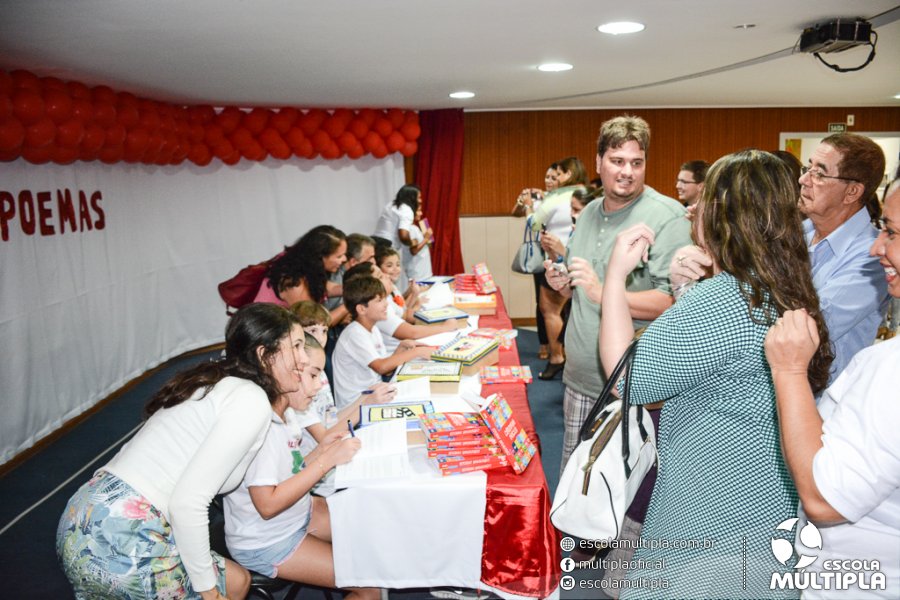Ao final das apresentações, aconteceu a tão esperada noite de autógrafos do livro “Múltiplos Poemas”, momento de muita alegria para pais e alunos presentes.