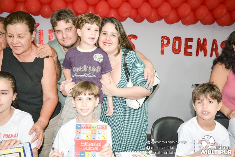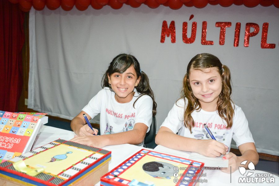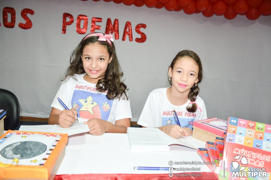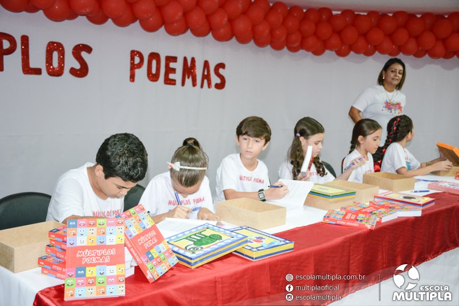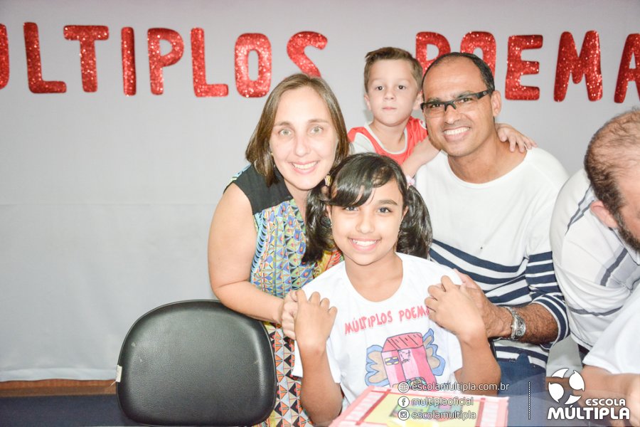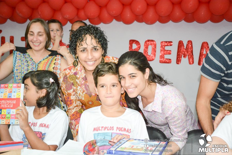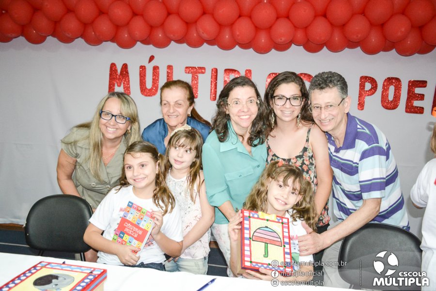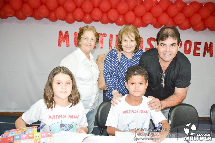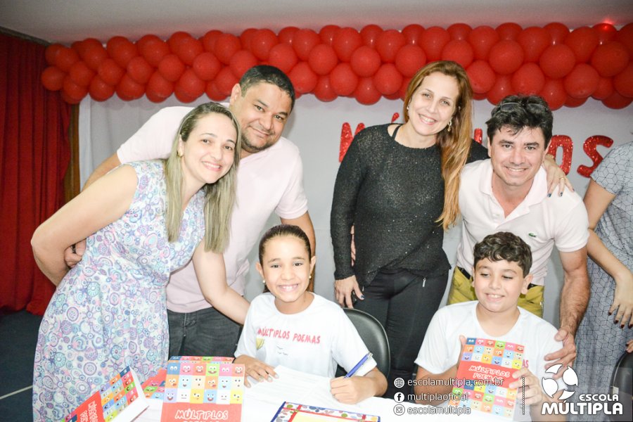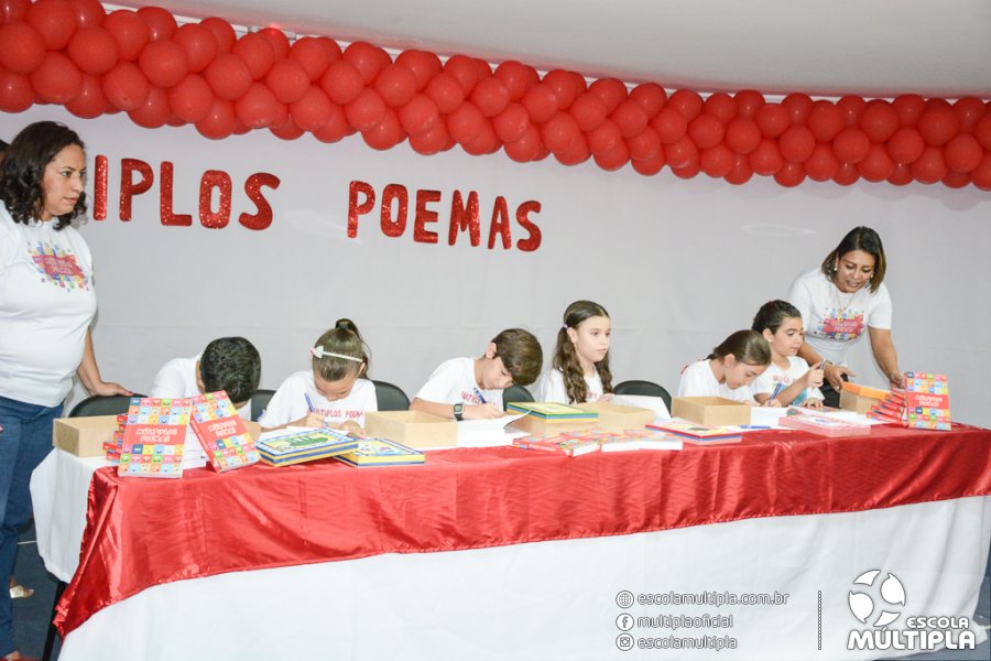 Ao final das apresentações, aconteceu a tão esperada noite de autógrafos do livro “Múltiplos Poemas”, momento de muita alegria para pais e alunos presentes.