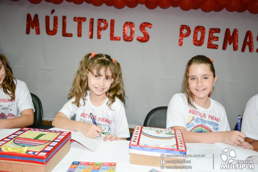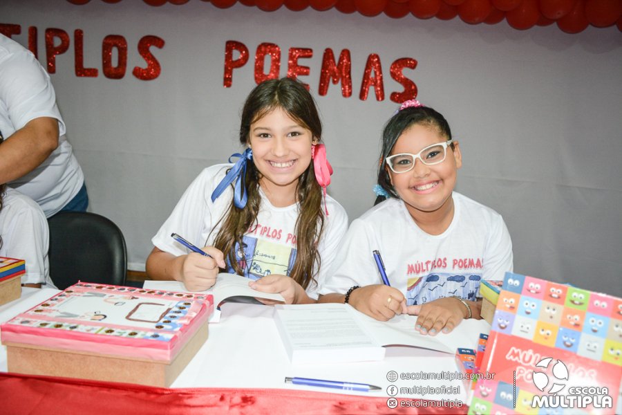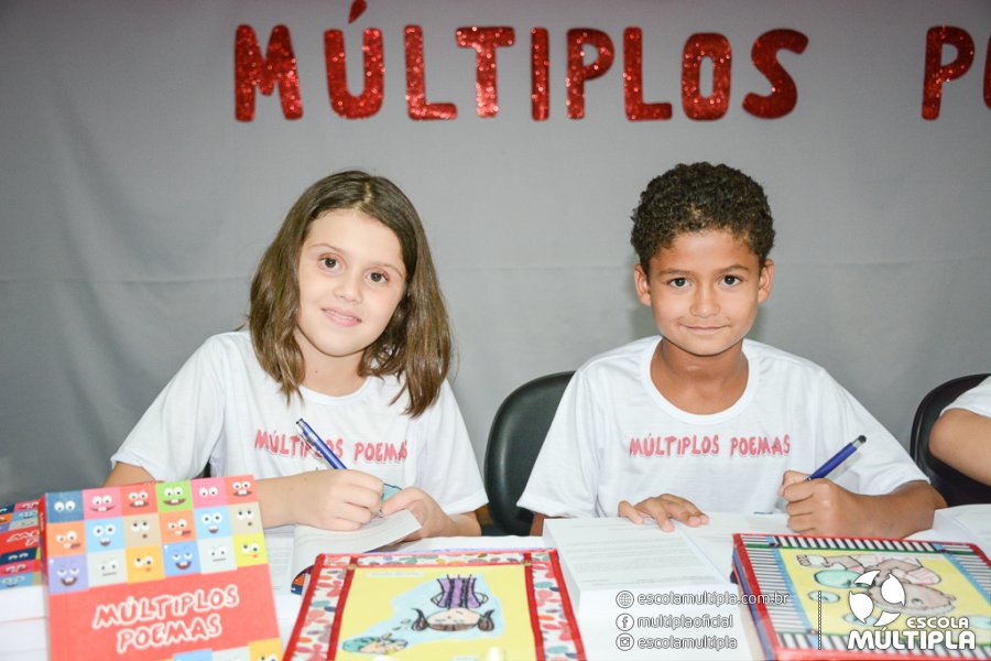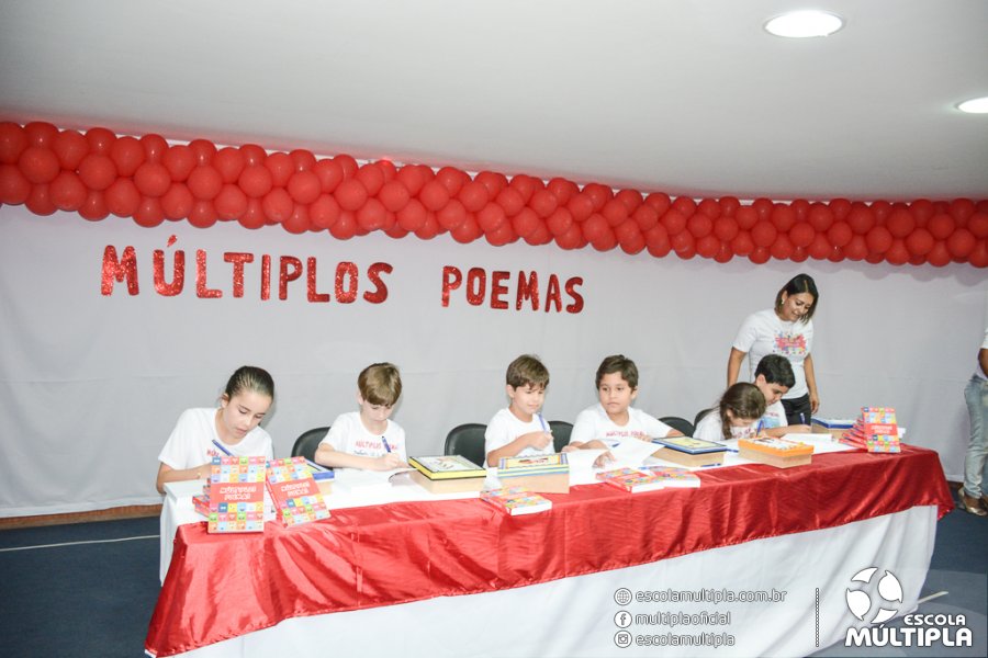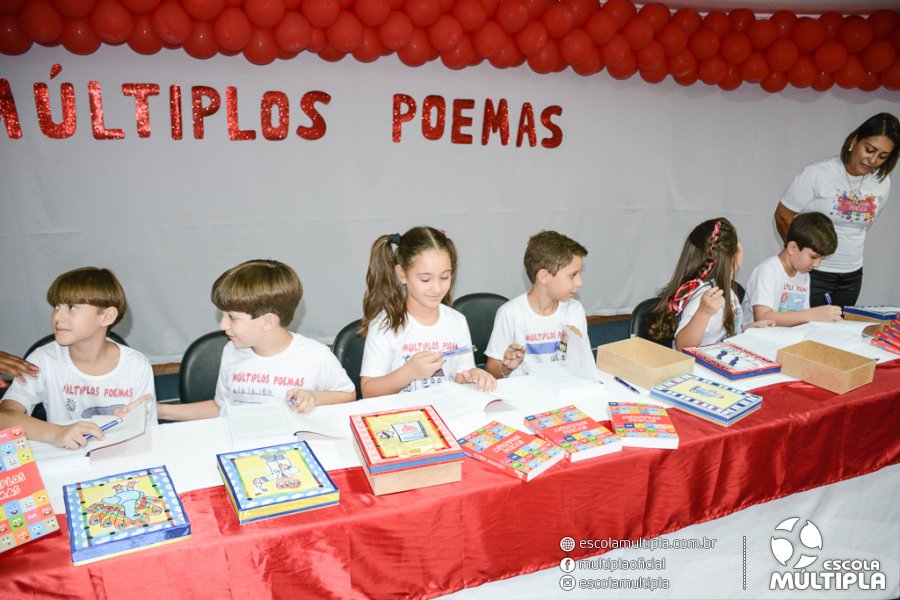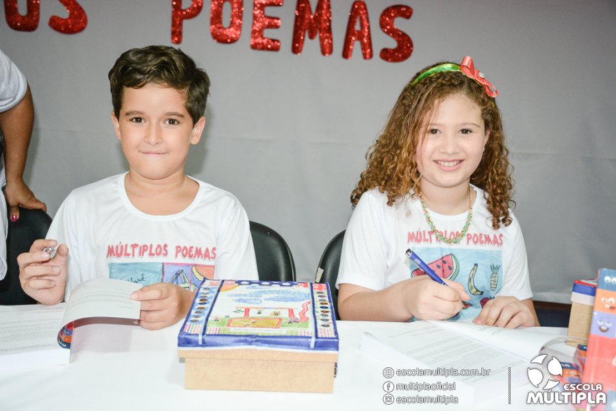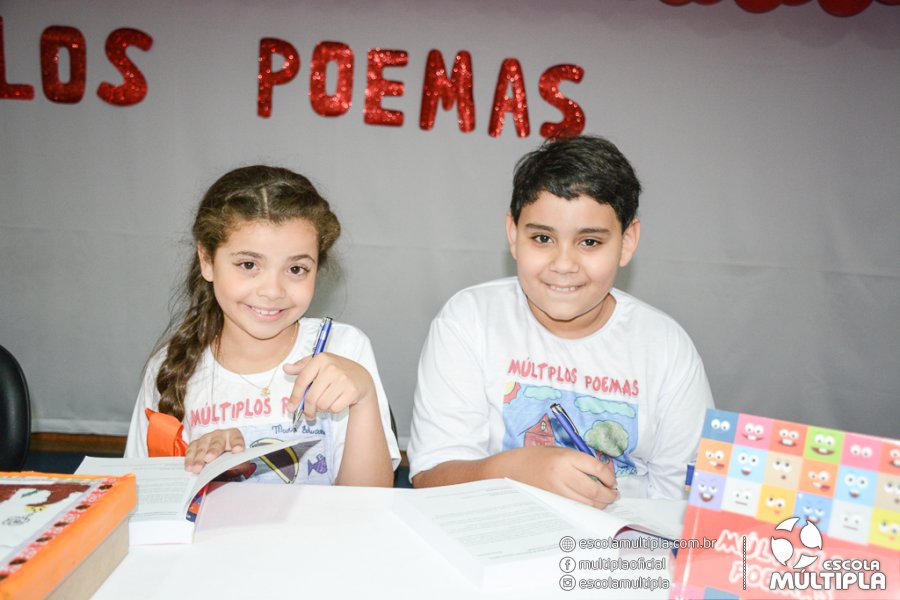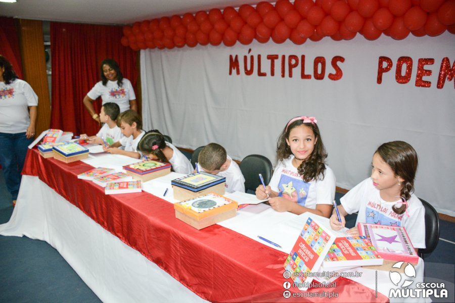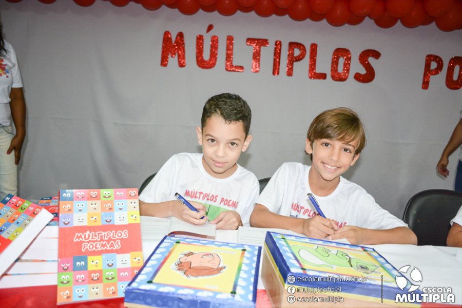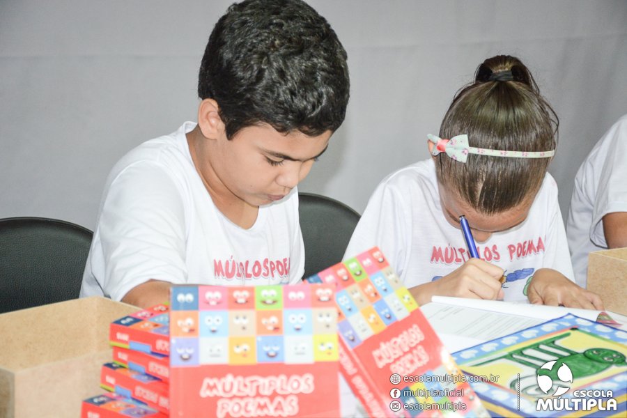 Ao final das apresentações, aconteceu a tão esperada noite de autógrafos do livro “Múltiplos Poemas”, momento de muita alegria para pais e alunos presentes.