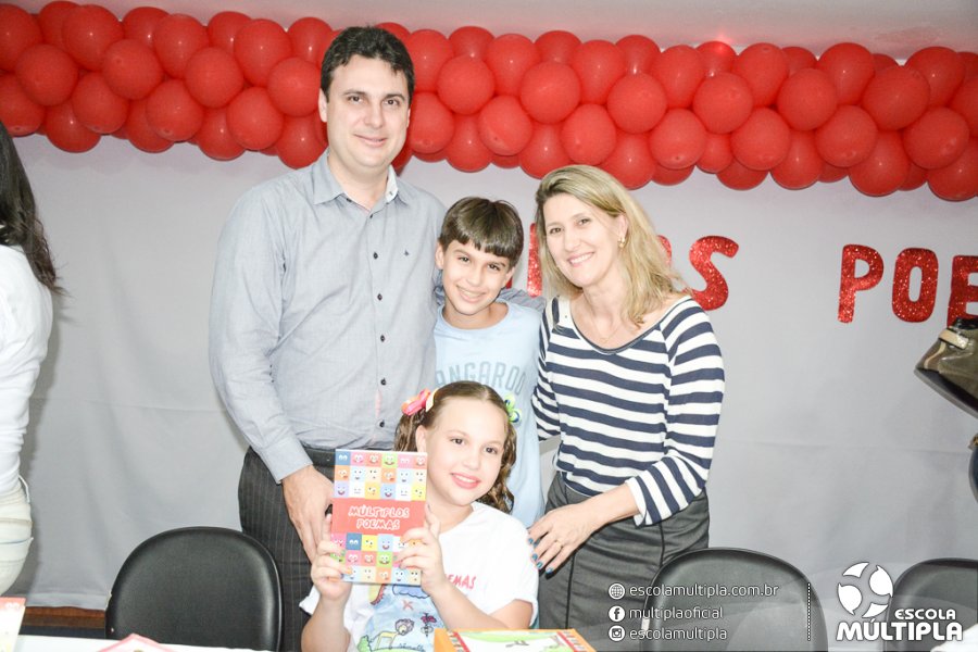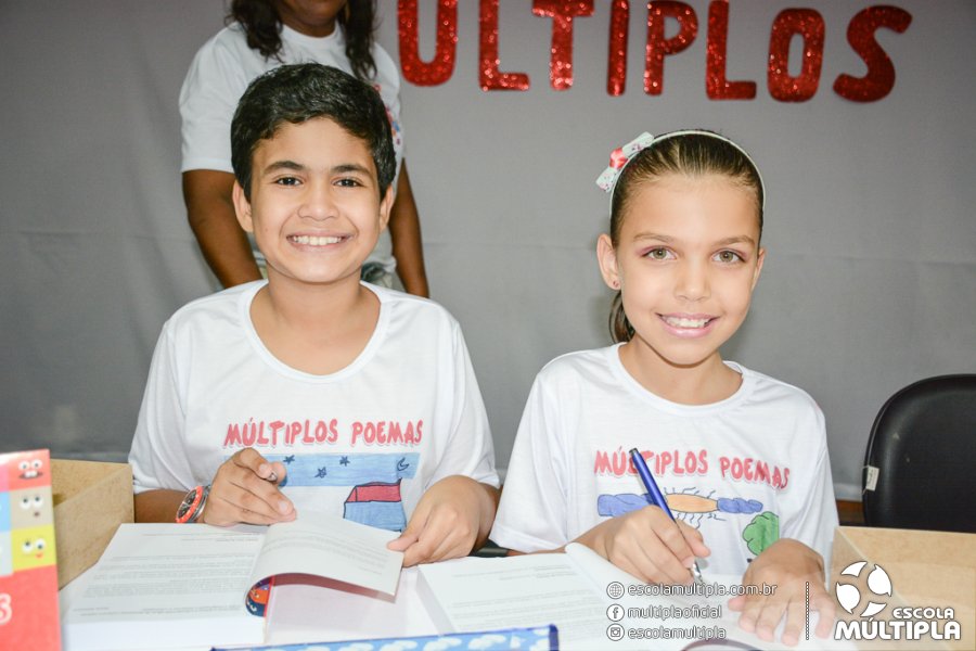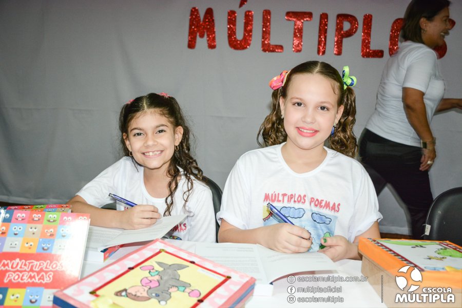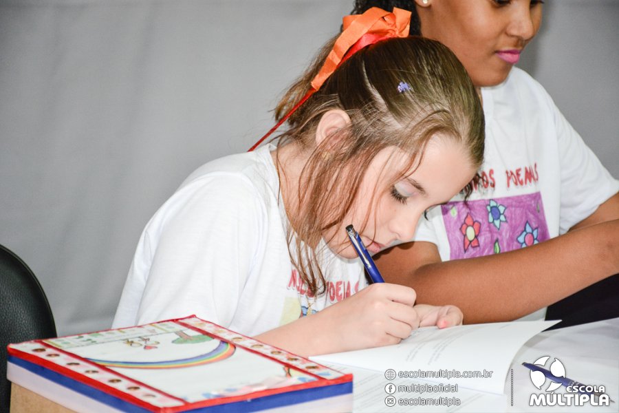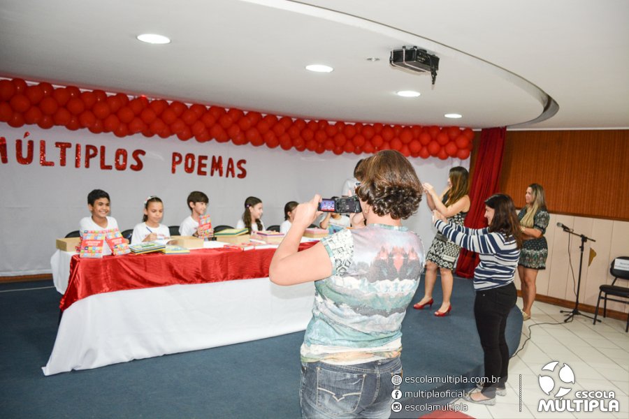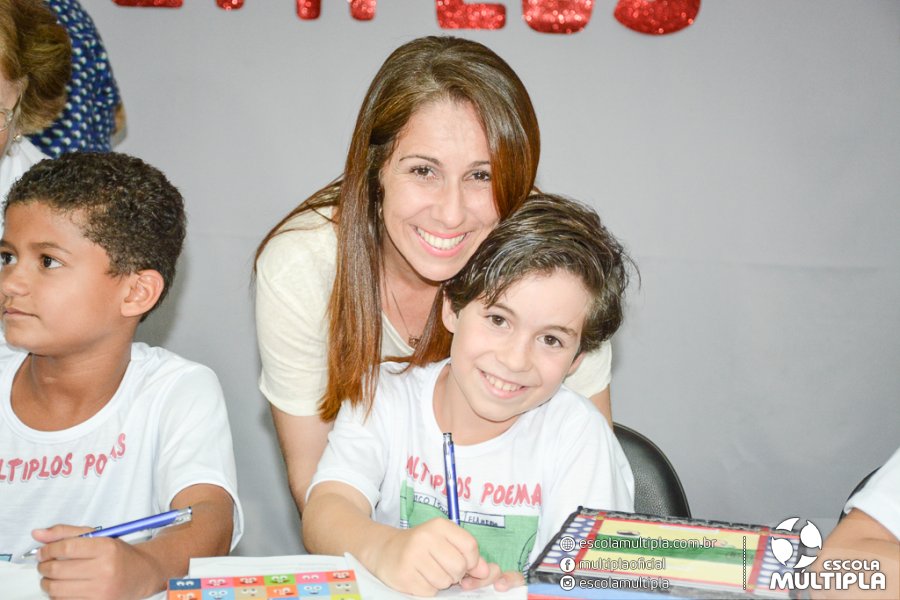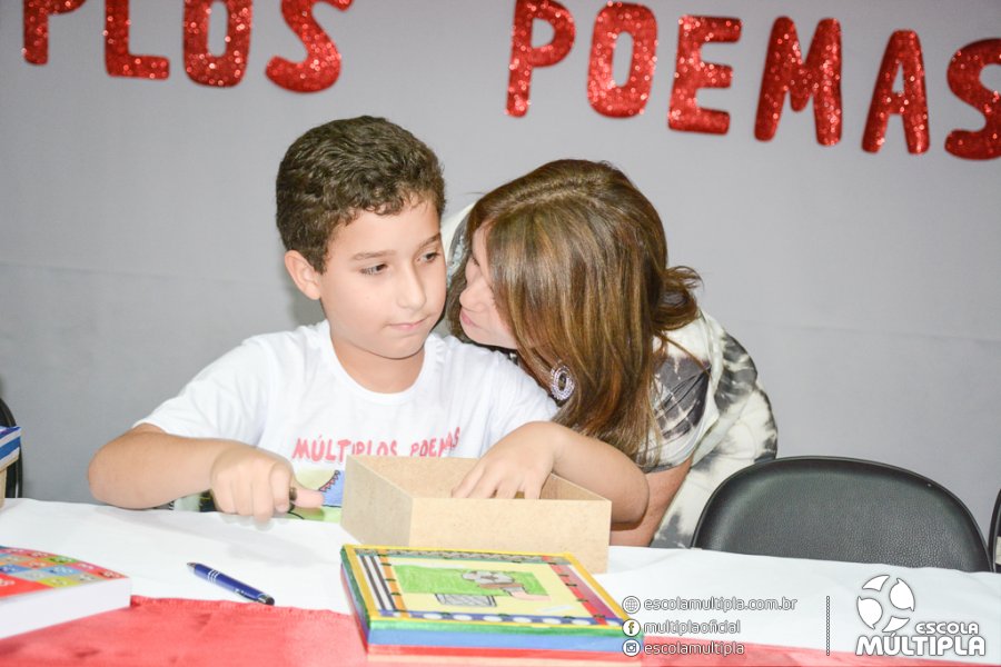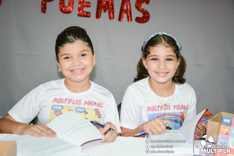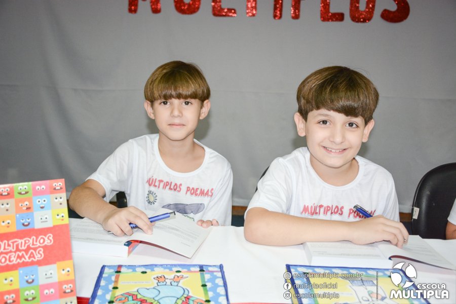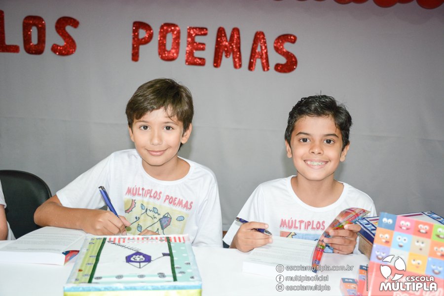 Ao final das apresentações, aconteceu a tão esperada noite de autógrafos do livro “Múltiplos Poemas”, momento de muita alegria para pais e alunos presentes.