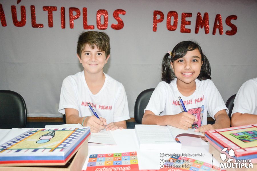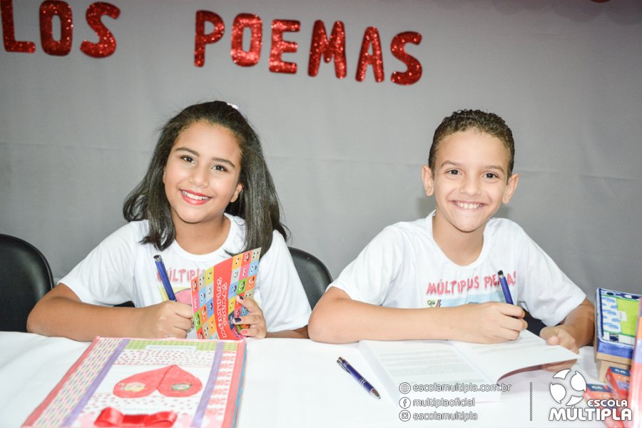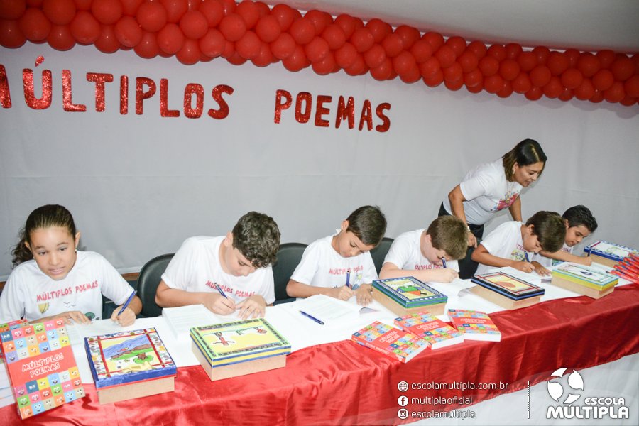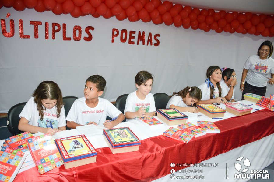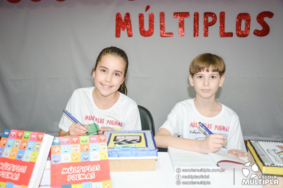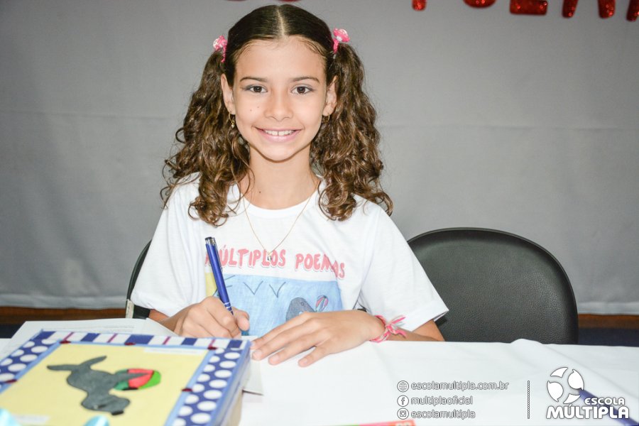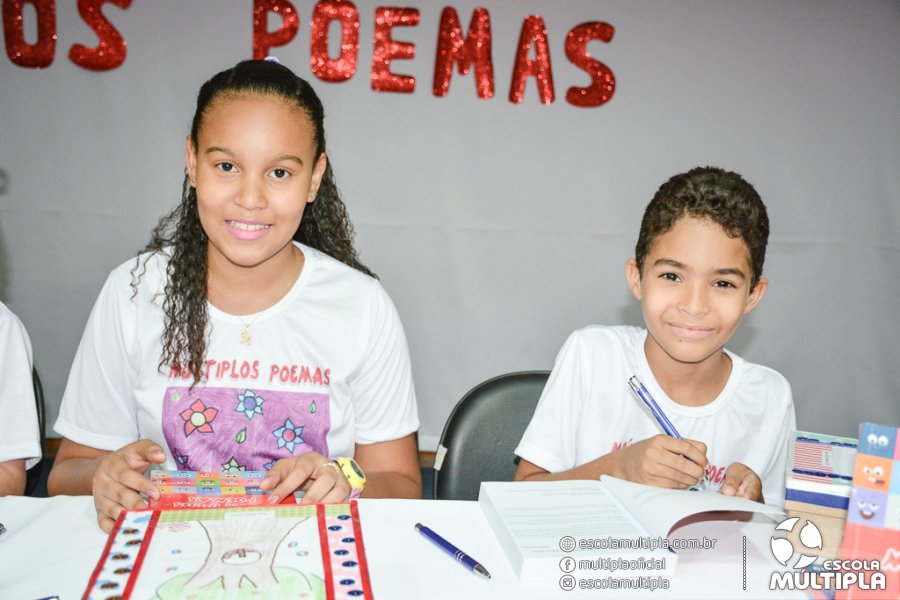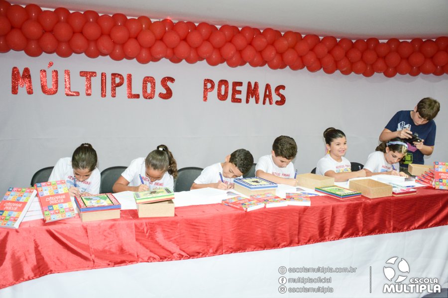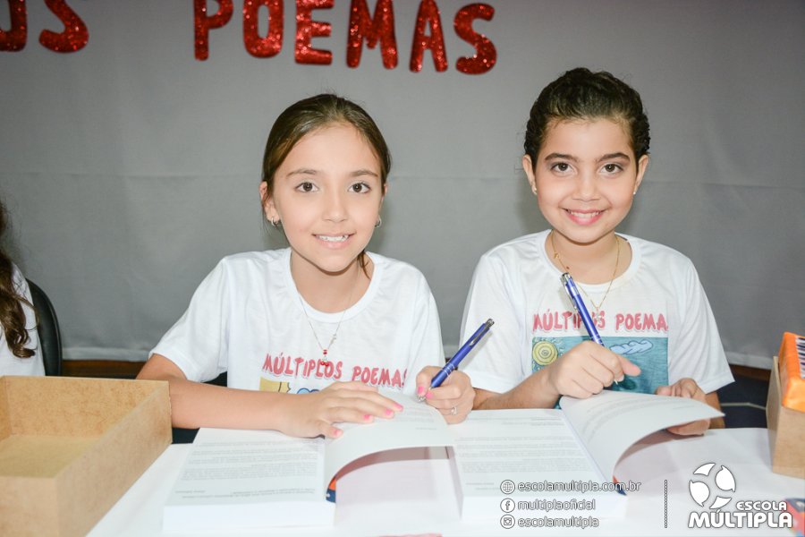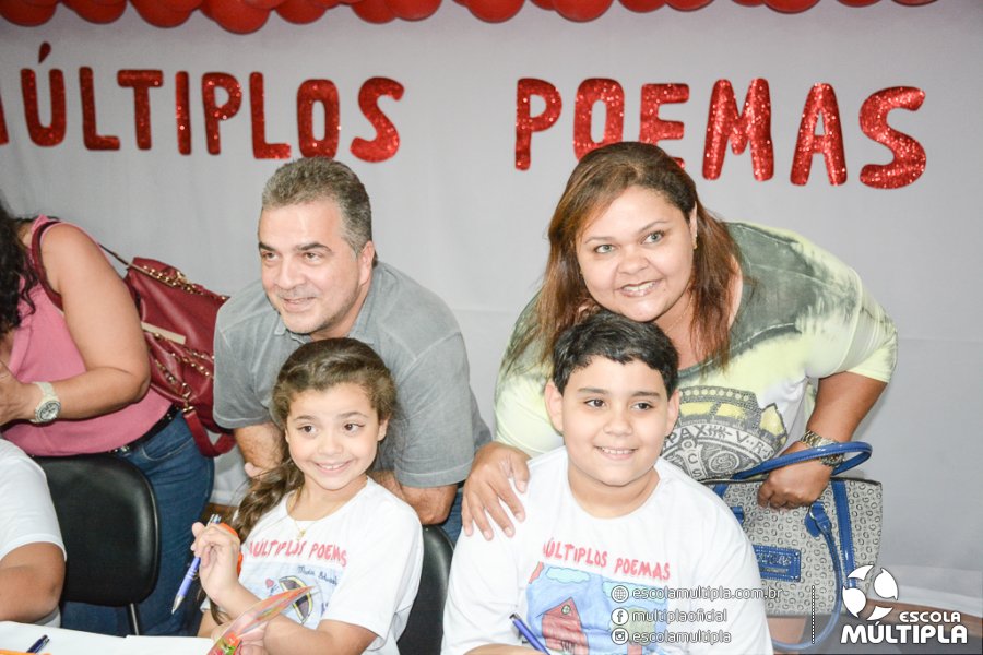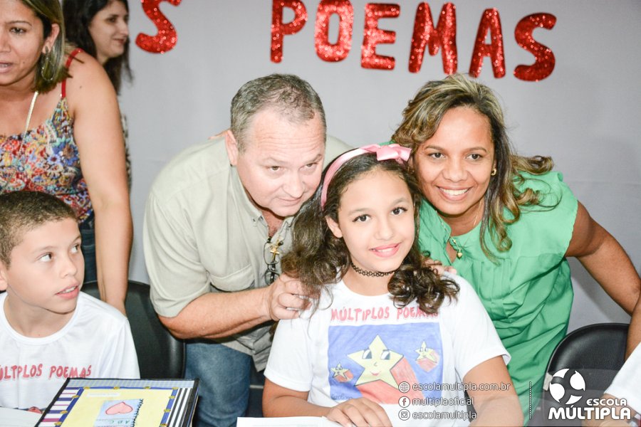 Ao final das apresentações, aconteceu a tão esperada noite de autógrafos do livro “Múltiplos Poemas”, momento de muita alegria para pais e alunos presentes.