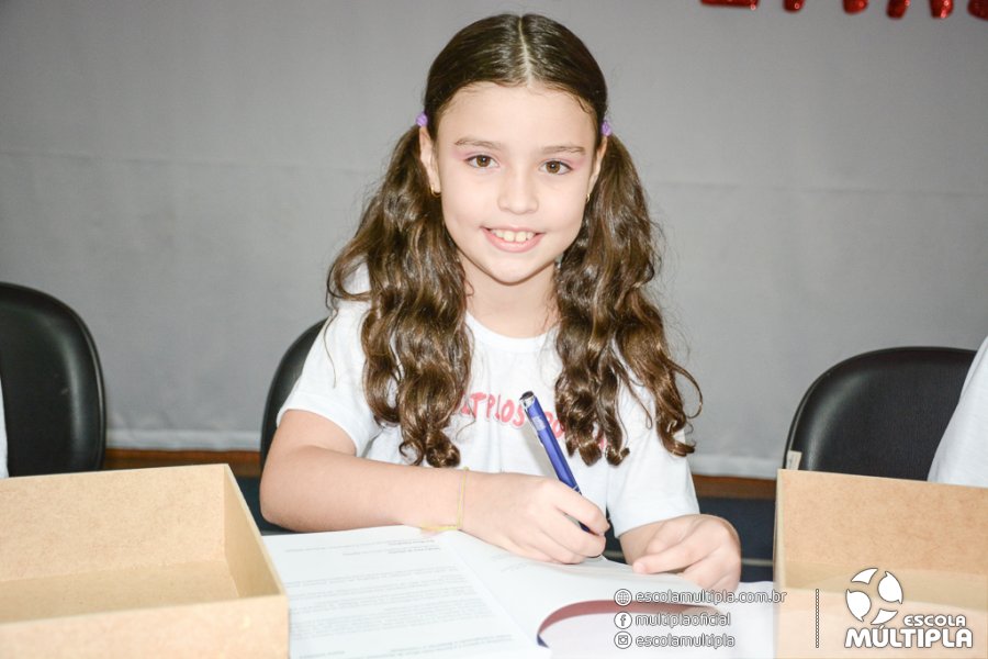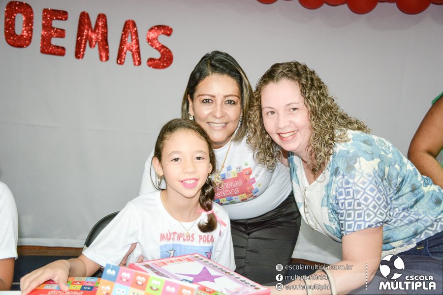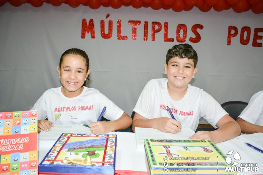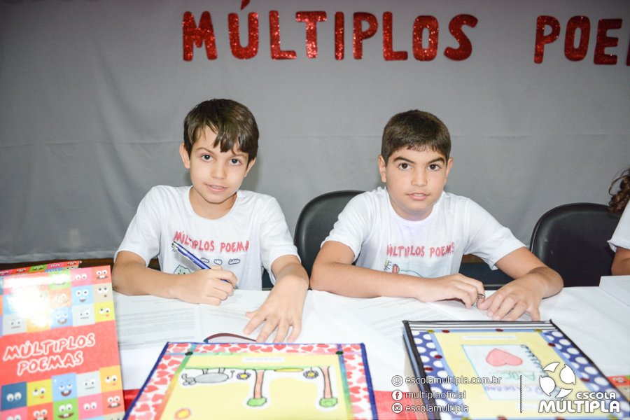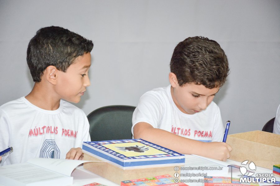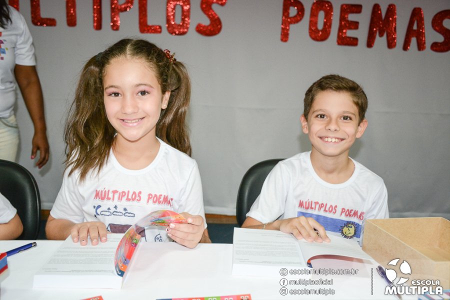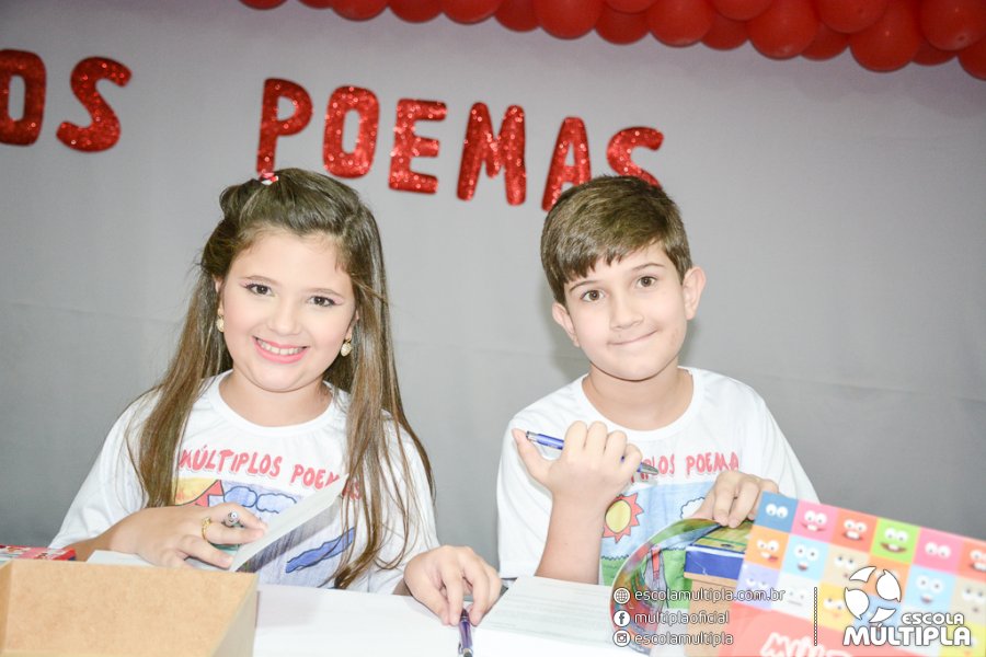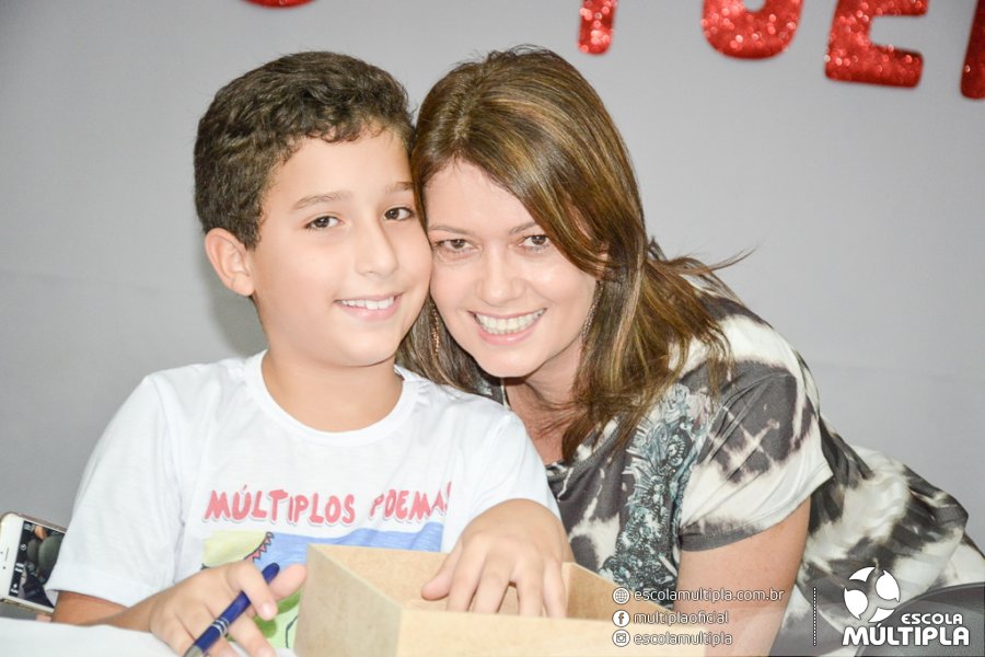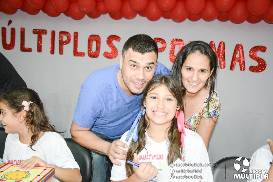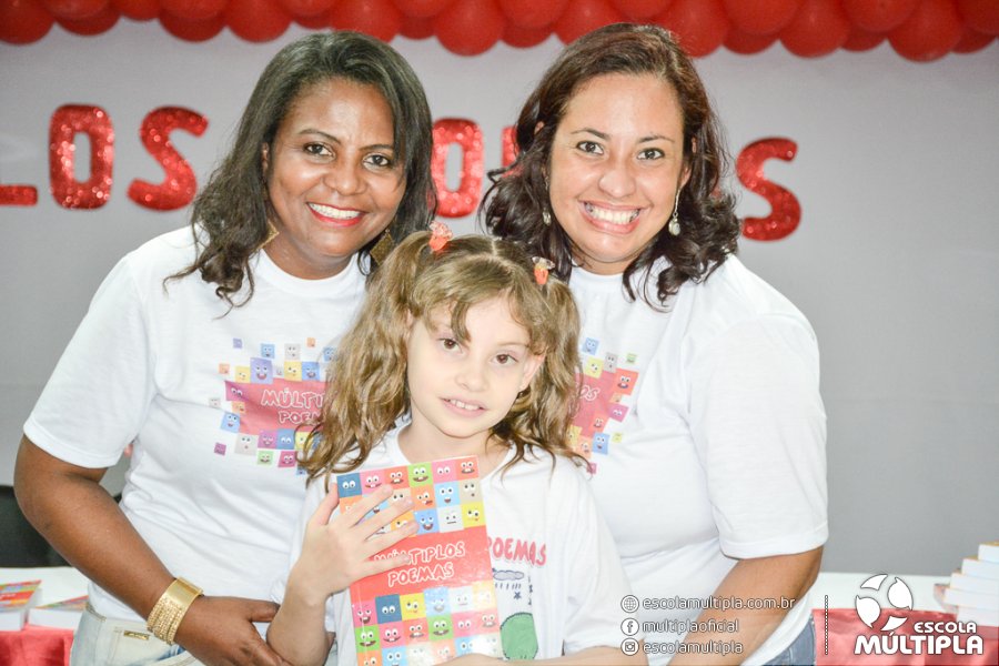 Ao final das apresentações, aconteceu a tão esperada noite de autógrafos do livro “Múltiplos Poemas”, momento de muita alegria para pais e alunos presentes.