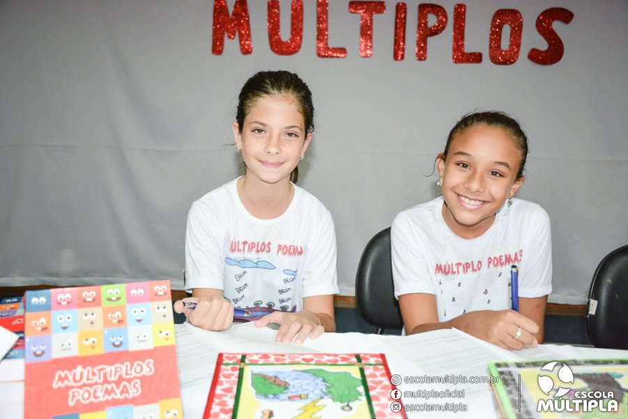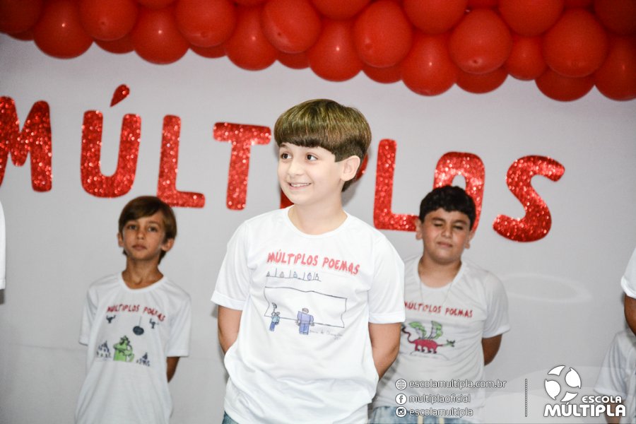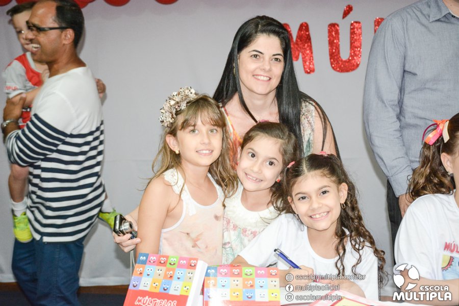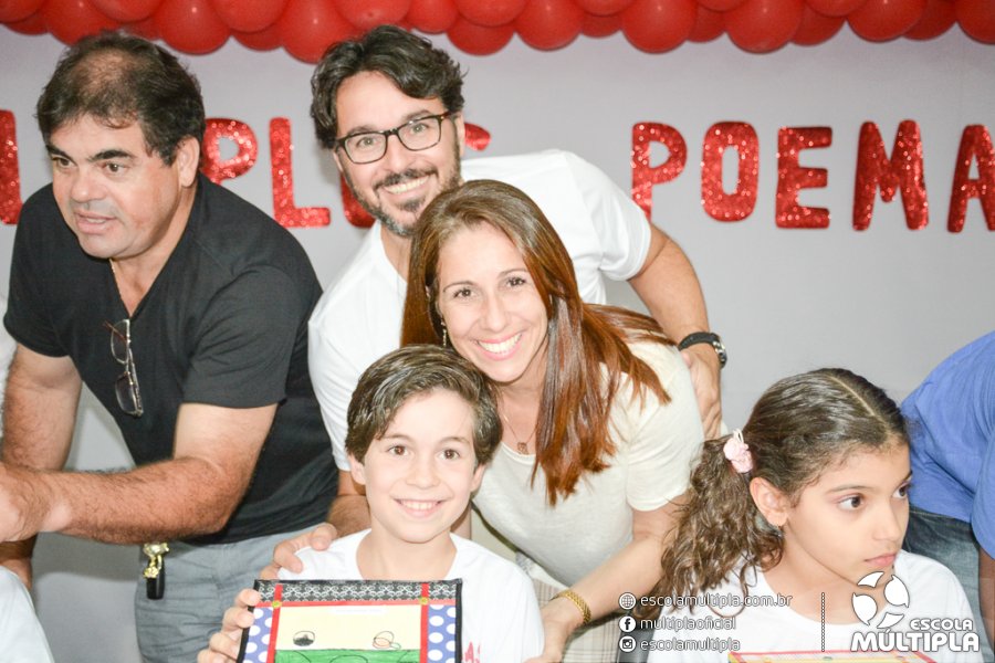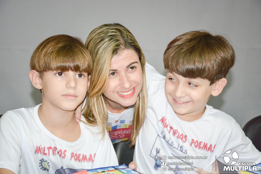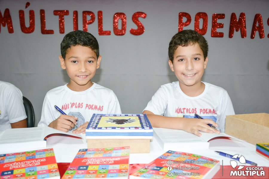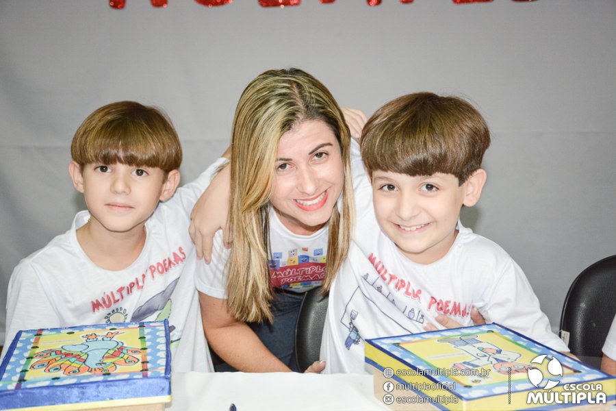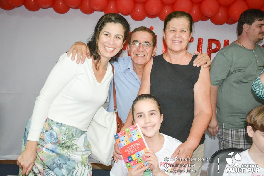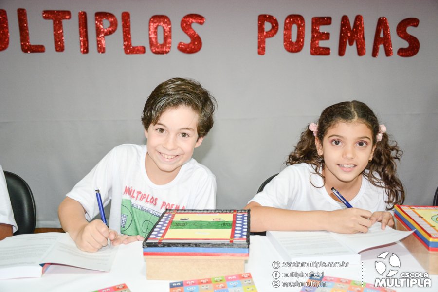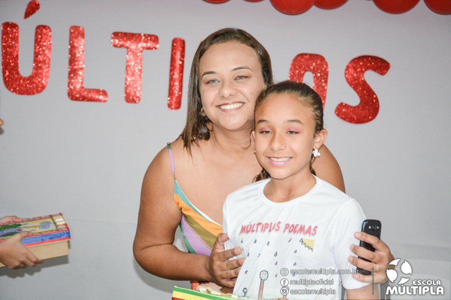 Ao final das apresentações, aconteceu a tão esperada noite de autógrafos do livro “Múltiplos Poemas”, momento de muita alegria para pais e alunos presentes.
