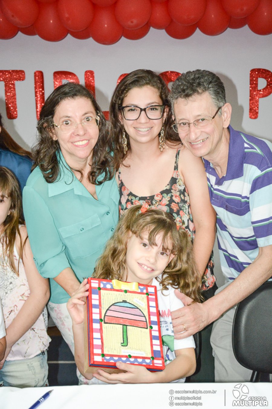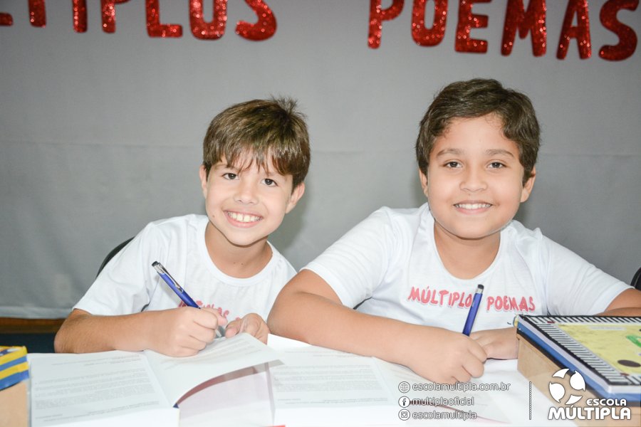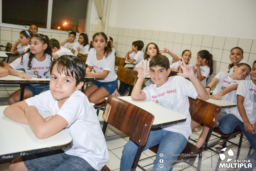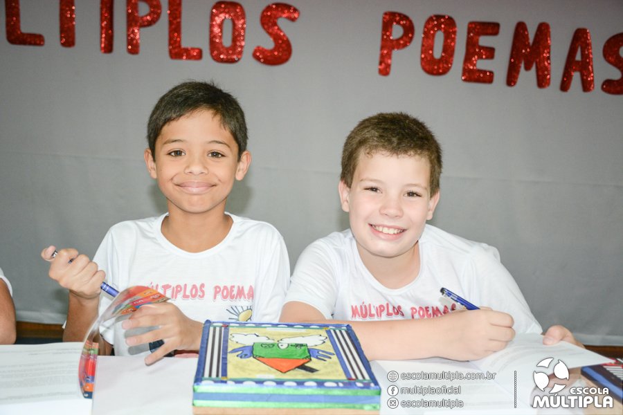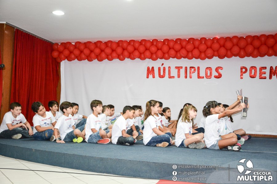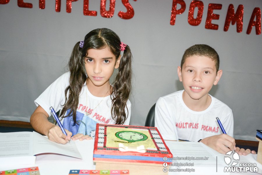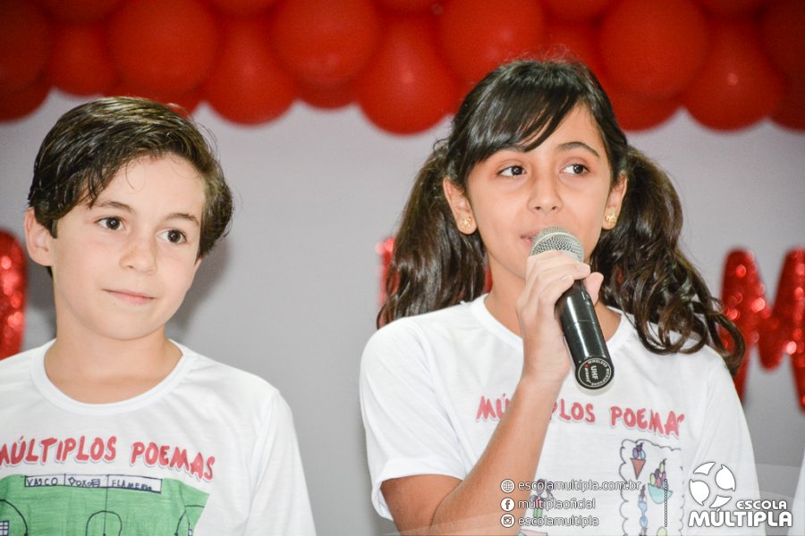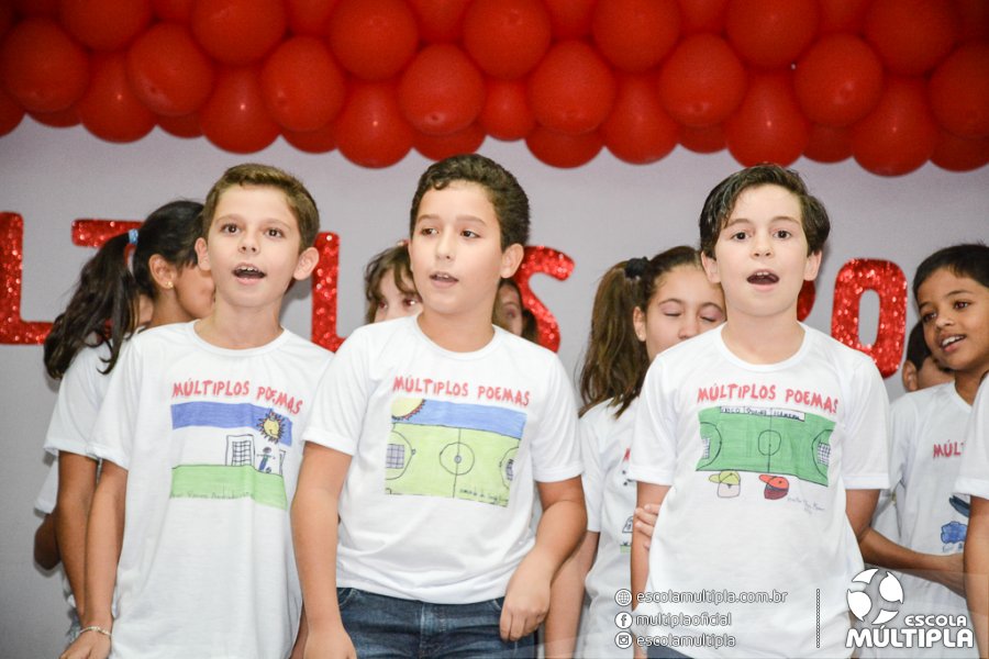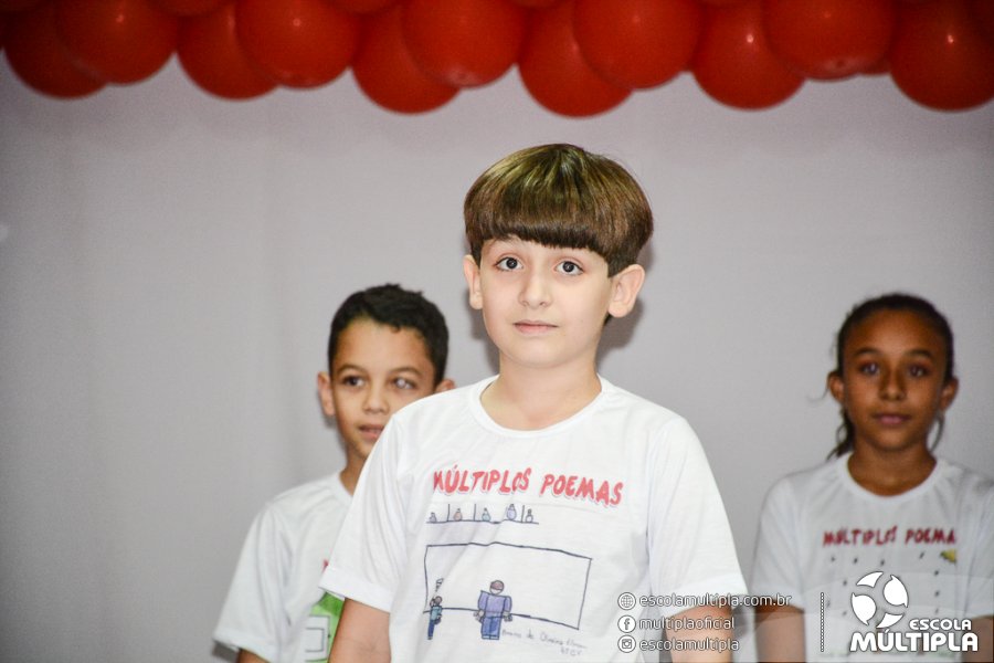 Ao final das apresentações, aconteceu a tão esperada noite de autógrafos do livro “Múltiplos Poemas”, momento de muita alegria para pais e alunos presentes.