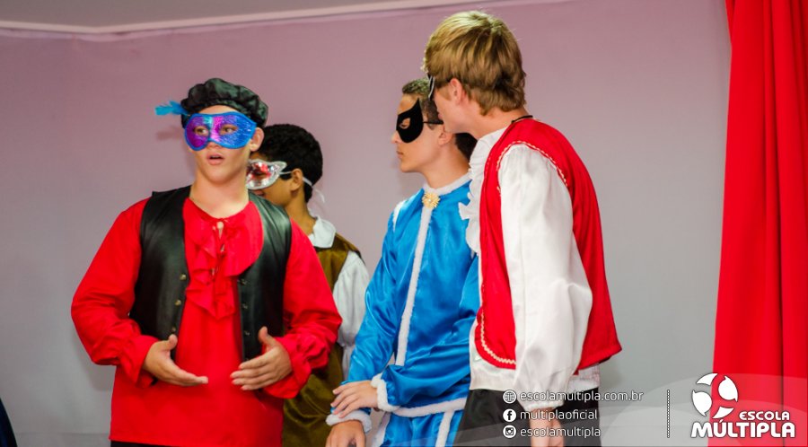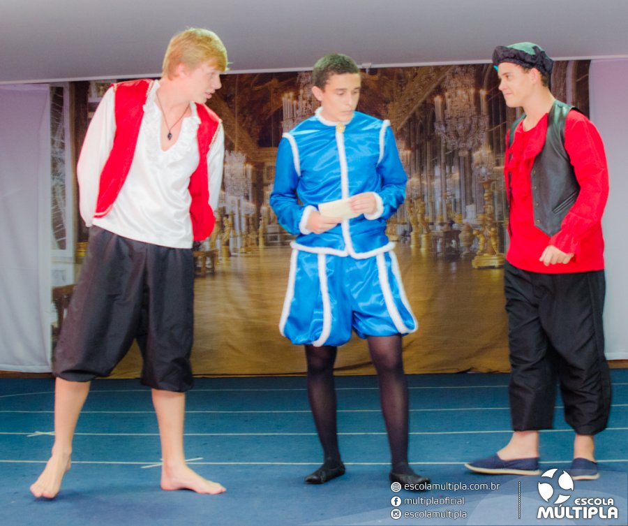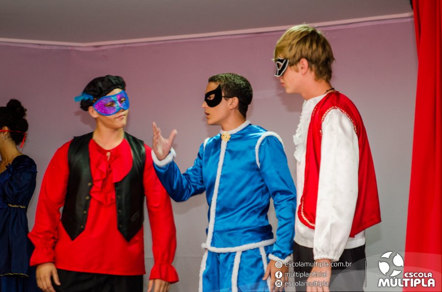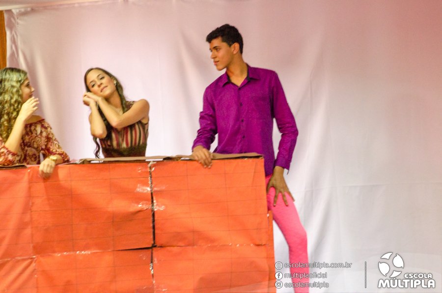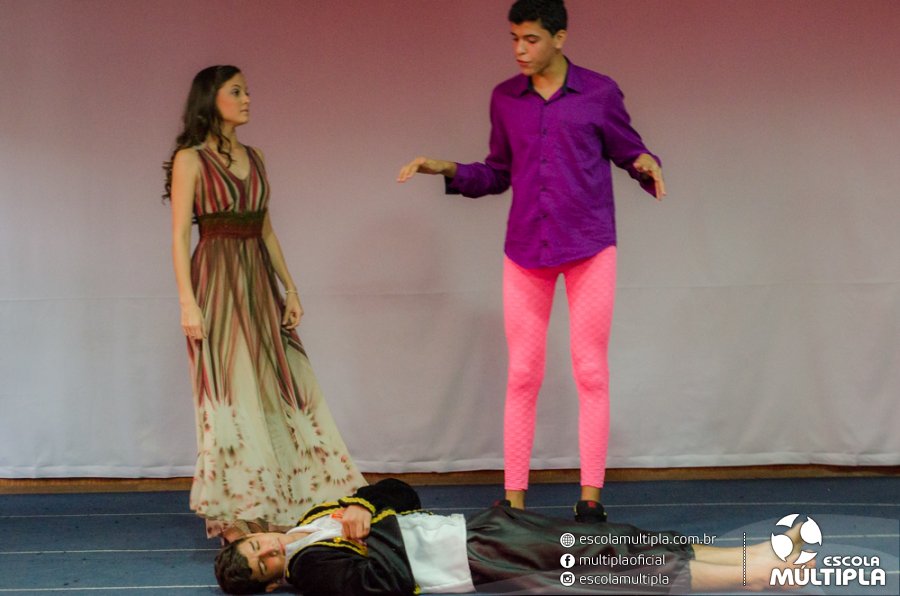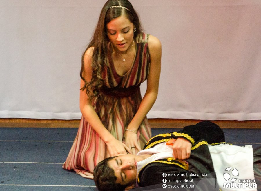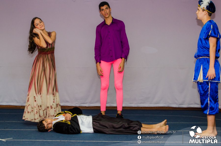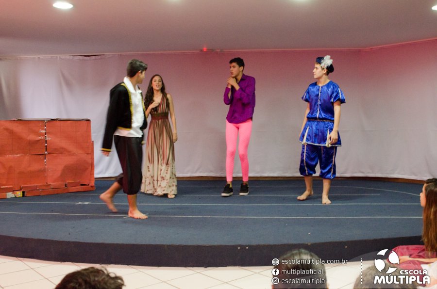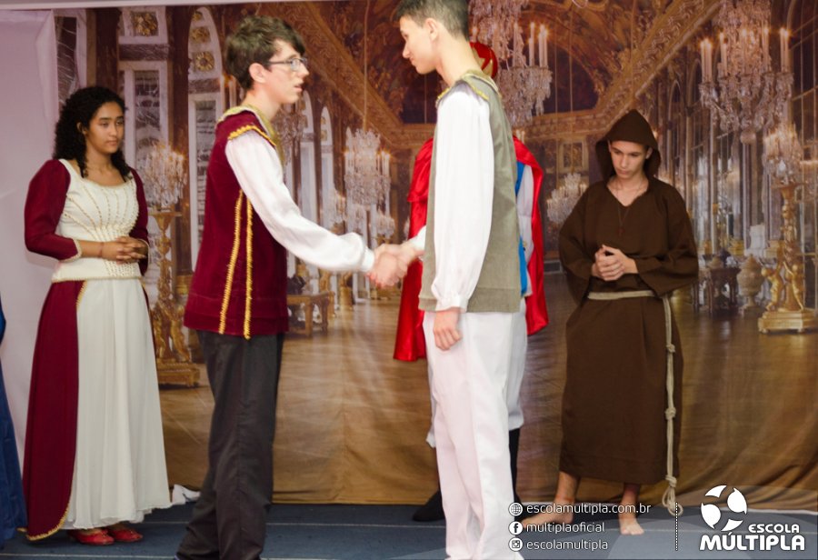 Sob a coordenação das professoras Priscila e Magda, os alunos apresentaram a peça: Romeu e Julieta, uma na versão tradicional e outra em comédia.