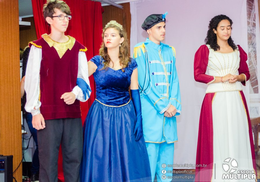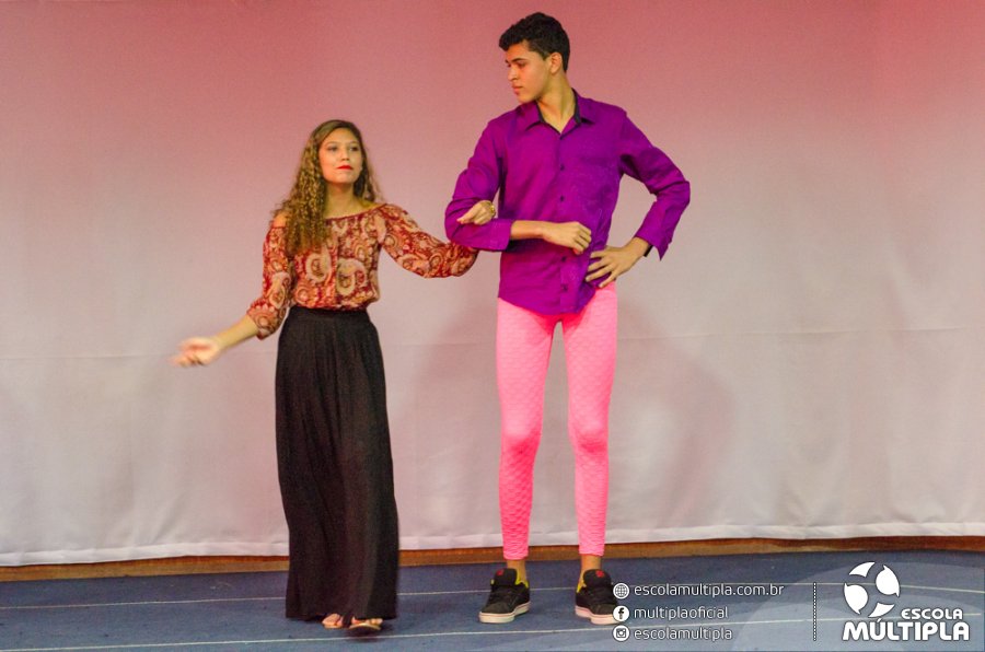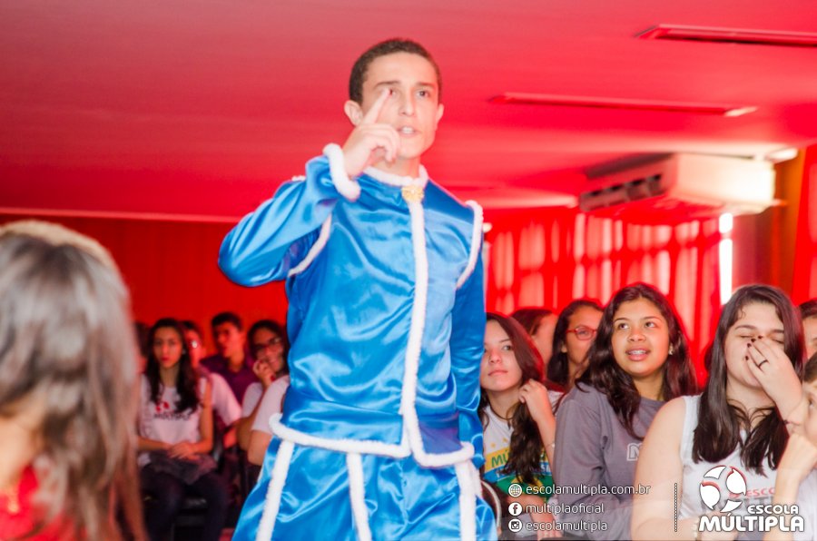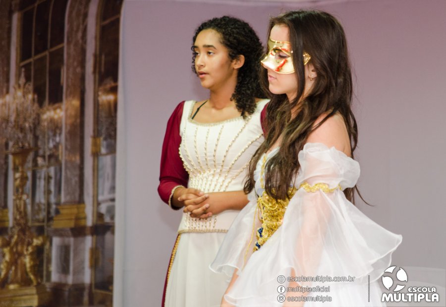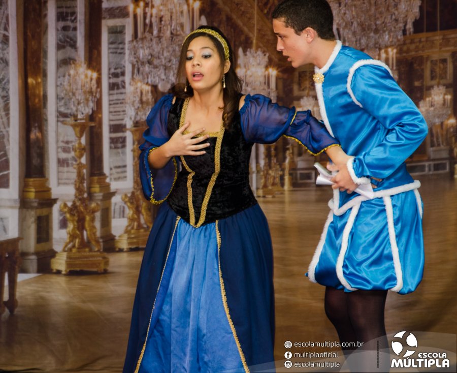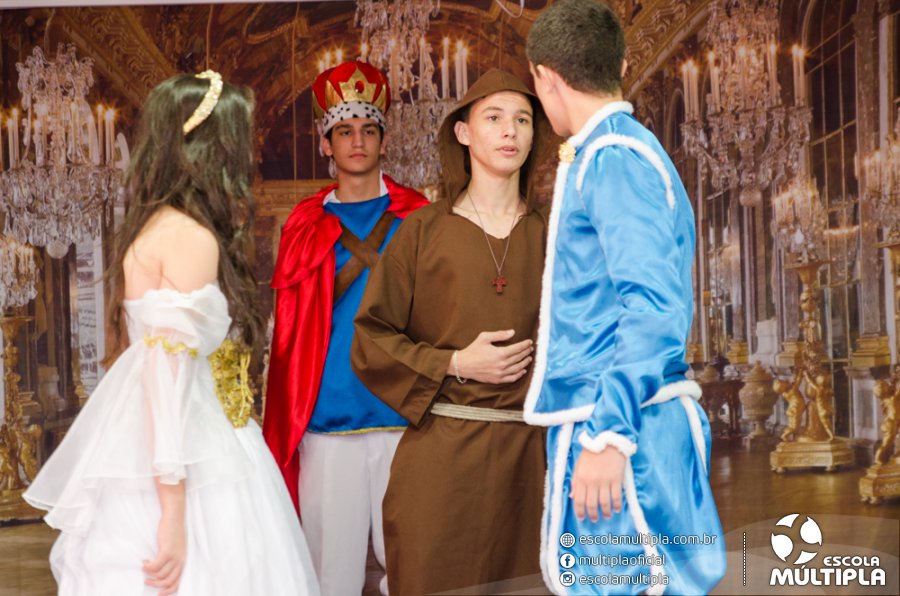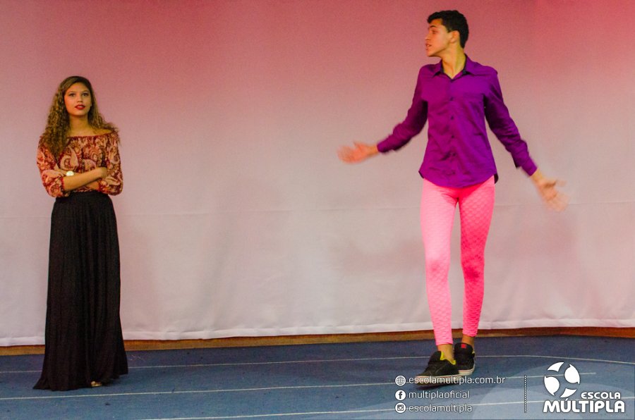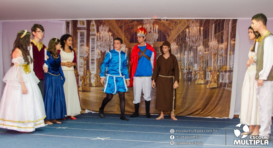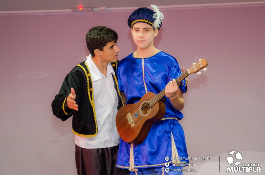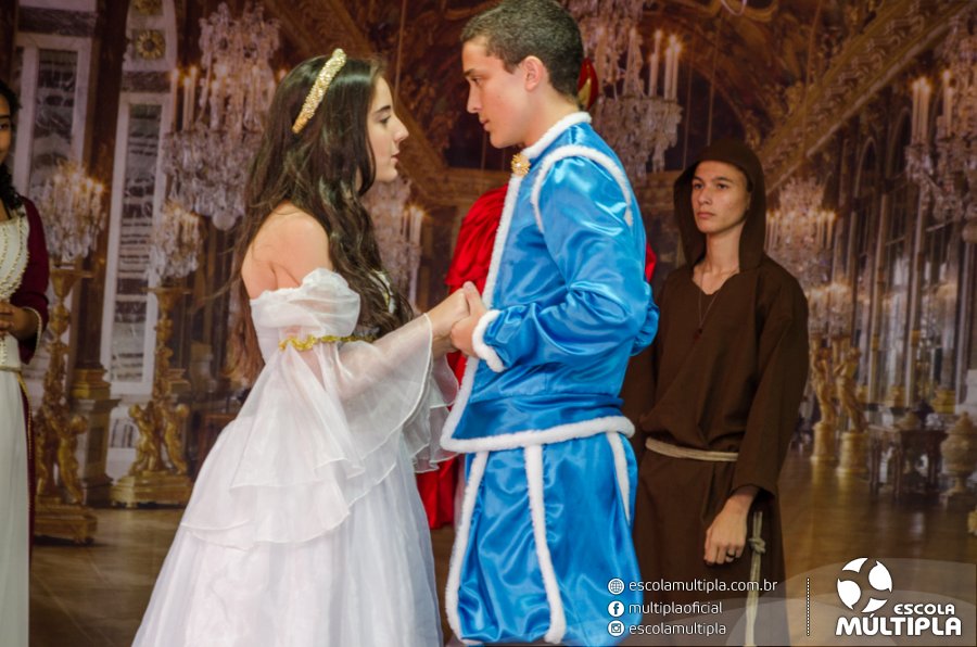 Sob a coordenação das professoras Priscila e Magda, os alunos apresentaram a peça: Romeu e Julieta, uma na versão tradicional e outra em comédia.