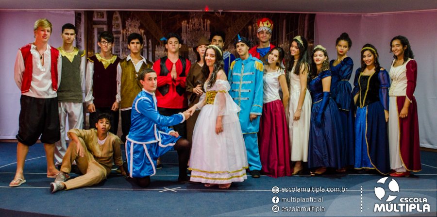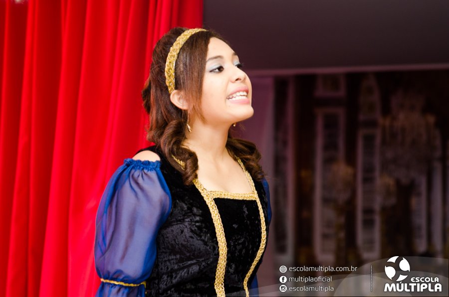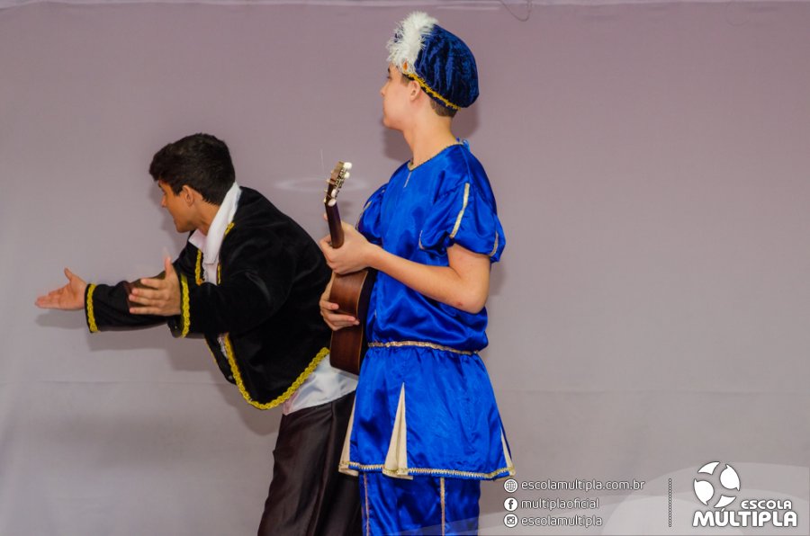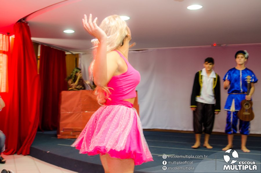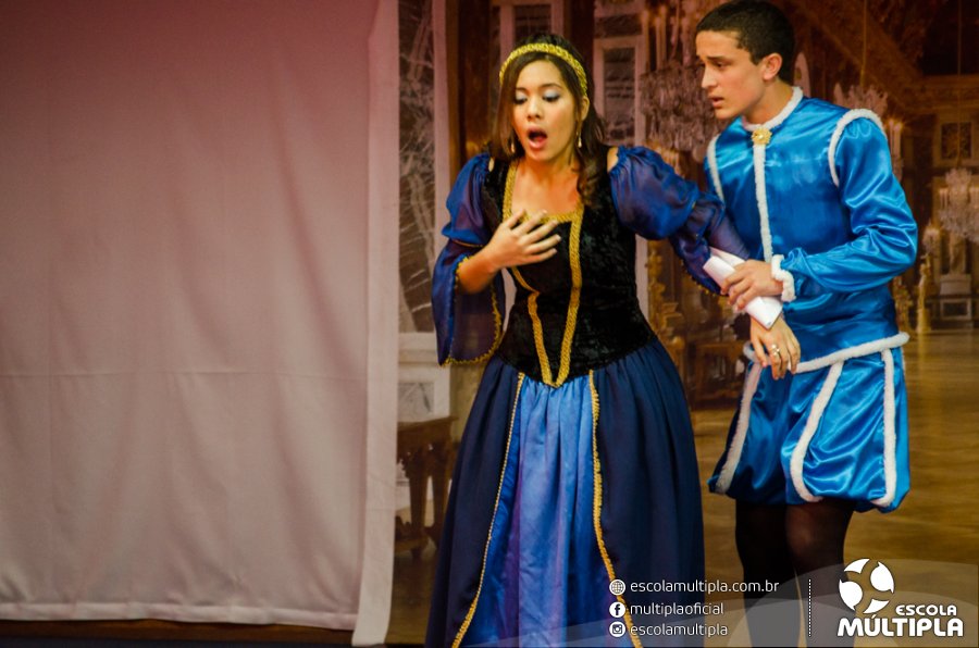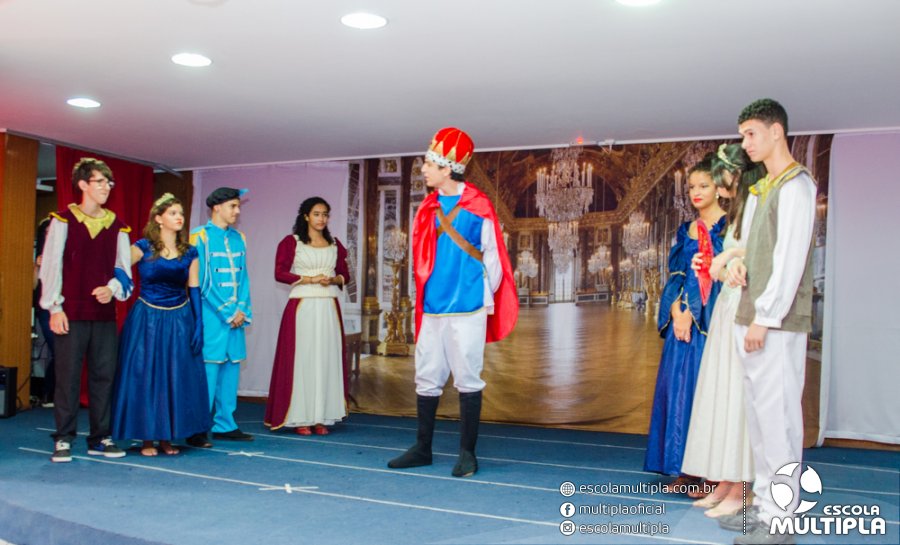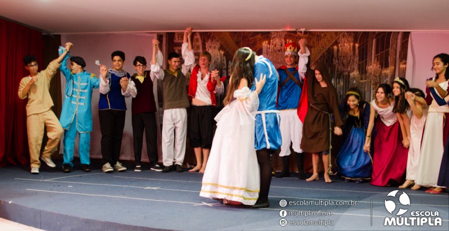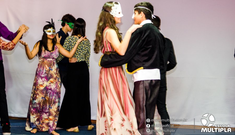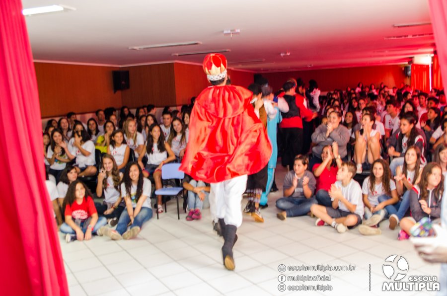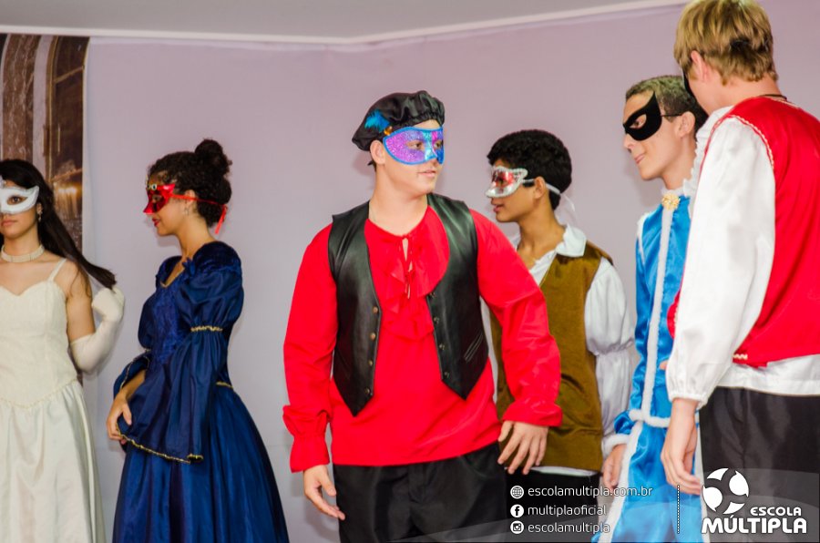 Sob a coordenação das professoras Priscila e Magda, os alunos apresentaram a peça: Romeu e Julieta, uma na versão tradicional e outra em comédia.