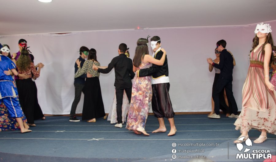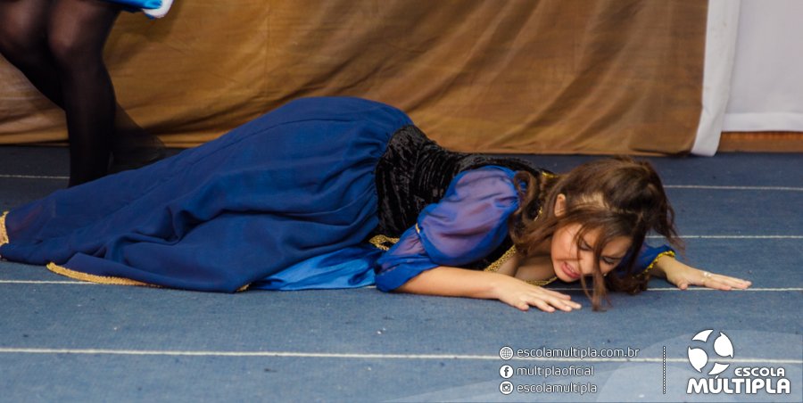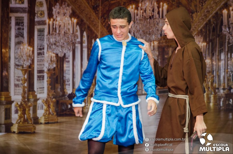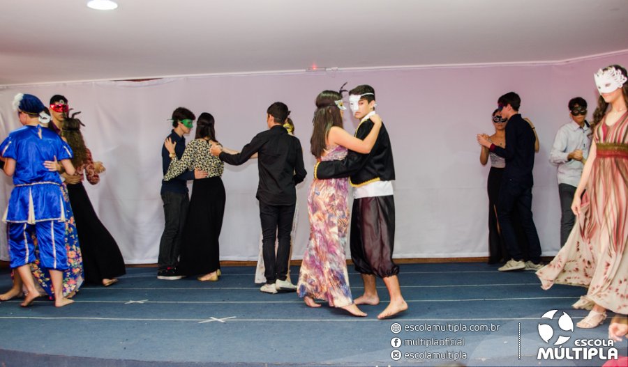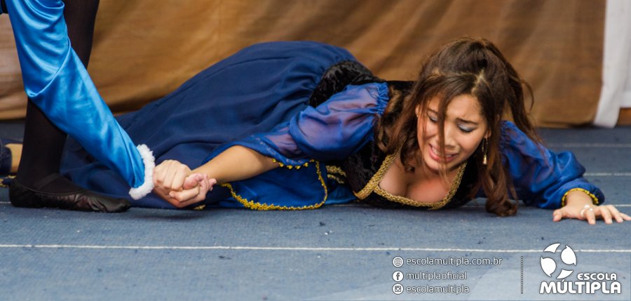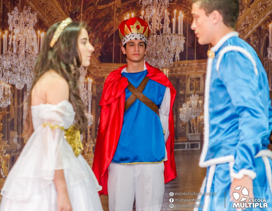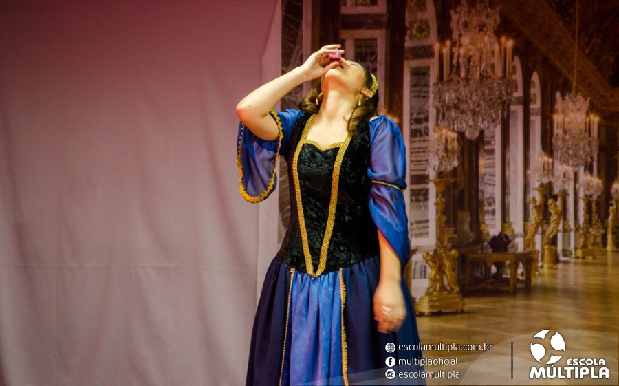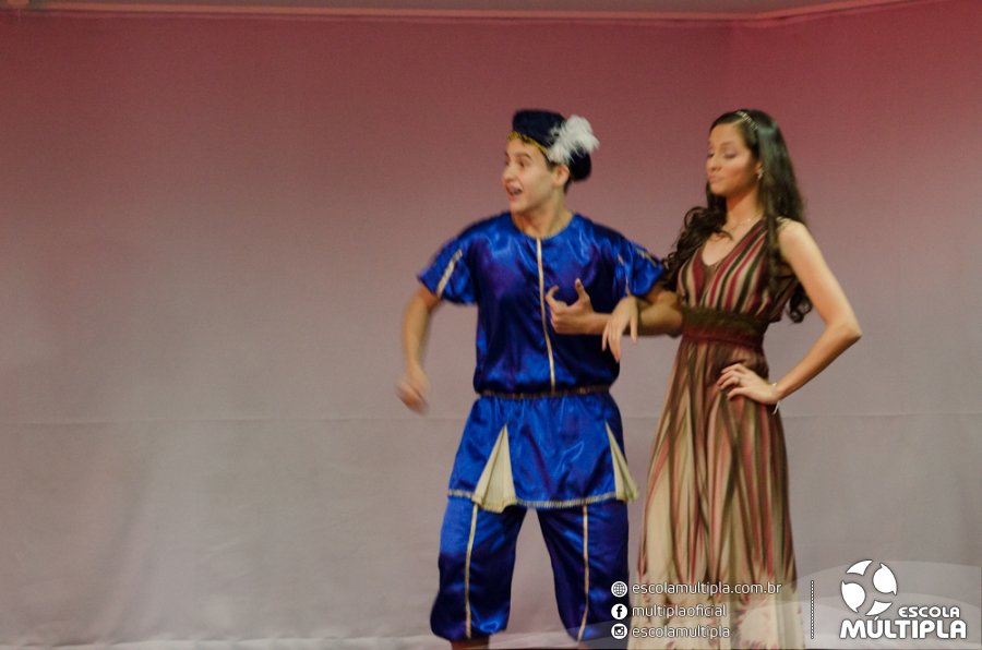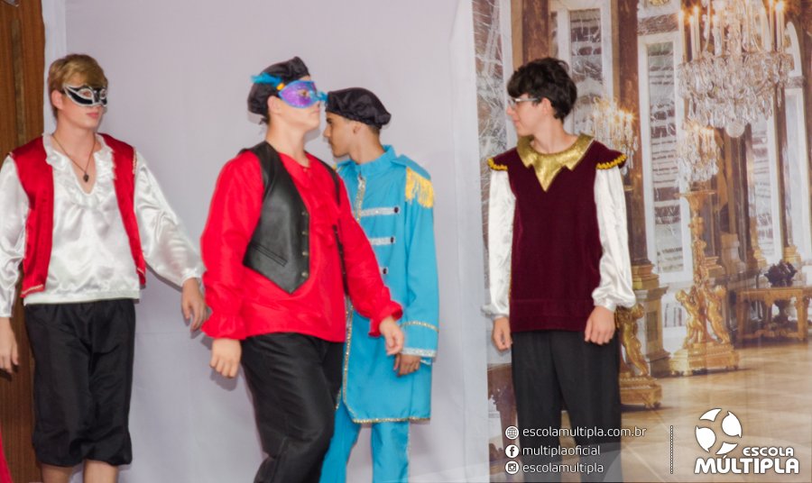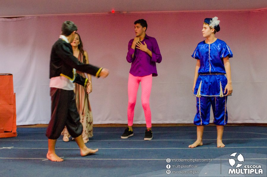 Sob a coordenação das professoras Priscila e Magda, os alunos apresentaram a peça: Romeu e Julieta, uma na versão tradicional e outra em comédia.