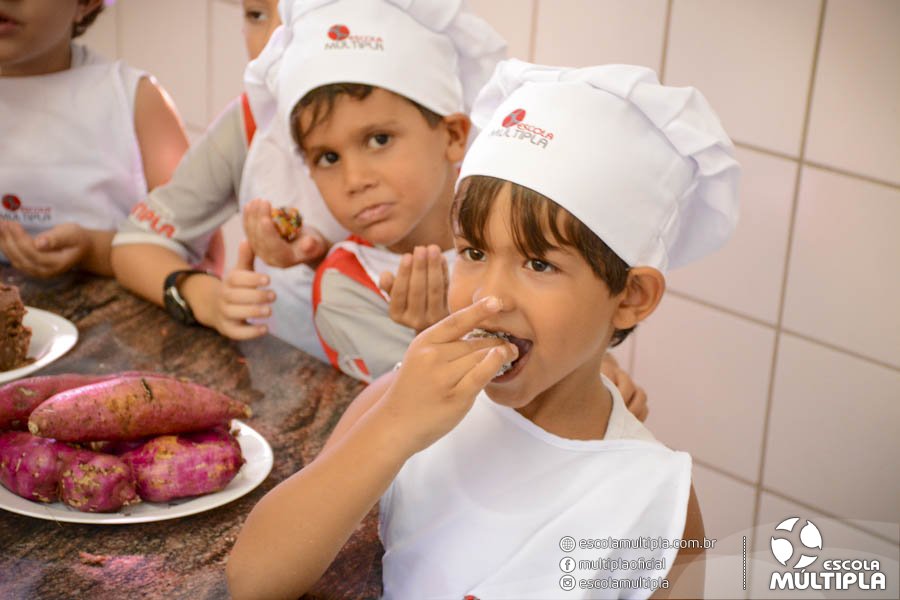 No dia 18/03, foi a vez dos alunos do Jardim II A e Maternal A fazerem a receita: Bombom de batata doce e Brigadeiro nutritivo de cenoura.