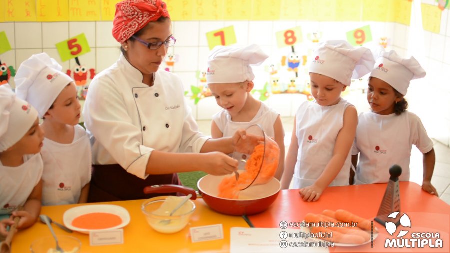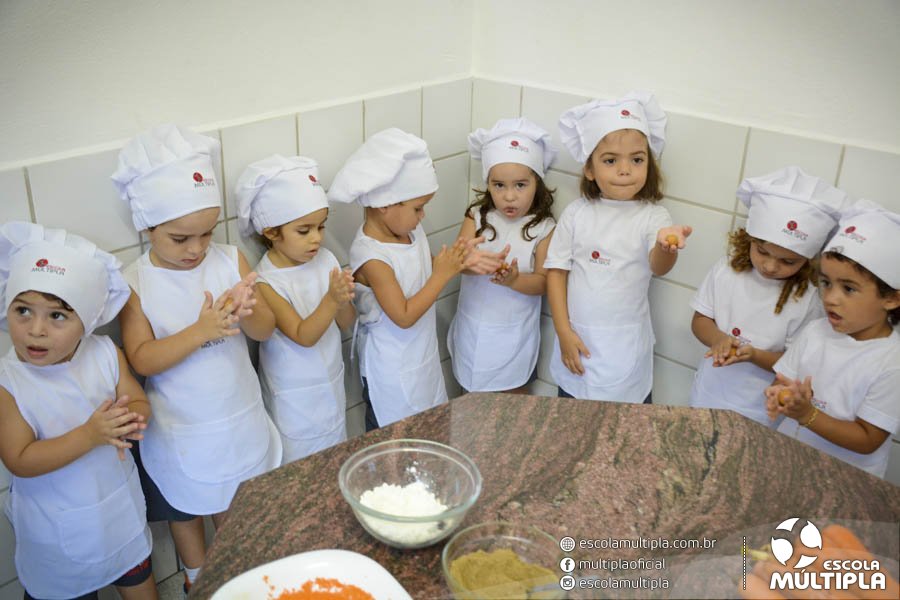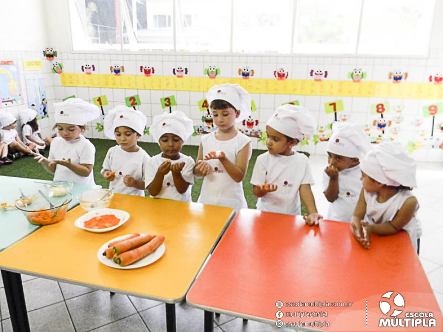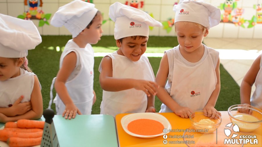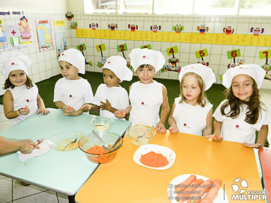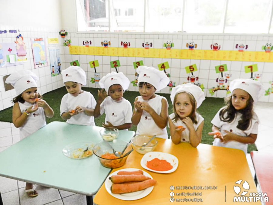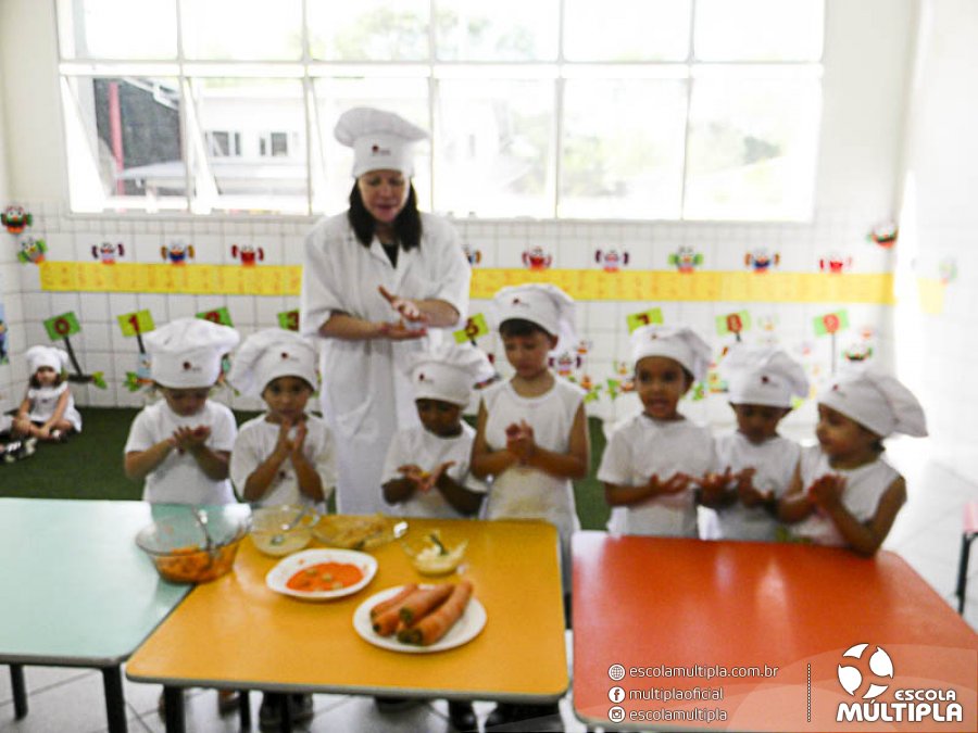 Para iniciar o projeto literário “Múltiplos Sabores”, programamos para as crianças da Educação Infantil, Oficinas de Culinária, onde aprenderem receitas saudáveis para se deliciarem na Páscoa.
