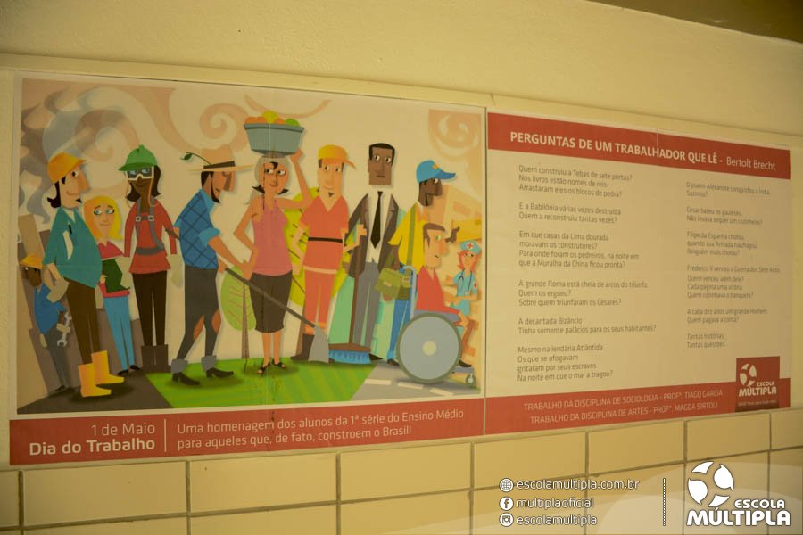Para homenagear os trabalhadores de todo país, os professores Tiago Garcia e Magda realizaram um projeto contextualizando as disciplinas de Sociologia e Artes com a turma da 1ª série do Ensino Médio.