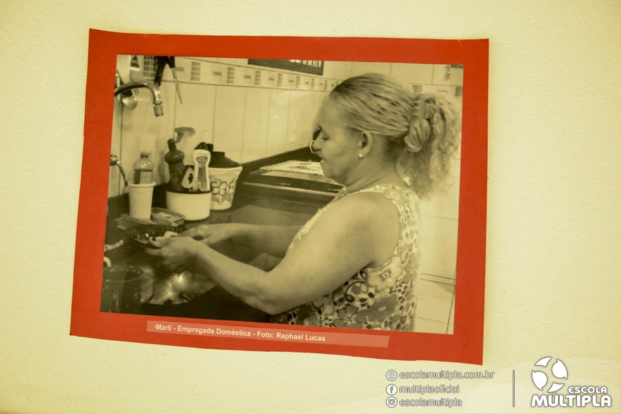 Cada aluno pesquisou sobre uma profissão e a representou através de fotografia . As fotos de todos os alunos foram reveladas para a exposição: "Homenagem ao Trabalhador".