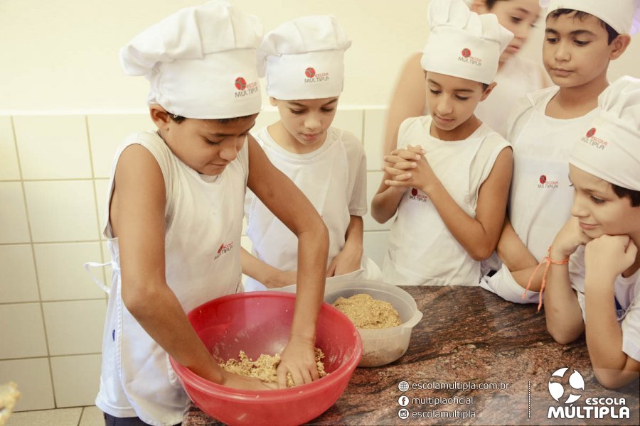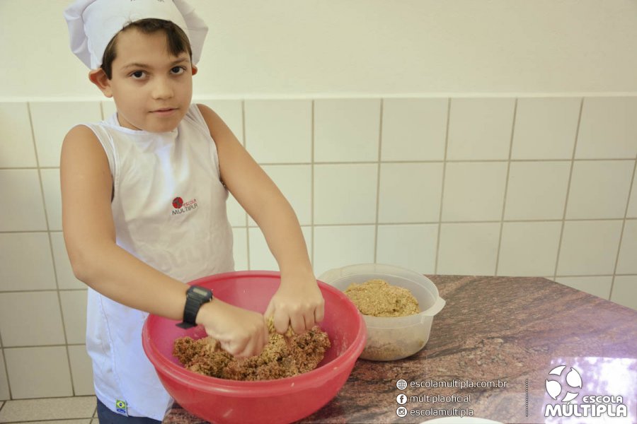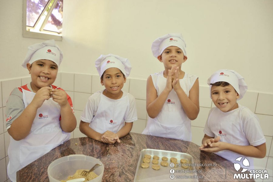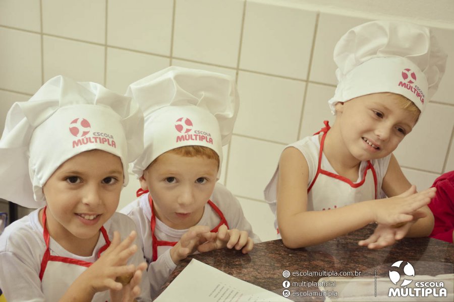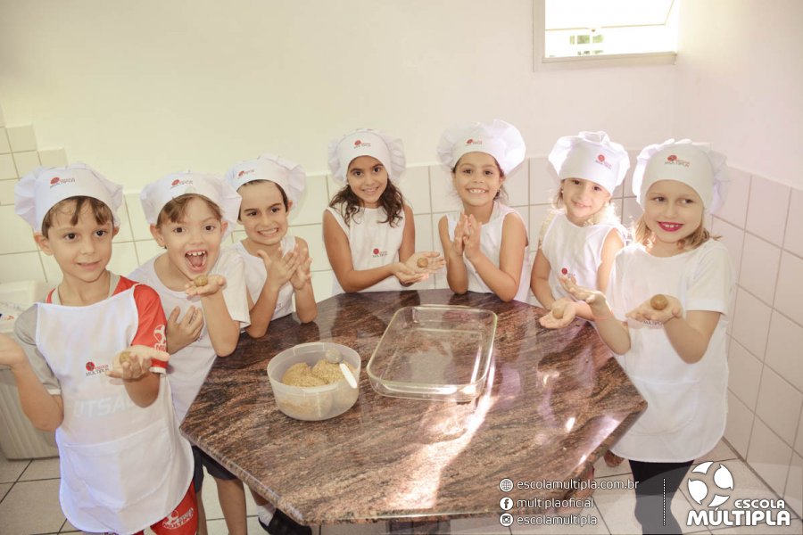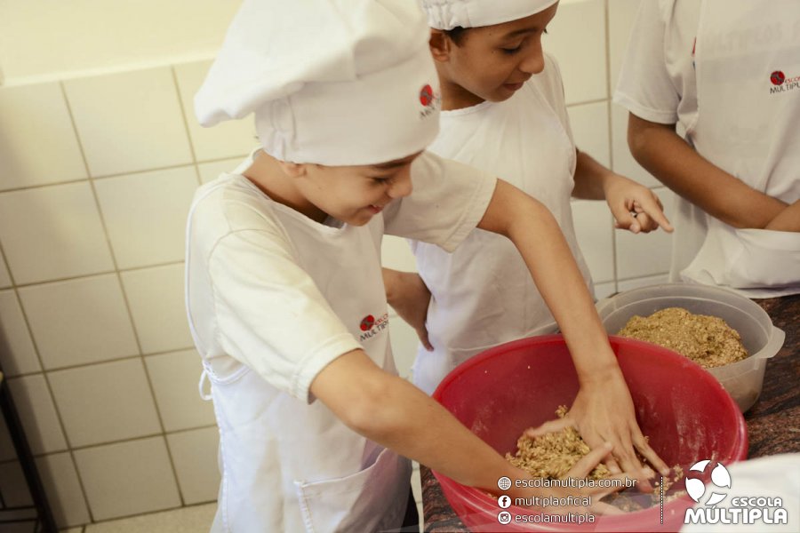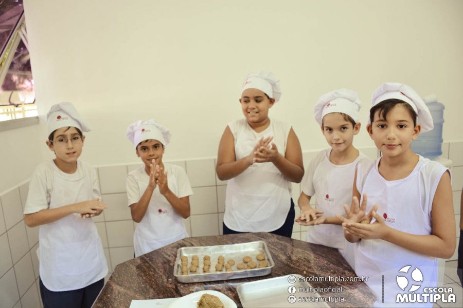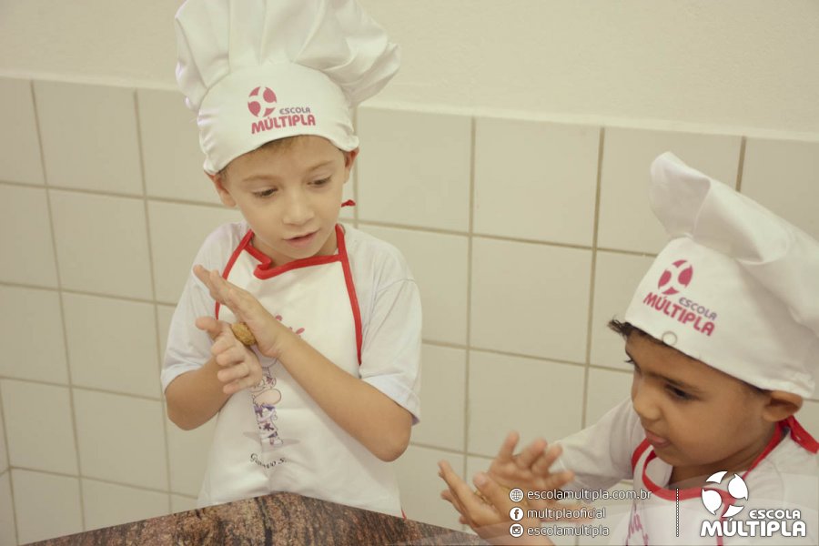 As crianças da Educação Infantil aos 5º ANOS foram para a cozinha experimental da escola, onde aprenderam a receita: “Biscoitinhos de aveia”. Foi muito legal ver nossos pequenos chefs manipularem a massa e fazerem a receita com muito carinho.