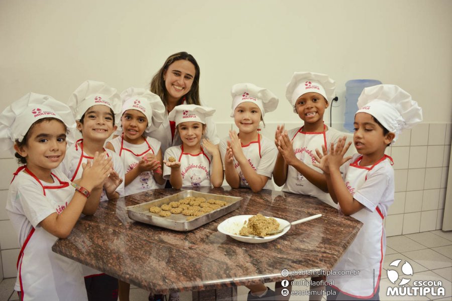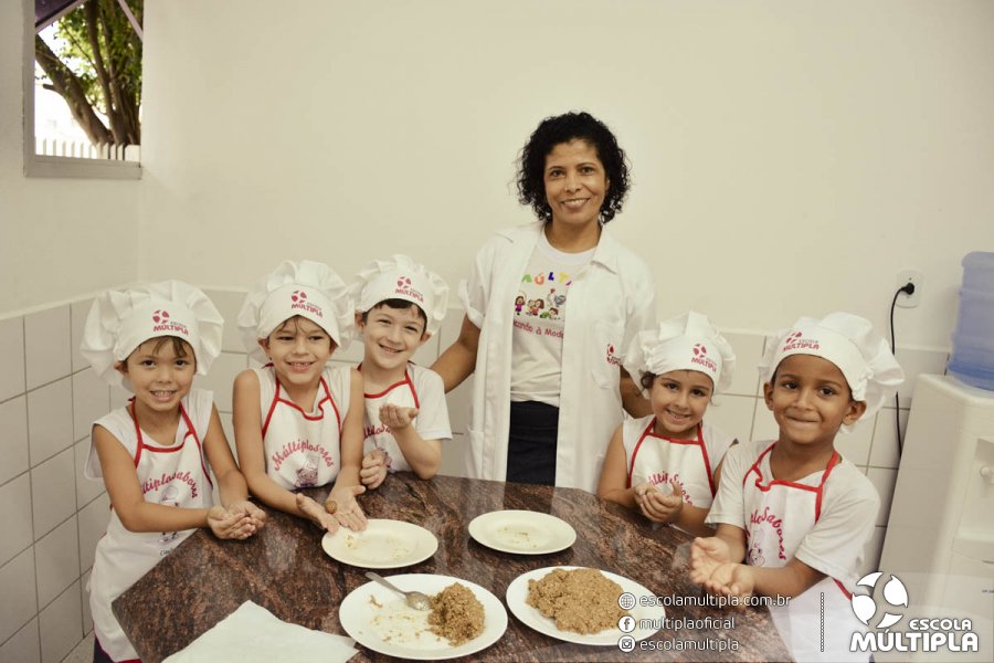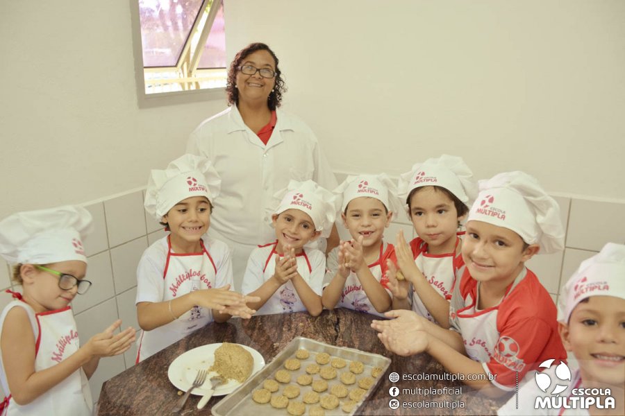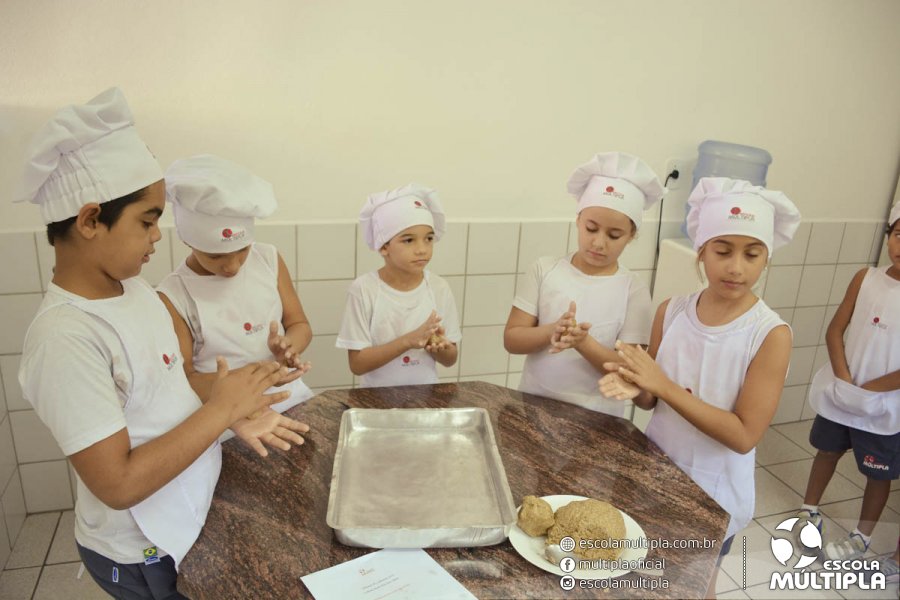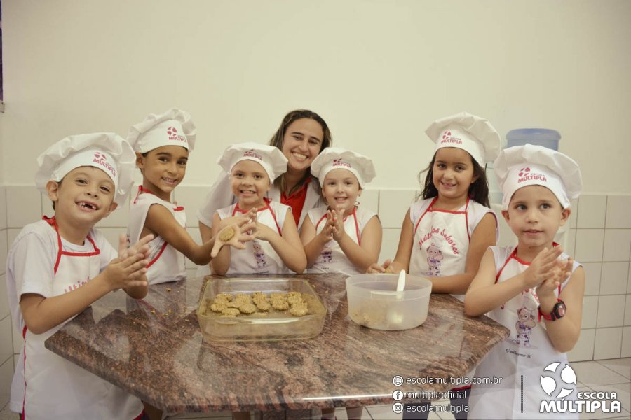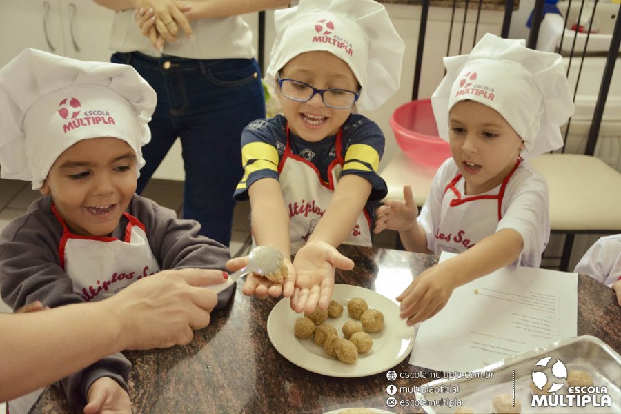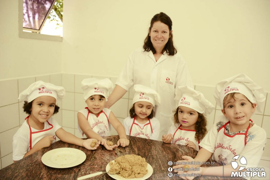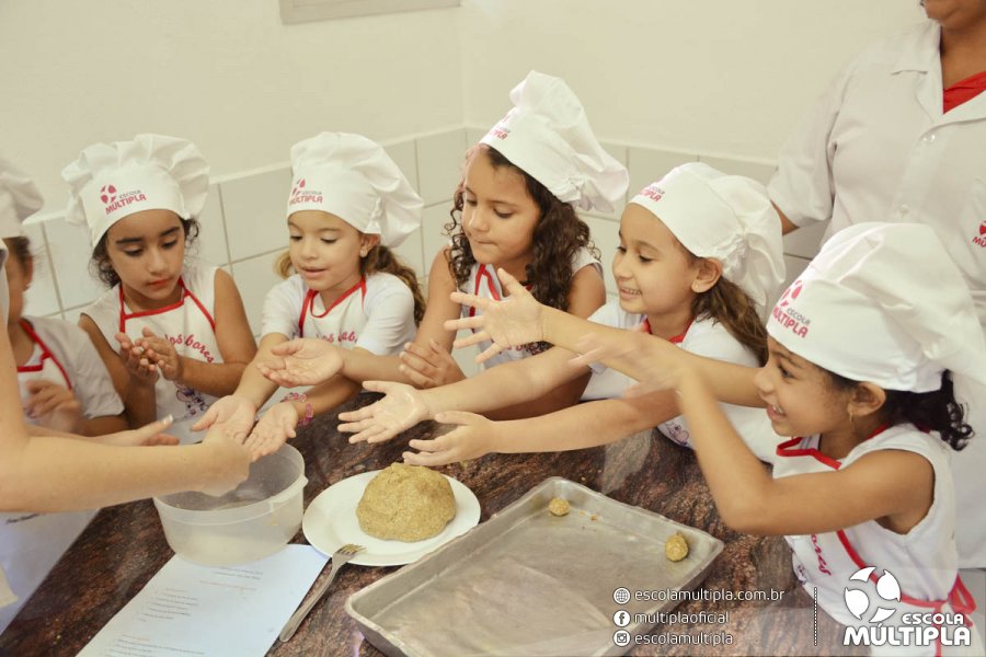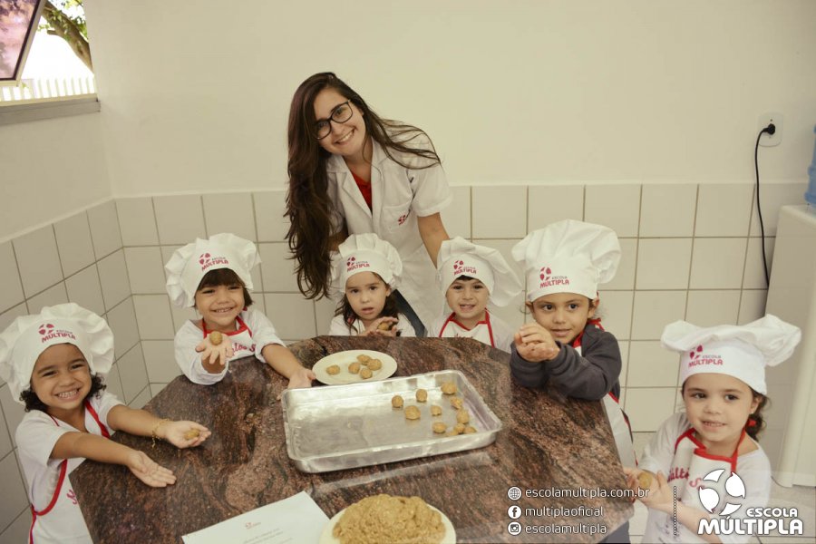 As crianças da Educação Infantil aos 5º ANOS foram para a cozinha experimental da escola, onde aprenderam a receita: “Biscoitinhos de aveia”. Foi muito legal ver nossos pequenos chefs manipularem a massa e fazerem a receita com muito carinho.