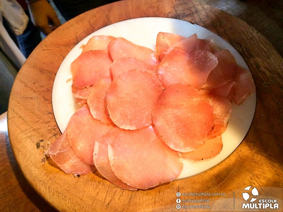 Após o almoço, a próxima parada foi no Sítio dos Lorenção, onde conheceram sobre a história do o socol, embutido de lombo de porco de origem italiana.