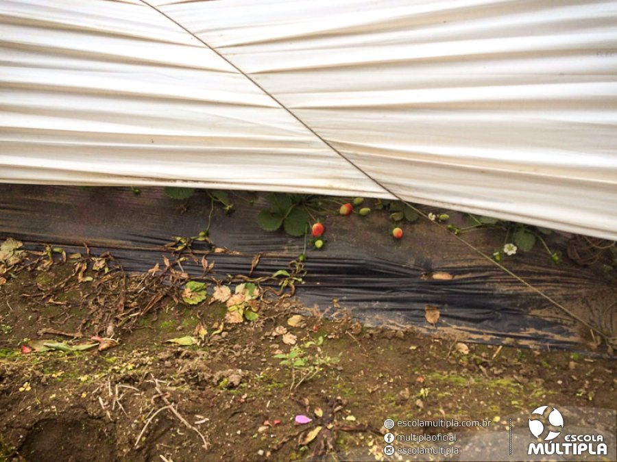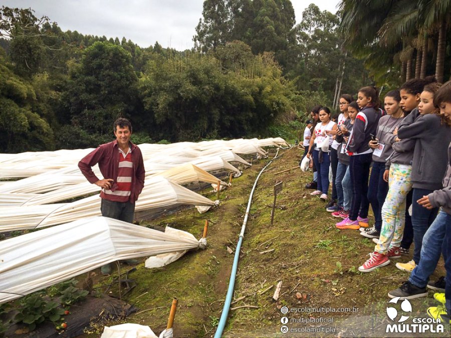 Dando continuidade, visitaram a propriedade da Família Ronchi que produz os morangos semi-orgânicos que garante o sustento da família.
