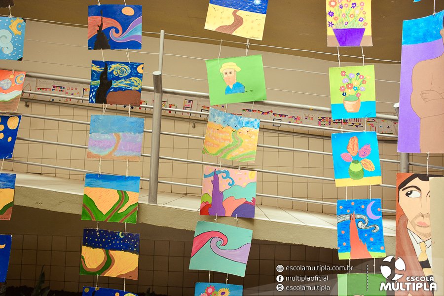 Os alunos dos 7º ANOS fizeram esculturas inspiradas no artista Michelangelo e os 8º ANOS realizaram uma releitura de Van Goghi, ambos com base no projeto literário